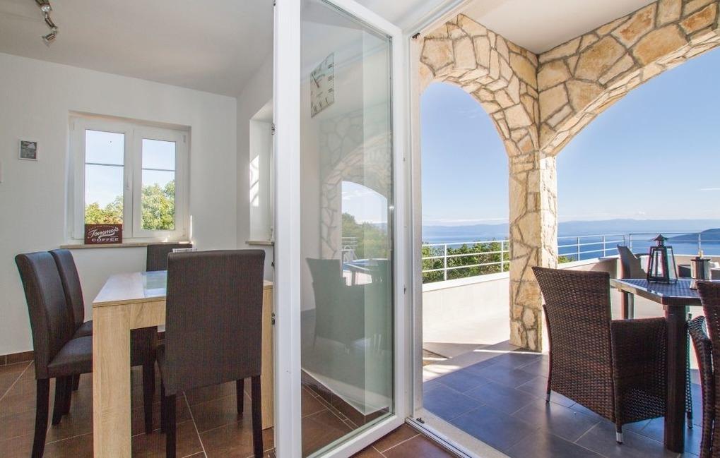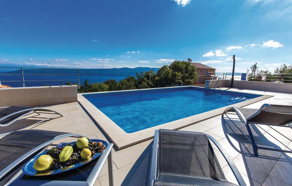 Diese Haushälfte bietet einen atemberaubenden Panoramablick auf das Meer und die umliegenden Inseln vom Pool. Von der anderen Seite des Hauses ist eine schöne Aussicht zum Nationalpark Ucka. Die Unterkunft befindet sich in Zagore und besteht aus zwei getrennten, kompletten Wohnungen, die durch Außentreppen verbunden sind. Sie ist ideal für einen komfortablen Familienurlaub oder Urlaub mit Freunden geeignet. Die Lage bietet sich als guter Ausgangspunkt, um schnell zum Fährhafen zu gelangen um die umliegenden Inseln zu besichtigen oder die Badeorte wie Moscenicka Draga, Opatija, Lovran, Rijeka und Labin in der Nähe zu erkunden. Golfplatz in ca. 1 km Entfernung. Entspannende Momente bieten ein gemeinsamer Pool, NUR IN DEN MONATEN APRIL BIS SEPTEMBER und das Sonnendeck. Eigentümer wohnt auf dem Grundstück.