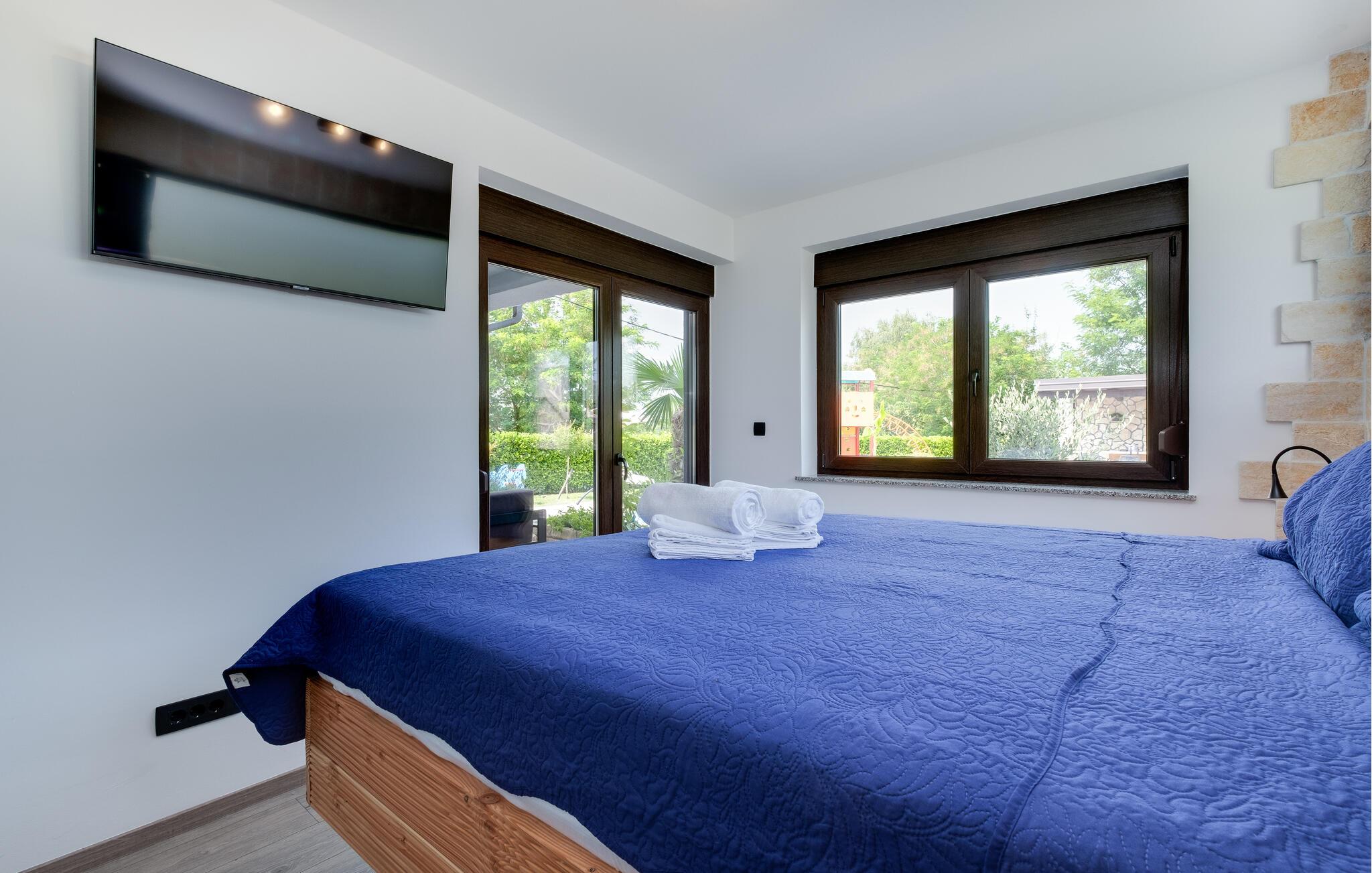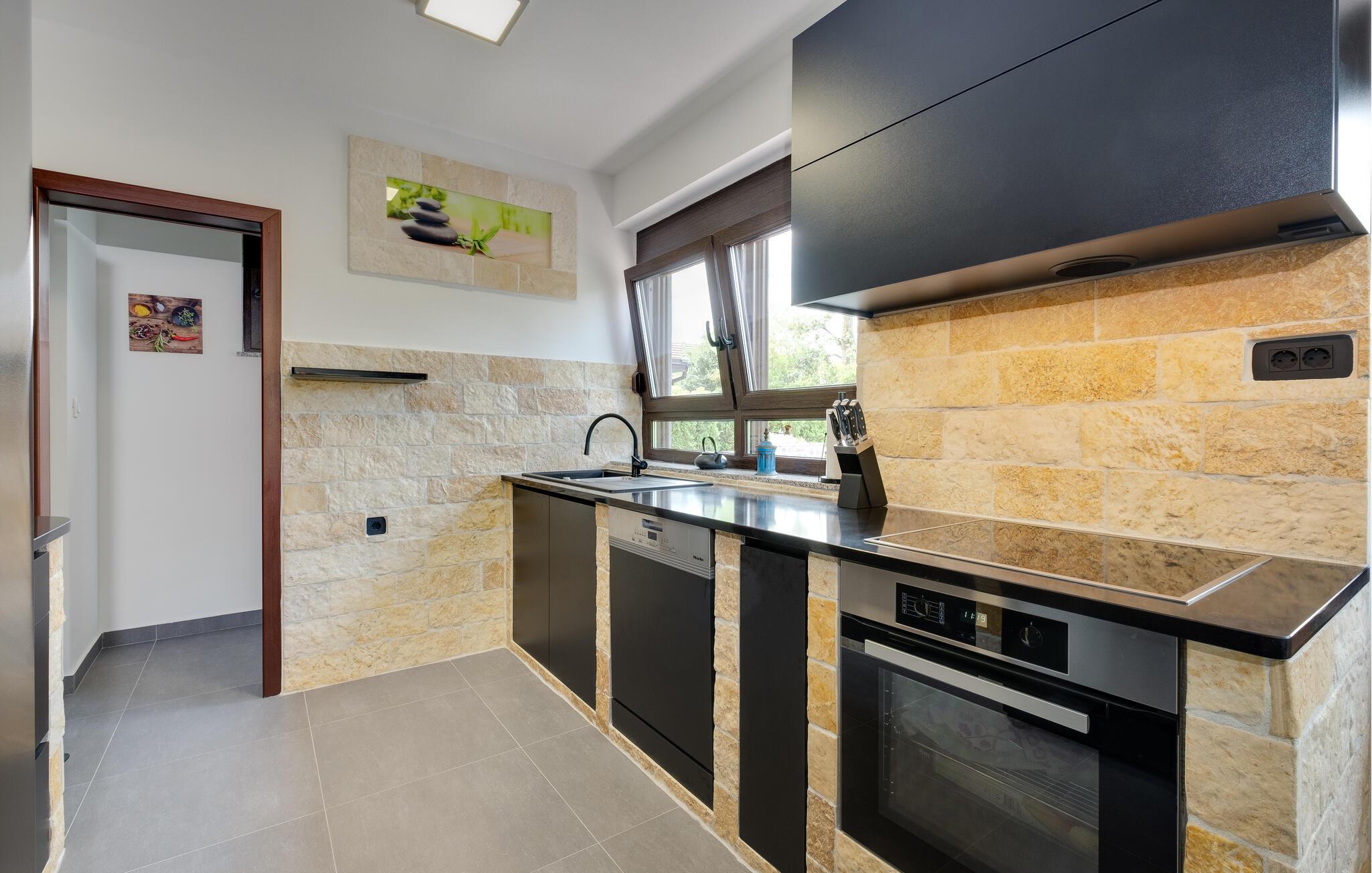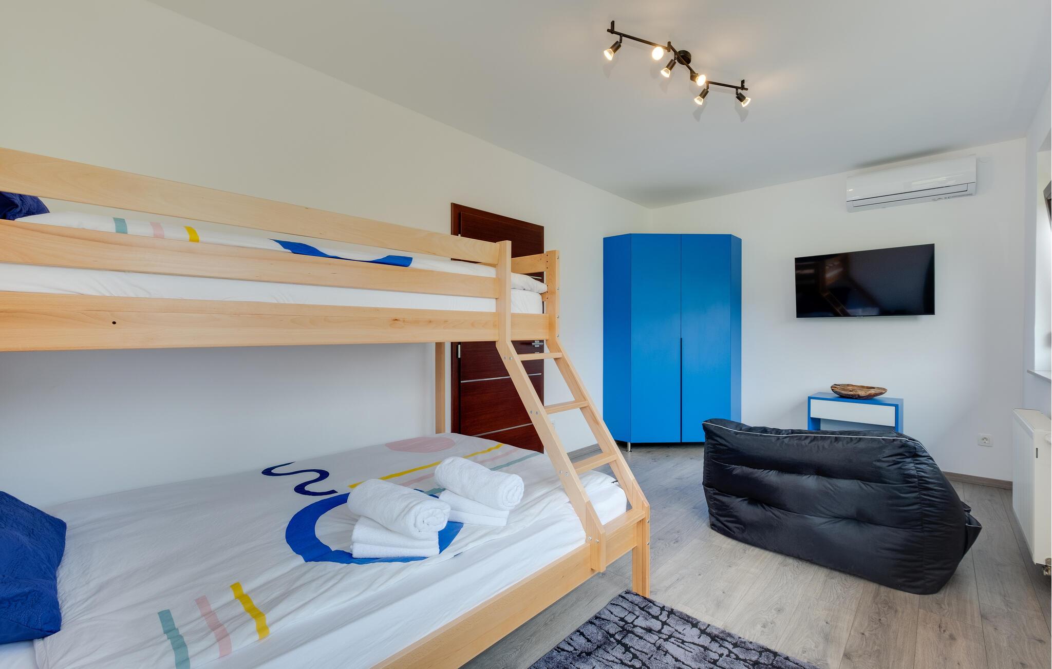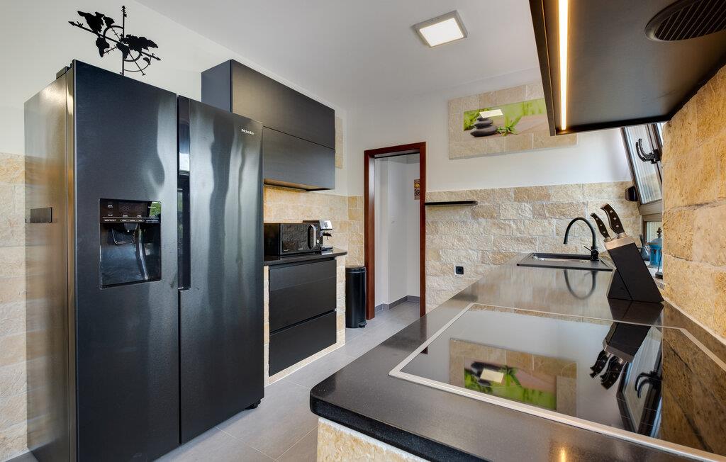 Dette vennefamilielige feriehus i Jakovlje er noget særligt med moderne møbler og en indbydende atmosfære. Det åbne, komfortable køkken er ideelt til madlavningsaftener sammen, mens den lyse stue og den hyggelige spiseplads lægger op til en masse hyggestunder. Der tilbydes underholdning: det er ikke kun børnene, der kan have det sjovt med at spille videospil i spillelokalet, og fitnessrummet er tilgængeligt for aktive timer.