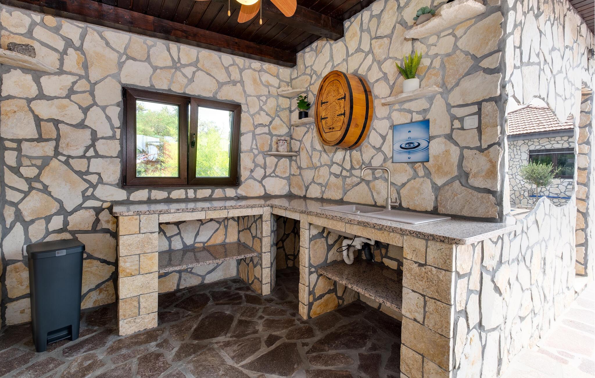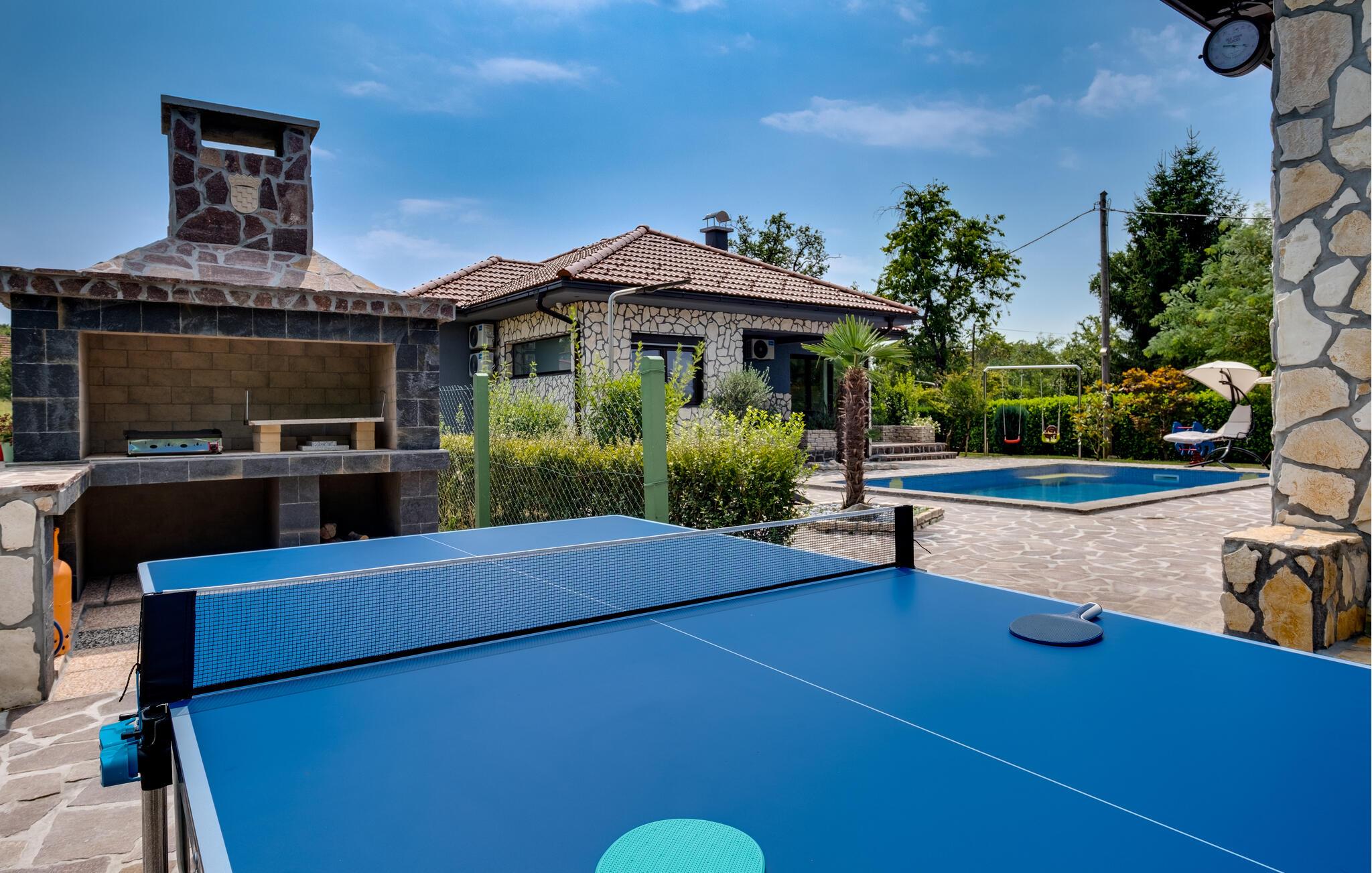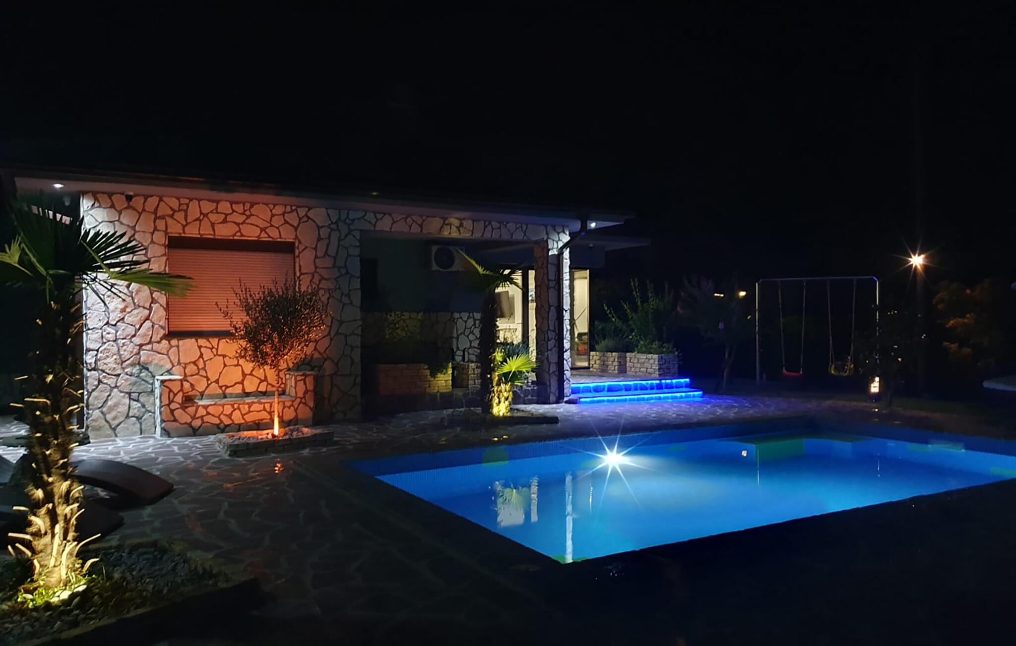 Dette vennefamilielige feriehus i Jakovlje er noget særligt med moderne møbler og en indbydende atmosfære. Det åbne, komfortable køkken er ideelt til madlavningsaftener sammen, mens den lyse stue og den hyggelige spiseplads lægger op til en masse hyggestunder. Der tilbydes underholdning: det er ikke kun børnene, der kan have det sjovt med at spille videospil i spillelokalet, og fitnessrummet er tilgængeligt for aktive timer.