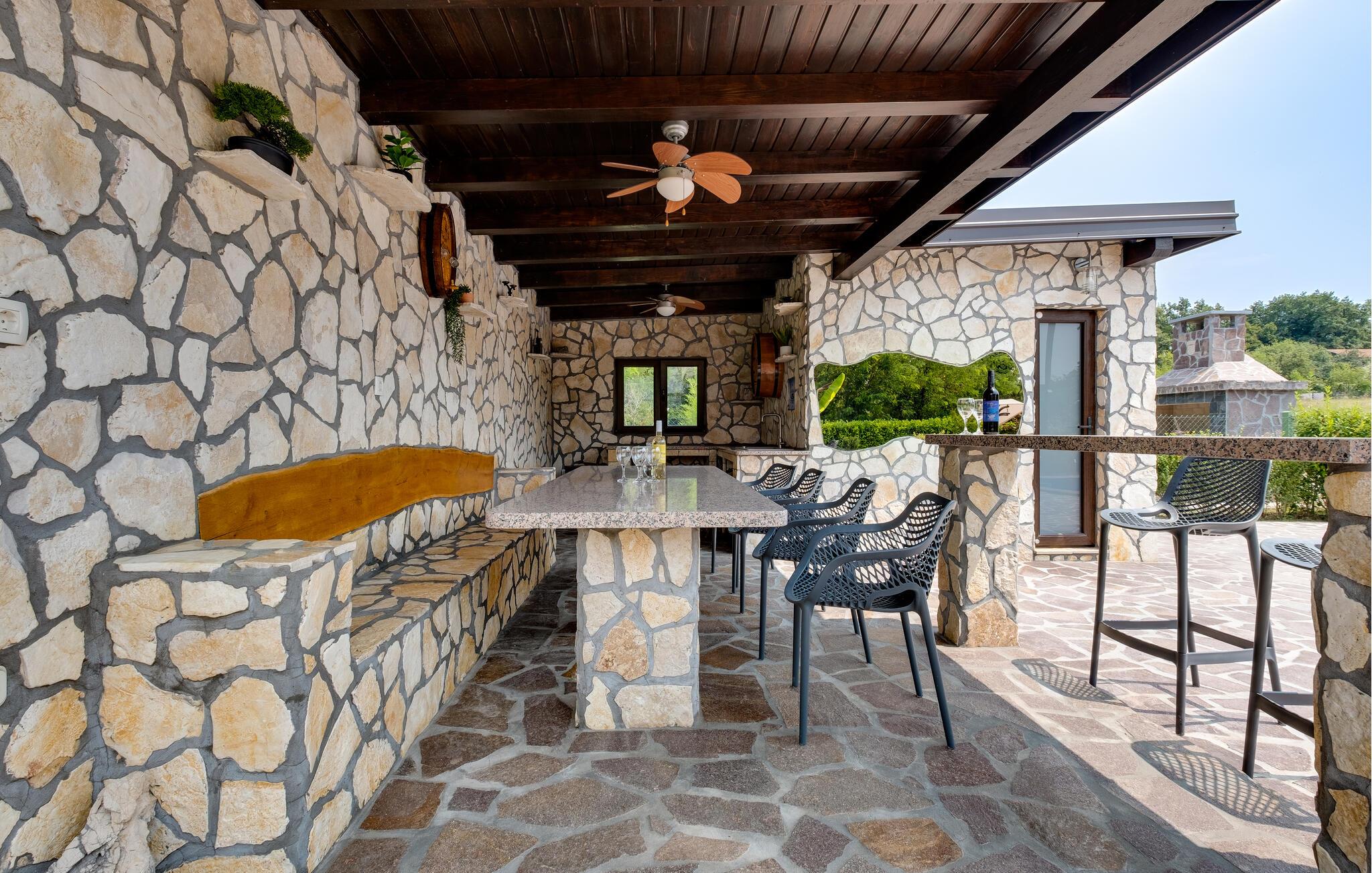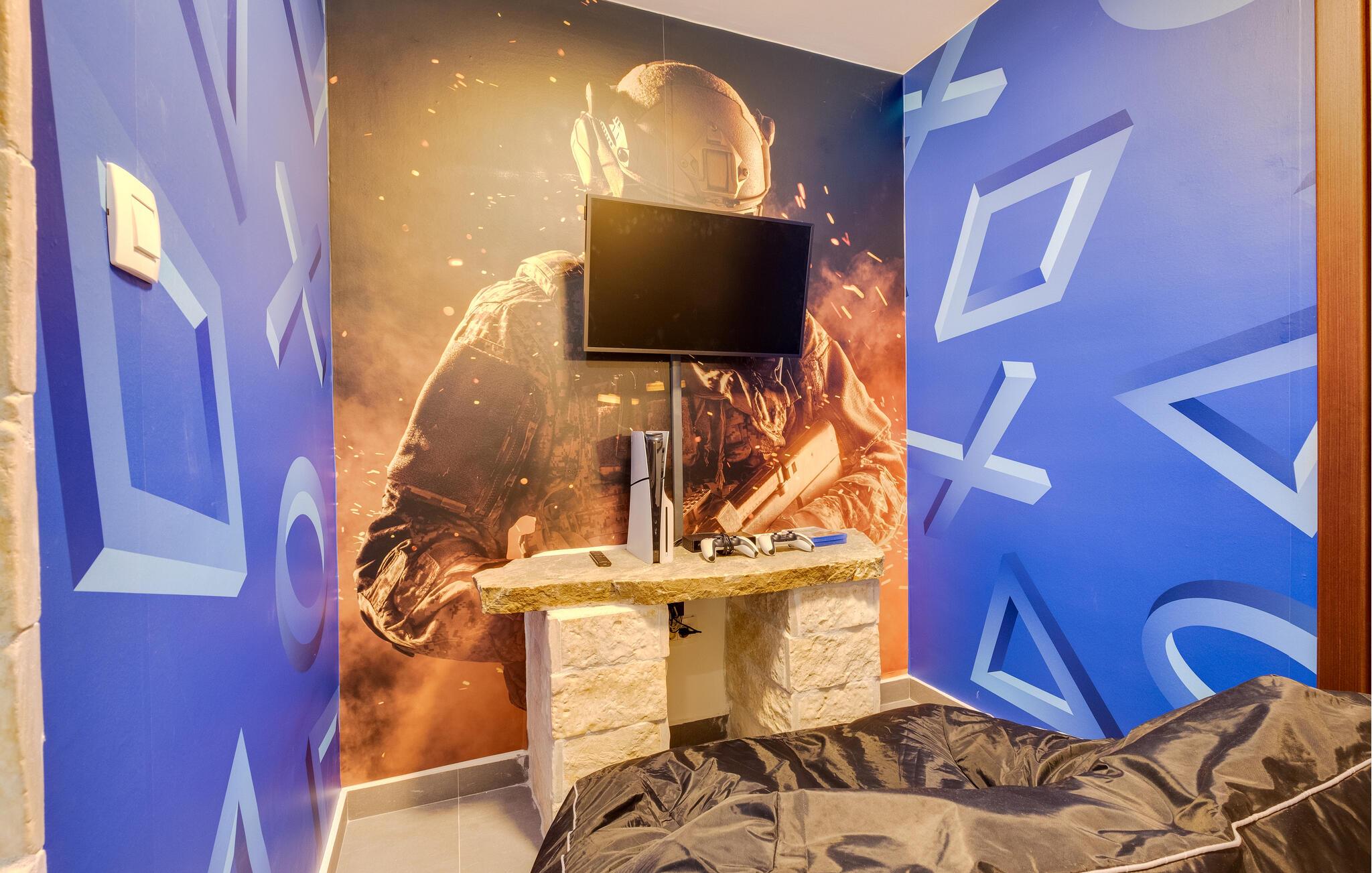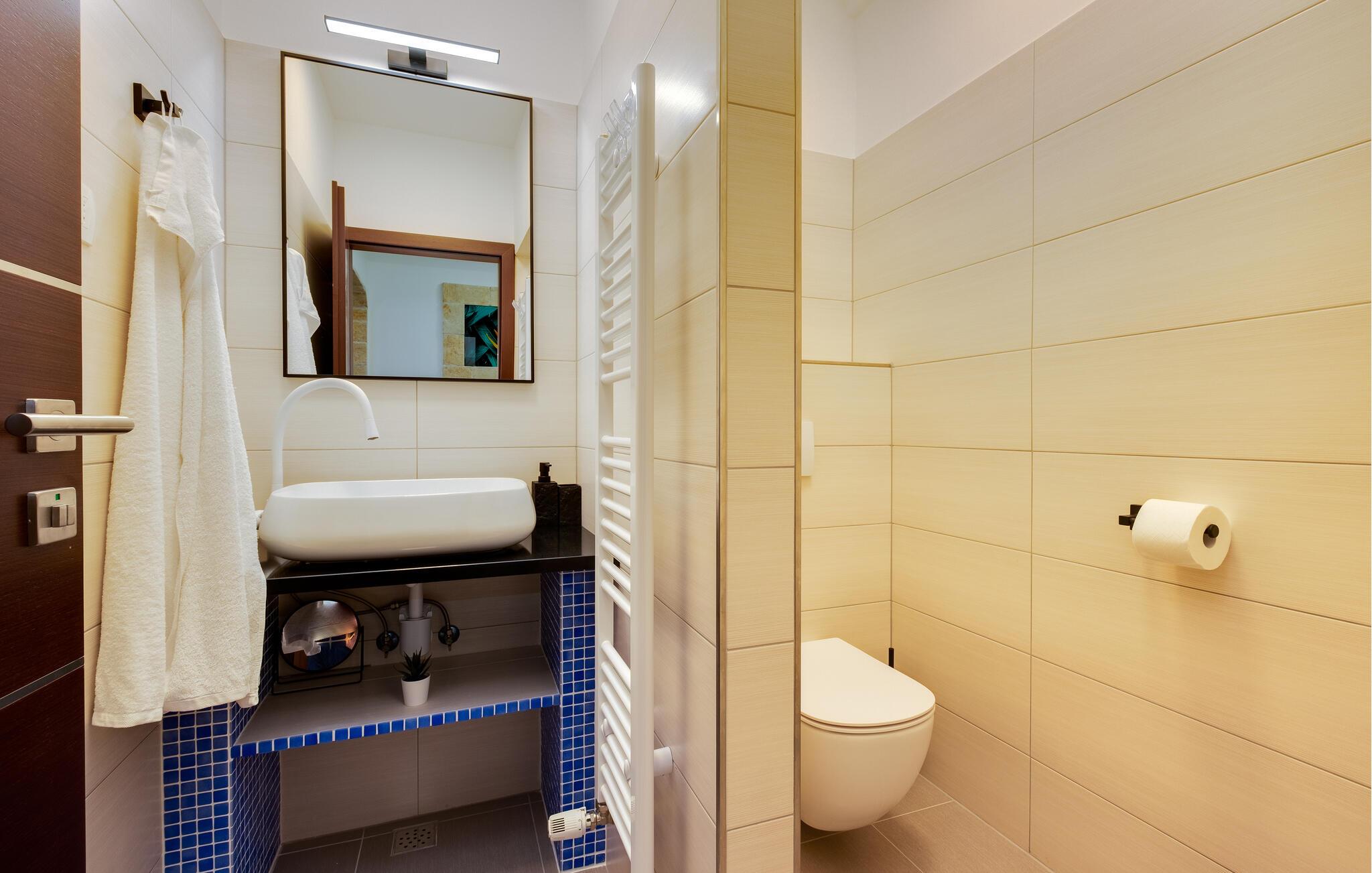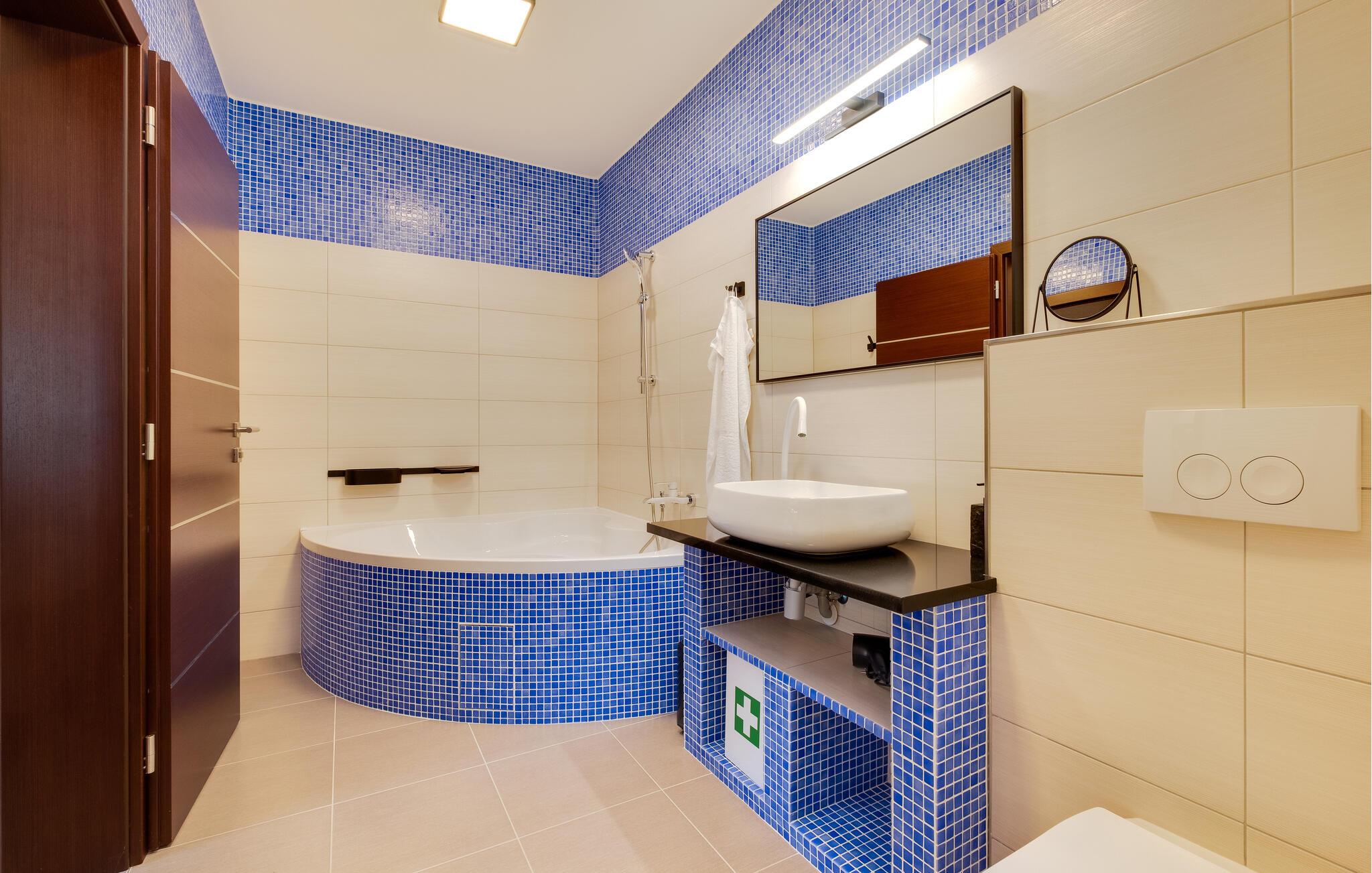 Dette vennefamilielige feriehus i Jakovlje er noget særligt med moderne møbler og en indbydende atmosfære. Det åbne, komfortable køkken er ideelt til madlavningsaftener sammen, mens den lyse stue og den hyggelige spiseplads lægger op til en masse hyggestunder. Der tilbydes underholdning: det er ikke kun børnene, der kan have det sjovt med at spille videospil i spillelokalet, og fitnessrummet er tilgængeligt for aktive timer.