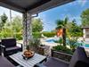 Den rummelige have med pool, solterrasse og overdækket terrasse byder på masser af plads til at slappe af, mens sommerkøkkenet er perfekt til hyggelige grillaftener.