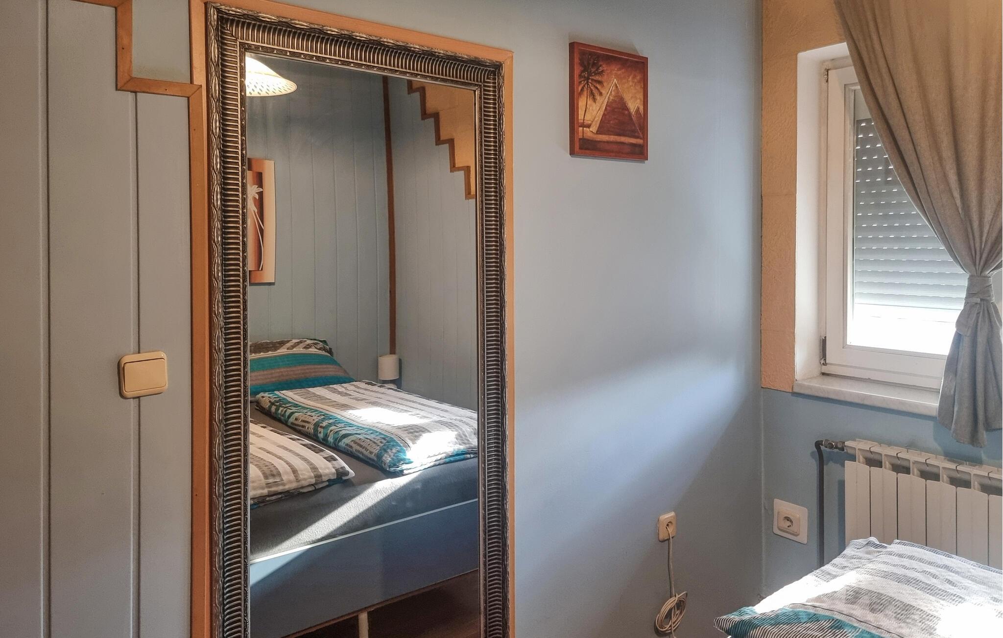 Tilbring jeres ferie i dette hyggelige feriehus med stor havepavillon. Ankom og slap af i dette store feriehus. De klassiske møbler kombineret med kreativt vægdesign i alle rum giver huset et særligt, individuelt præg. De hyggelige værelser udstråler en varm atmosfære, hvor I straks føler jer hjemme. Haven lægger op til fællesspisning og afslapning udendørs med en stor pavillon. Mens de voksne slapper af og sludrer, kan børnene lege på legepladsen - perfekt til en afslappet familieferie. Omgivelserne i Velika Mlaka byder på mange muligheder for udforskning og aktiviteter. Nærheden til hovedstaden Zagreb gør dagsture til den pulserende metropol nemme og værd: oplev historiske seværdigheder, museer og livlige markeder. Der er også meget at opleve i selve regionen: friluftsmennesker kan nyde de grønne skove og vandrestier i området, mens kulturinteresserede kan besøge de traditionelle landsbyer, hvor håndværk og lokal stemning stadig lever.