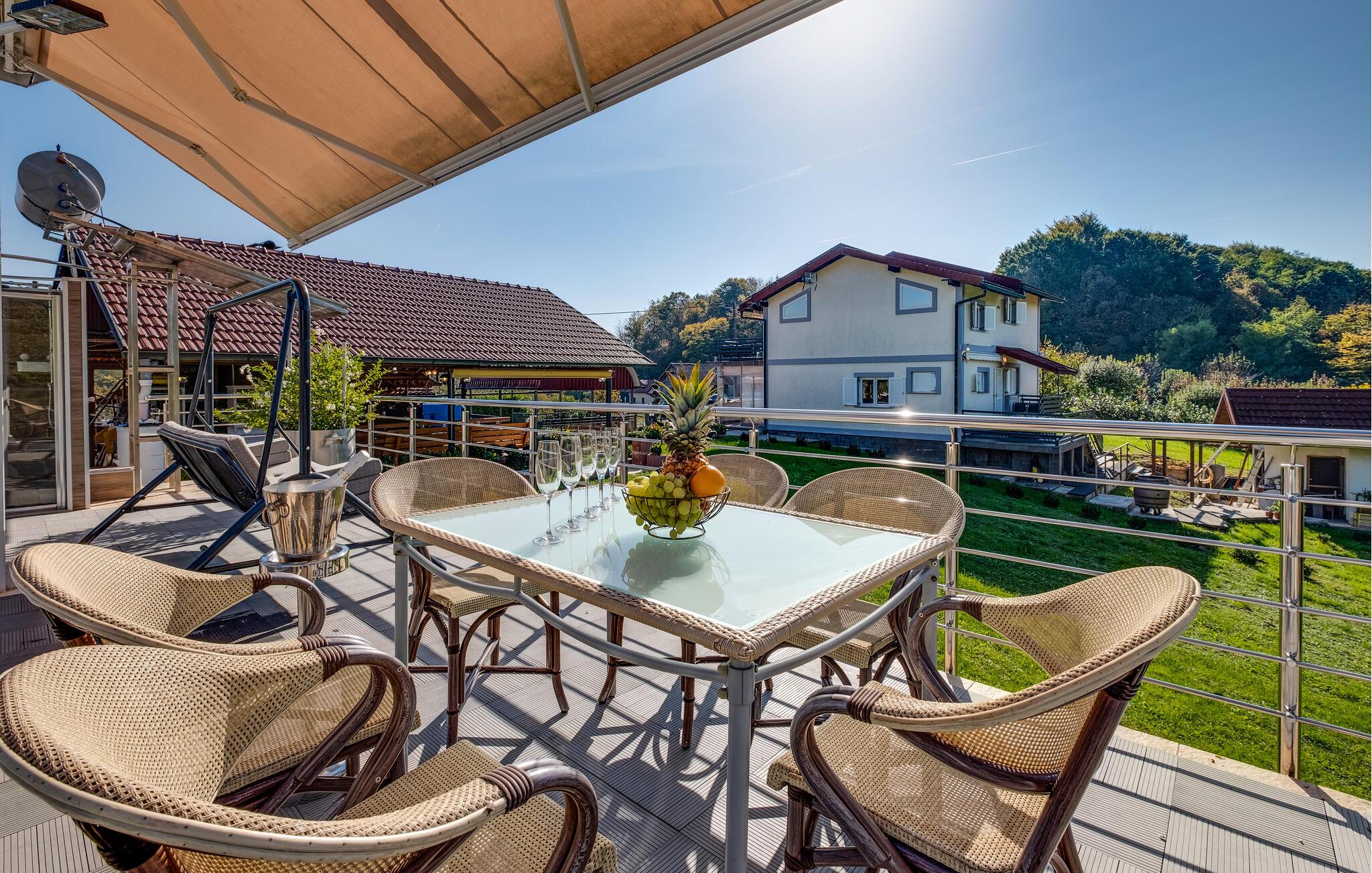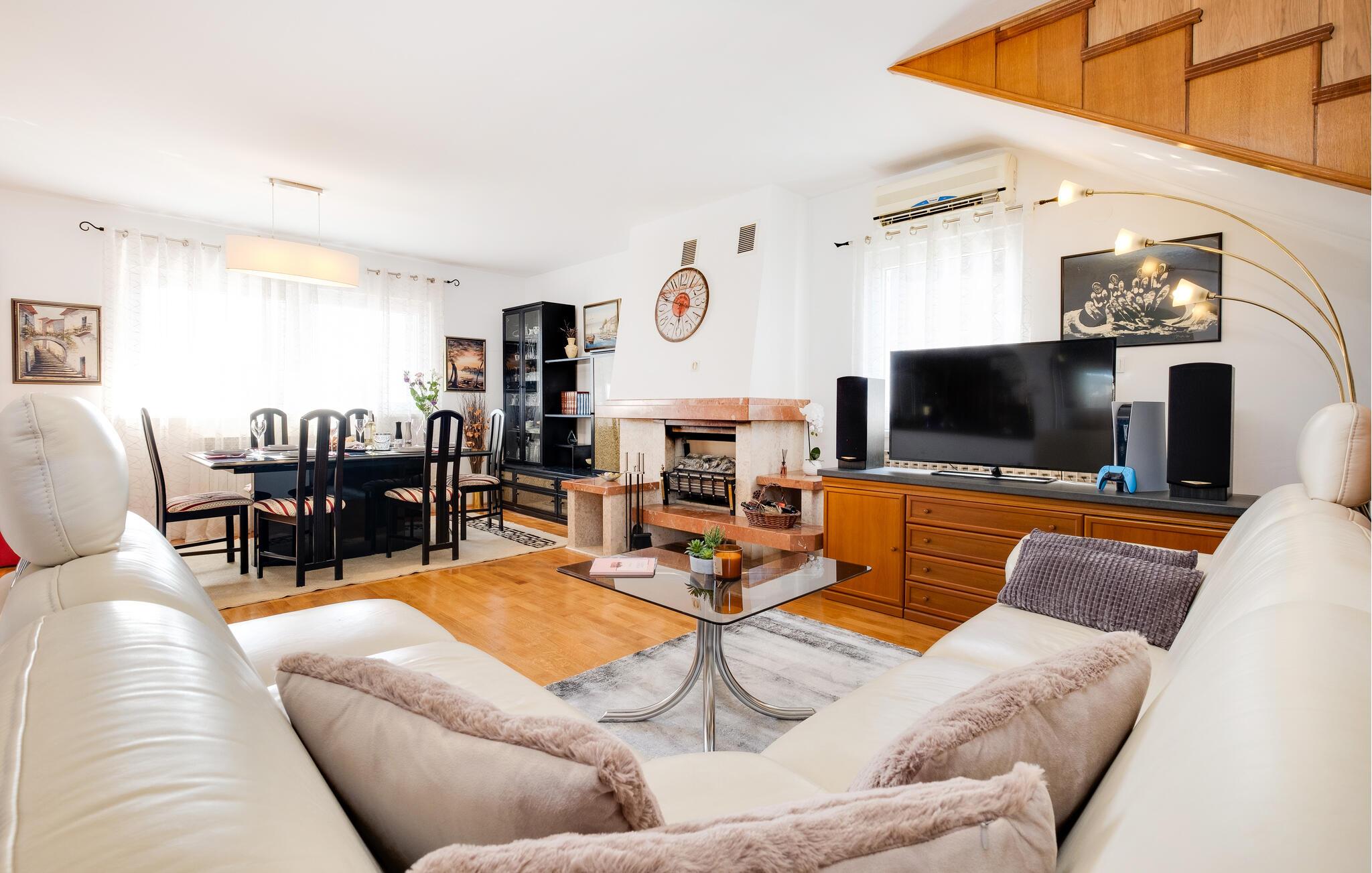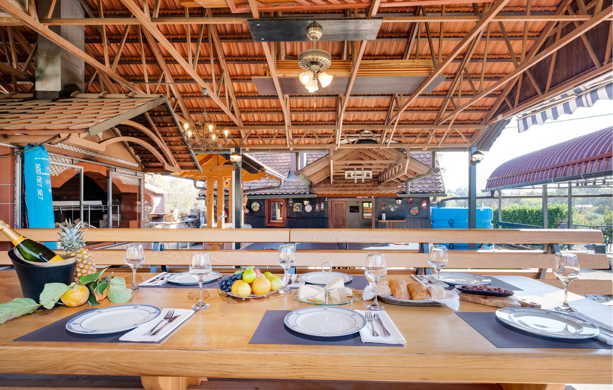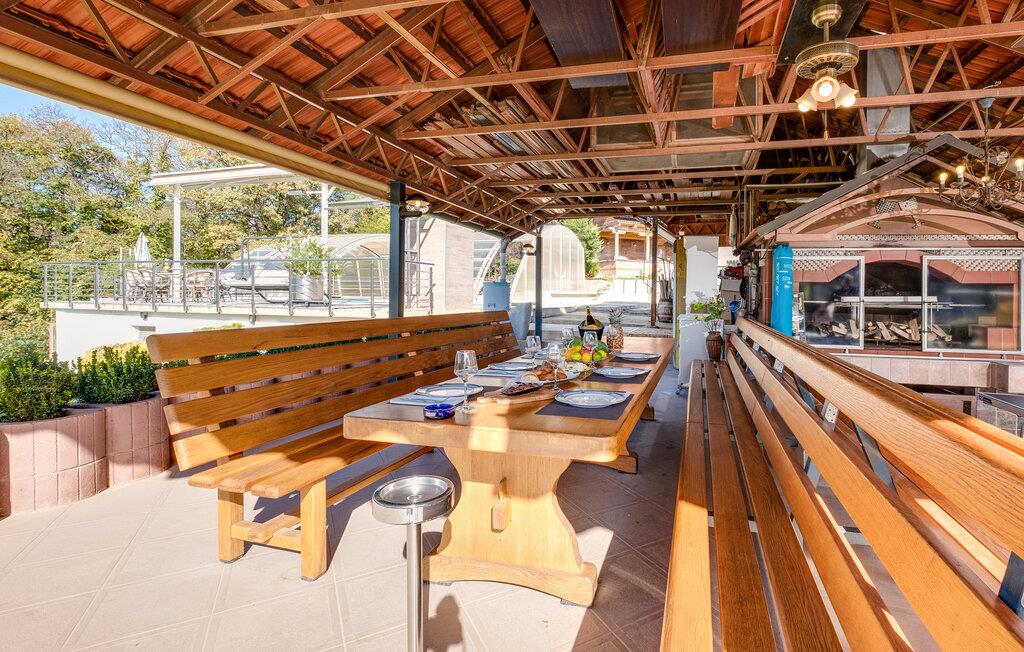 Velkommen til dette indbydende feriehus nær Zagreb, som tilbyder komfort og stilfuld hygge. Her venter jer en sand oase af afslapning midt i naturen, perfekt til en ferie med familie eller venner. Et særligt højdepunkt er den opvarmede pool: under åben himmel i højsæsonen og som overdækket indendørspool i lavsæsonen, hvilket sikrer jer afslappende stunder året rundt. Den store have er et paradis for både store og små – med solrige terrasser, et udendørs køkken og grillplads til hyggelige aftener. Aktivitetsrummet med bar, billard og bordfodbold byder på masser af underholdning og opfylder alle ønsker til en vellykket ferie.