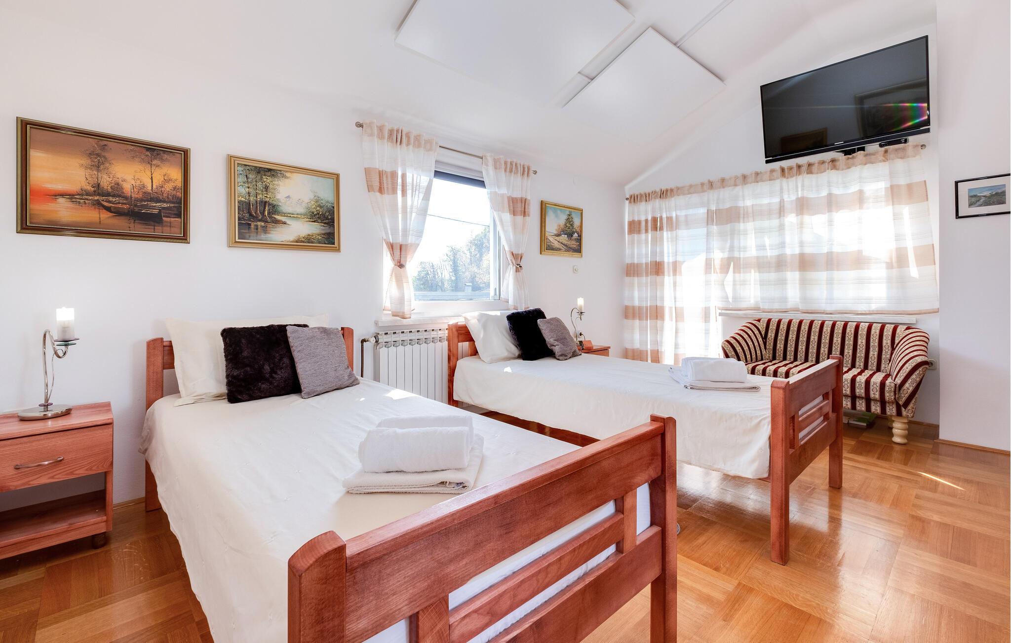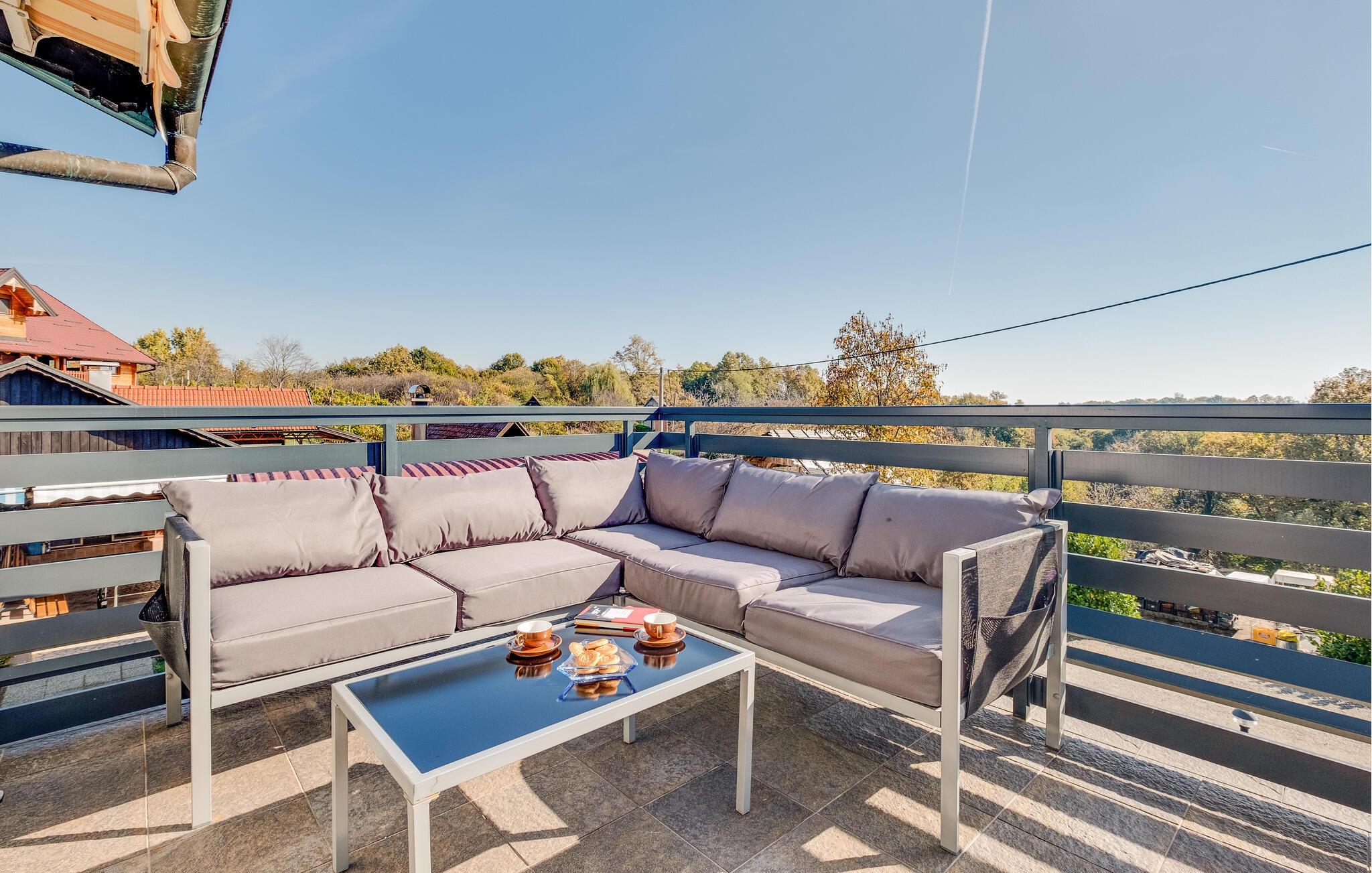 Omgivet af uberørt natur, byder området omkring Brezane Lekenicke på mange aktivitetsmuligheder og udflugter. De nærliggende bakker og skove er ideelle til lange vandreture og cykelture, hvor I kan udforske landskabet og finde ro. Zagreb ligger kun en kort køretur væk, og her kan I opleve museer, den livlige gamle bydel og hyggelige caféer – perfekt til en kulturel dagsudflugt. Tilbage i ferieboligen kan I afslutte dagen på terrassen og nyde naturens stilhed.