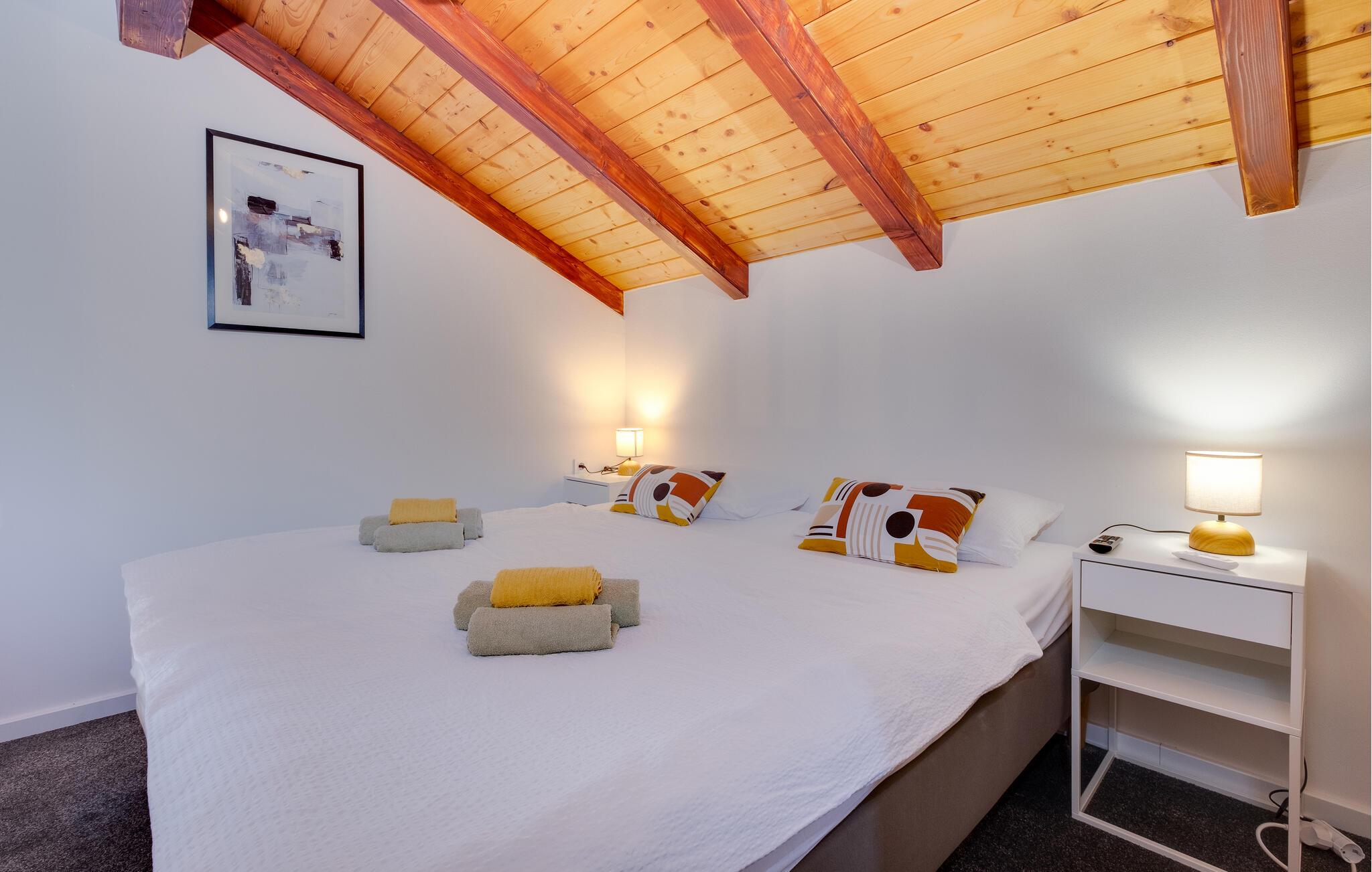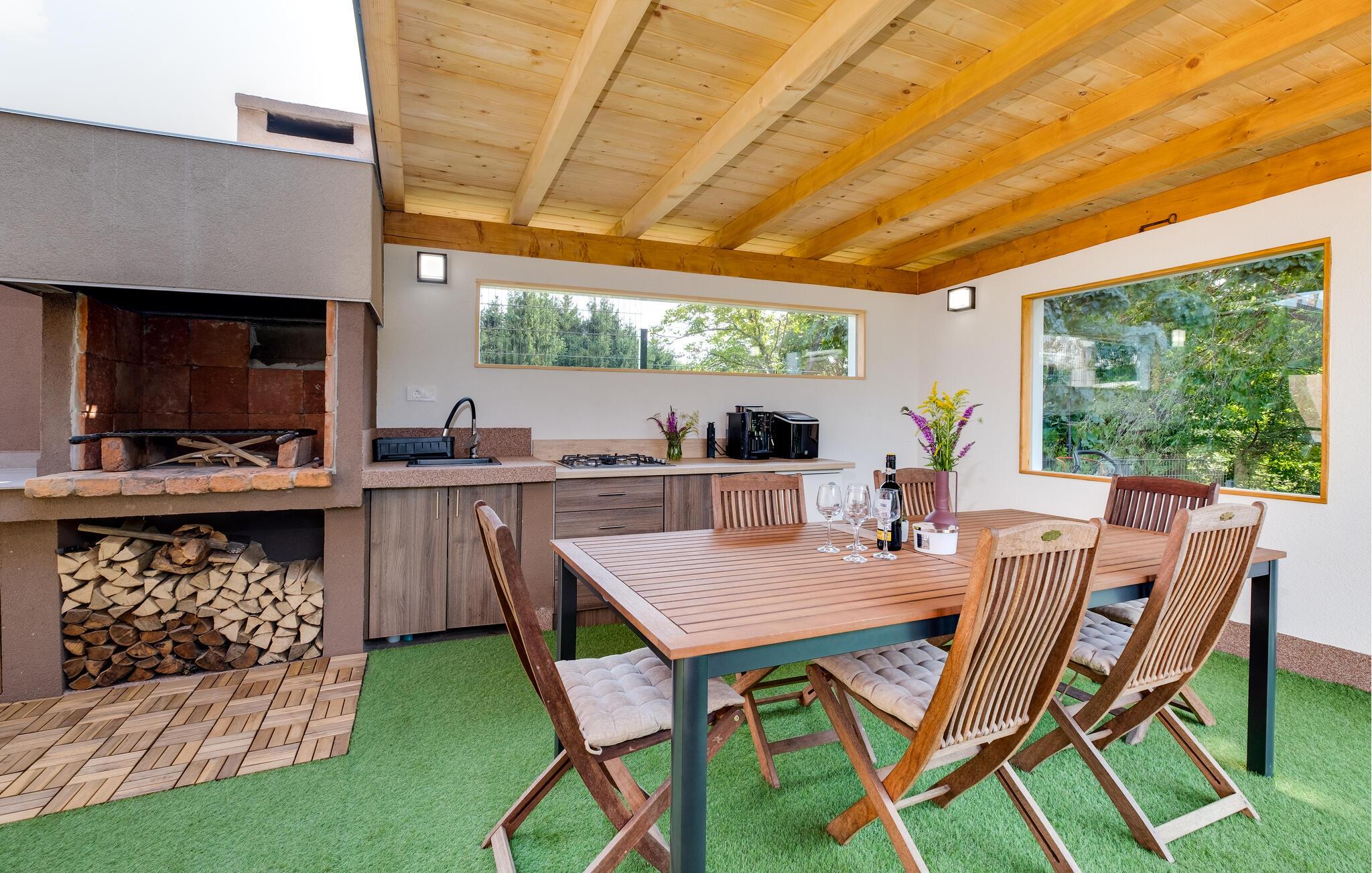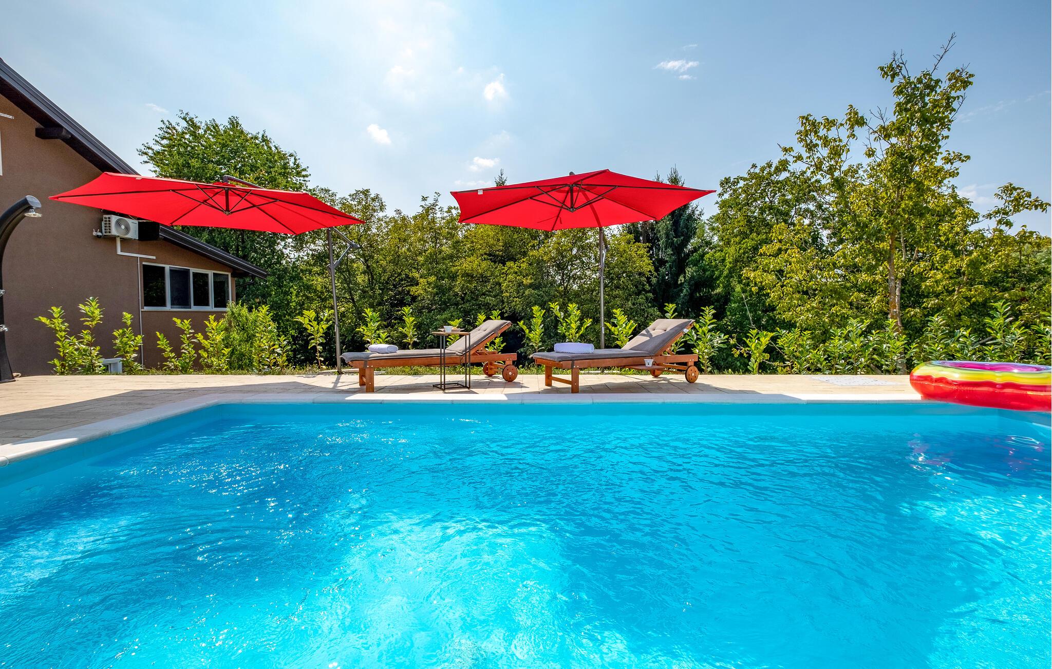 Nyd jeres ferie i dette smukke og meget komfortable feriehus med mange faciliteter. I dette familievenlige feriehus vil I opleve ren komfort og afslapning. Nyd de moderne møbler af høj kvalitet og føl jer hjemme på begge etager. Husets åbne galleri skaber en luftig rumfølelse, mens opholdsrummet er indbydende indrettet. Børn vil nyde de mange indendørs og udendørs legeredskaber, mens I kan slappe af i det indendørs SPA-område med spabad eller i den opvarmede udendørs pool. Det omgængelige område med bordfodbold og dart sørger for underholdende aftener. Slap af på de forskellige terrasseområder, hvoraf det ene også har et sommerkøkken, eller se børnene lege på legepladsen fra hængekøjen. Gornji Vinkovec tilbyder jer et roligt, landligt miljø, ideelt for friluftsmennesker. Nyd de mange cykel- og vandrestier, der fører gennem det maleriske landskab, eller besøg den nærliggende sø for afslappende fisketure. Zagreb med sine kulturelle og historiske seværdigheder er optimal til en dagstur. Et særligt højdepunkt er Aquapark Adamovec, perfekt til en sjov familieudflugt. Der er også vinruter og talrige restauranter i regionen, der lægger op til at opleve lokale specialiteter.