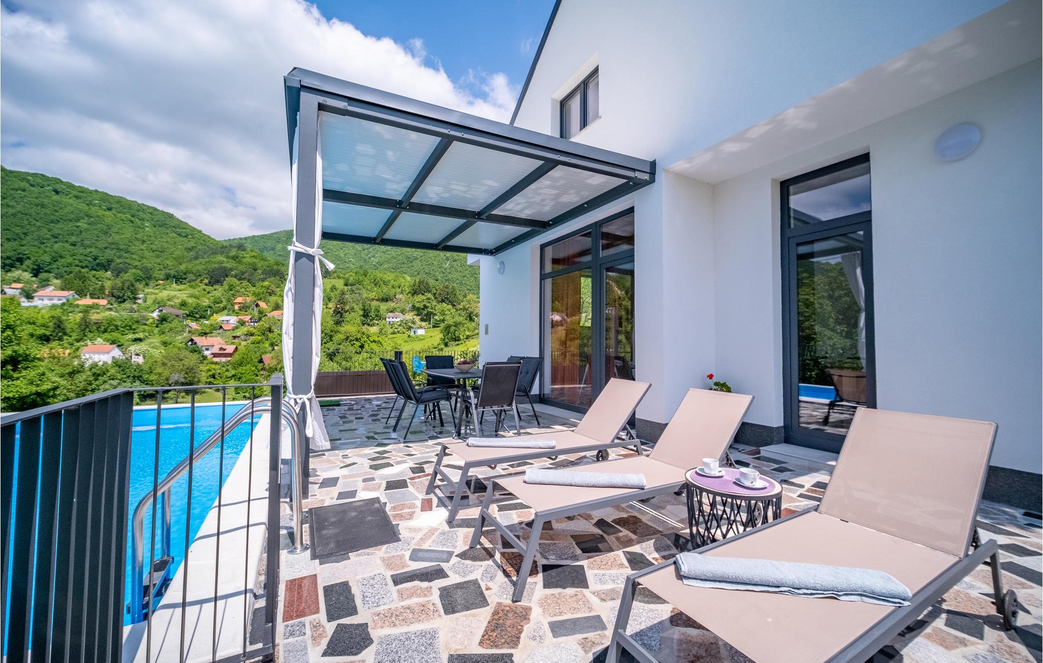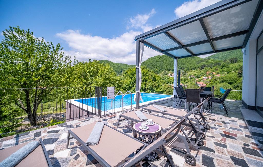 Tag en dyb indånding og nyd en skøn ferie i dette familievenlige feriehus. I kan finde jer tilpas med jeres kære i to etager og nyde det moderne og veludstyrede hus. Lav mad i det smukke køkken, krøl jer sammen i sofaen med en sjov film og foran brændeovnen, eller gå ud på terrassen for at nyde jeres måltid og solskinnet. Når I bader i poolen, kan I nyde det betagende naturlige panorama omkring jer og slappe af. jeres børn finder legeredskaber i haven, som I kan bruge til timevis af sjov.