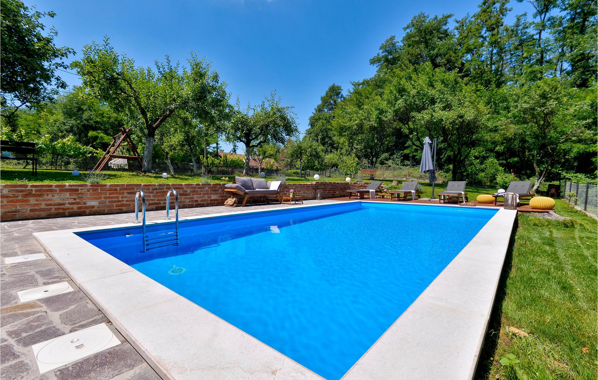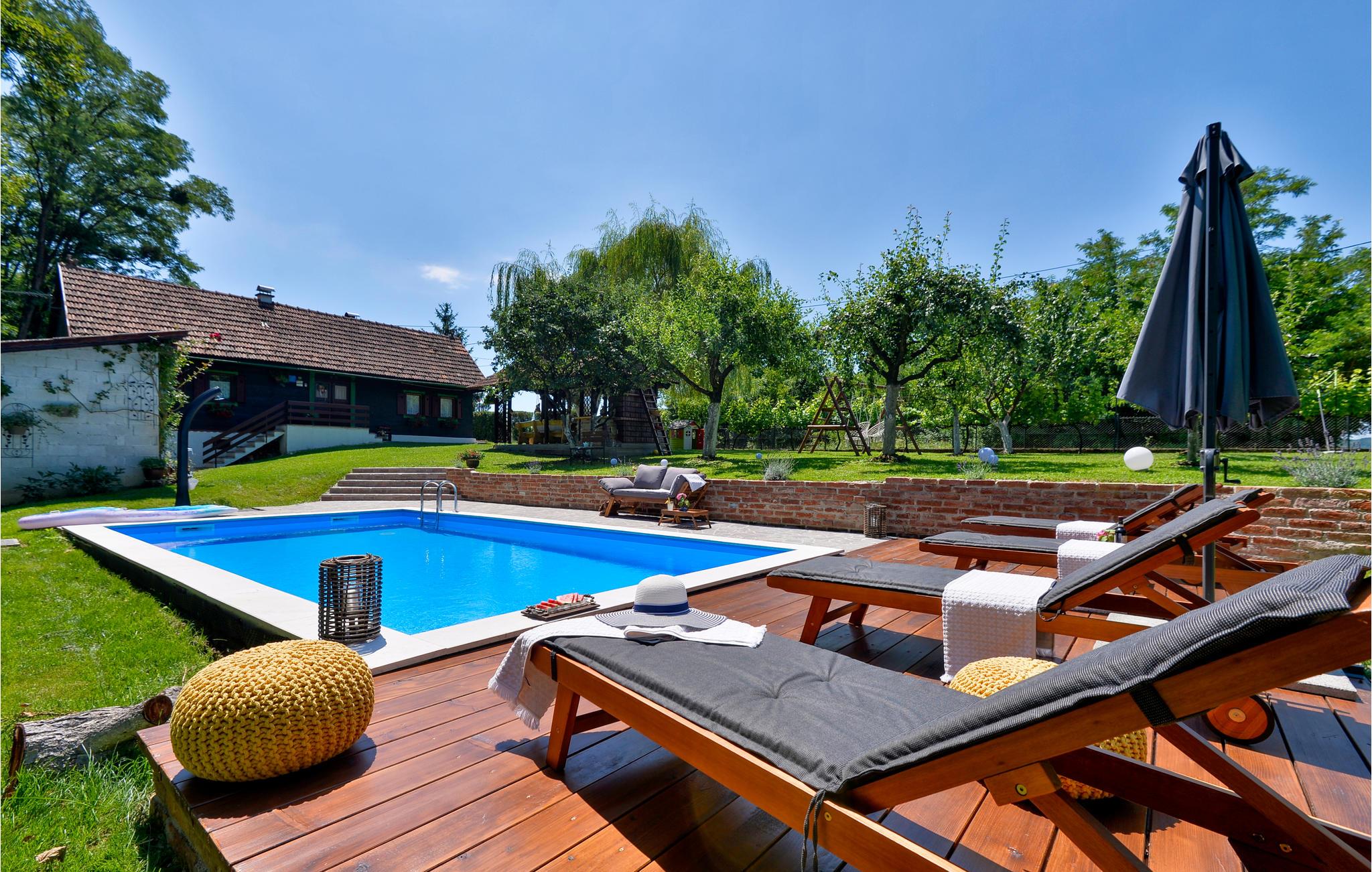 Her i det indre af landet er der stadig præg af det gamle landbrug, og dette lille fine hus afspejler landskabets fortryllende historiske karakter på bedste vis. Det indbydende bondehus ligger ikke langt fra Zagreb. På de varme sommerdage er det skønt at hoppe i poolen, der ligger omgivet af frugttræer i haven, ligesom de store plæner indbyder til sjov med børnene hvad end der skal spilles bold eller badminton. Som noget særligt er her også en whirlpool. I kan også slappe af med god mad fra grillen på den store overdækkede terrasse. De smukke naturomgivelser indbyder til lange gåture, desuden kan I tage en tur til landets hovedstad Zagreb hvor der altid er noget at se og opleve.