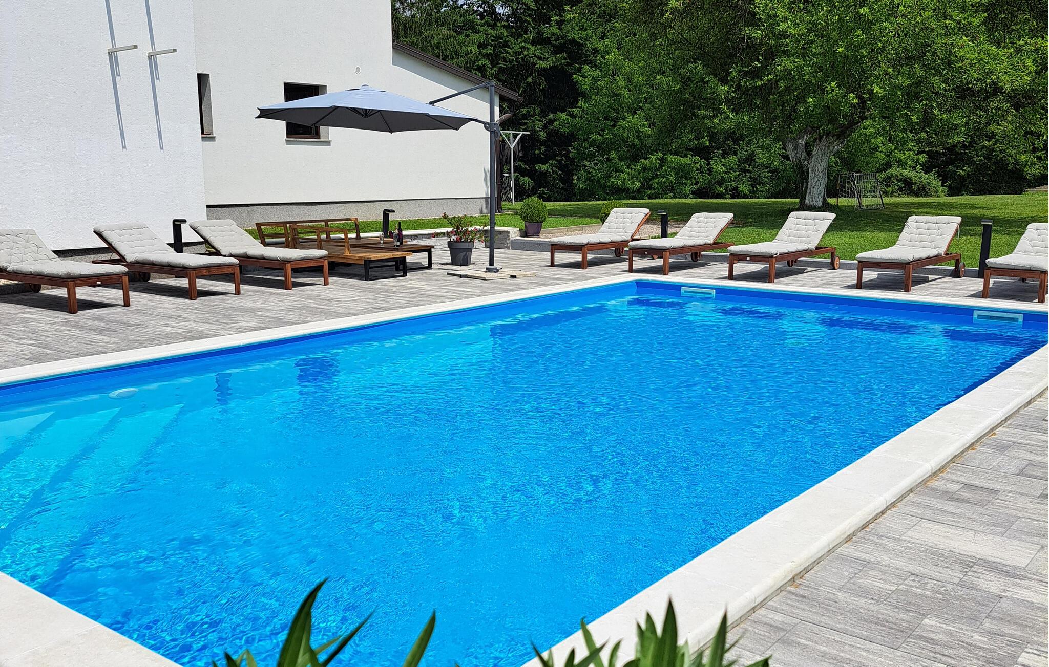 Tilbring en ubekymret og afslappende ferie i dette smukt møblerede sommerhus med udendørs pool.