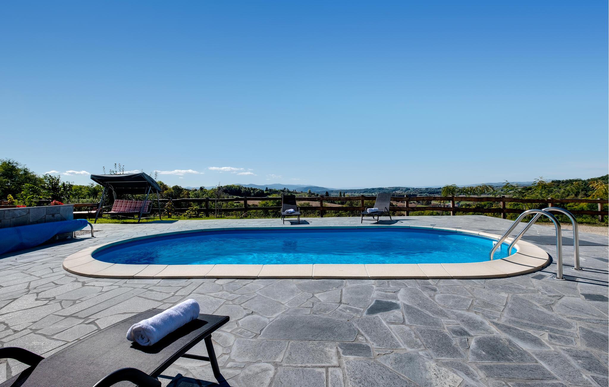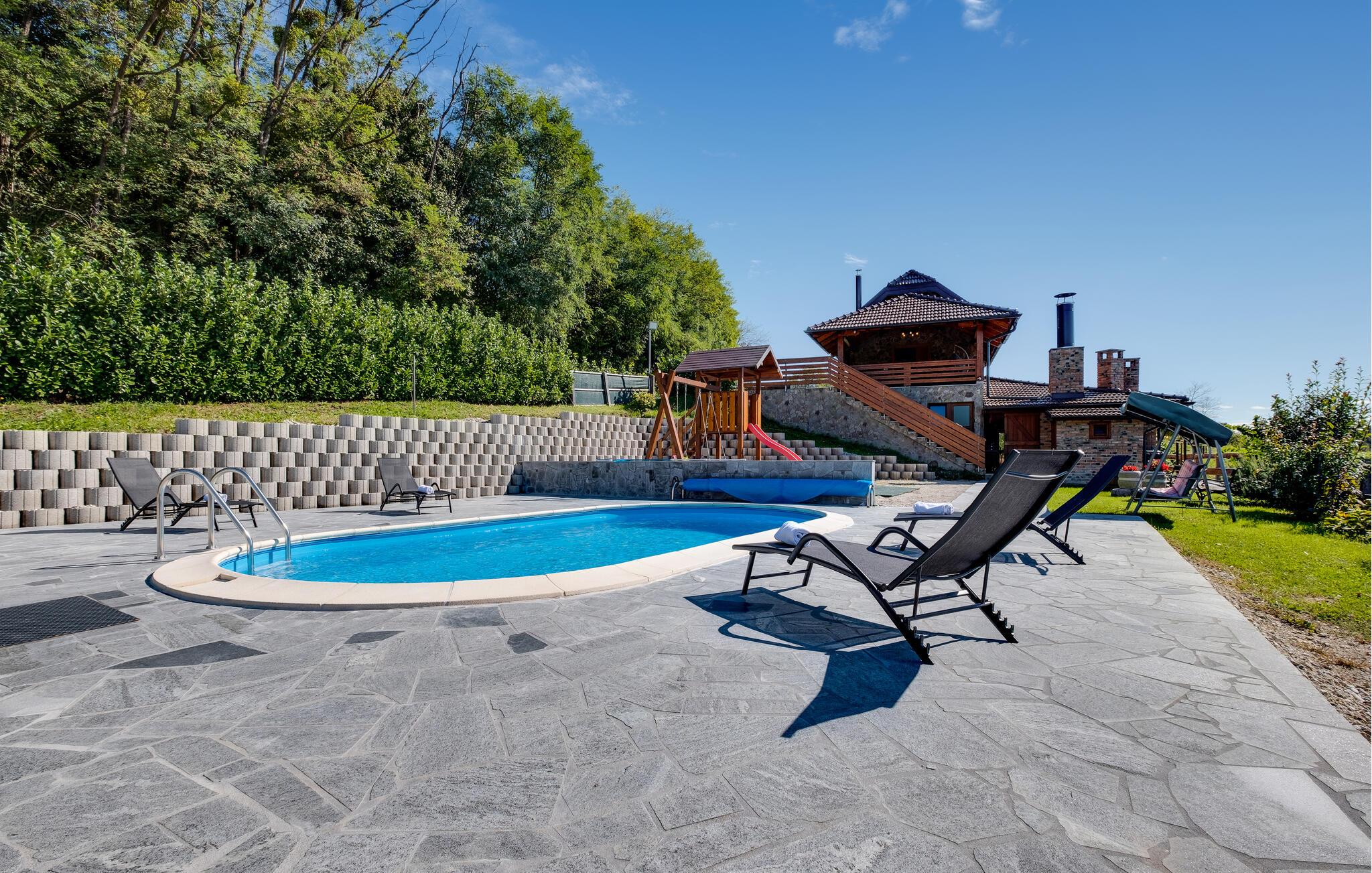 Tilbring en uforglemmelig ferie i jeres feriehus i Rozga, kun en kort køretur fra Zagreb. Denne charmerende indkvartering med privat pool tilbyder jer og jeres familie et afslappende tilflugtssted omgivet af grønne bakker og et malerisk landskab. Nyd den betagende panoramaudsigt over de omkringliggende skove, og læg hverdagen bag jer.