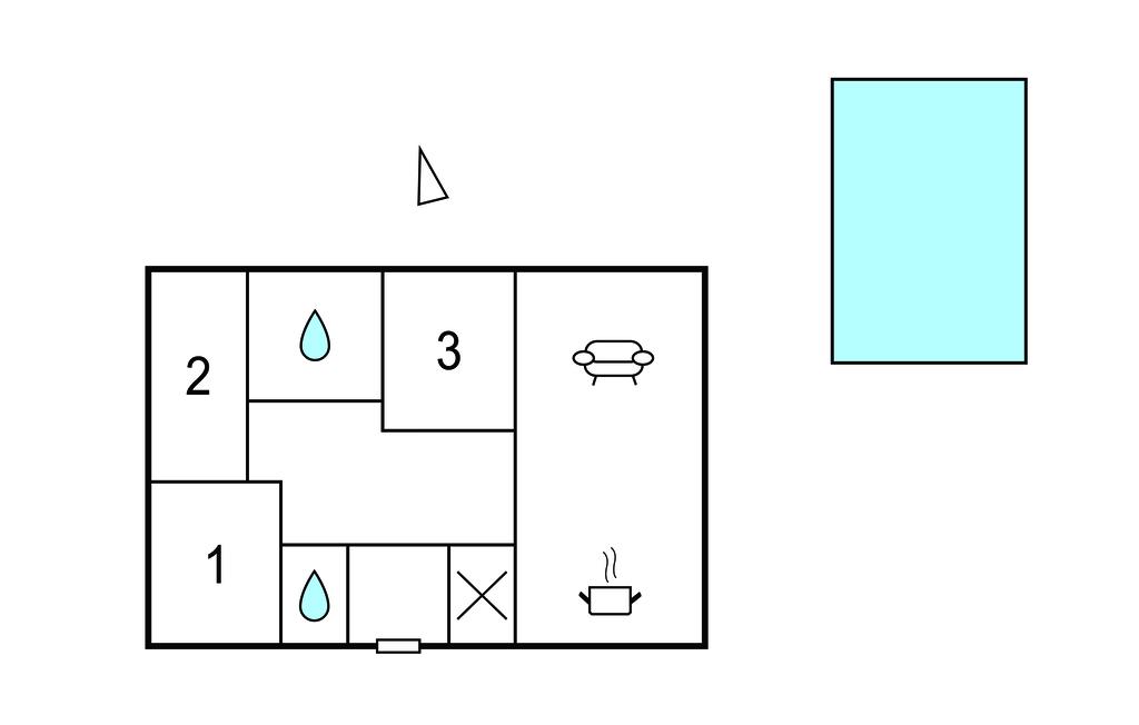 Opholdsstue 30m2 - 2 Sovepladser. (Sofa, madras eller lignende).