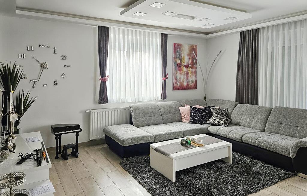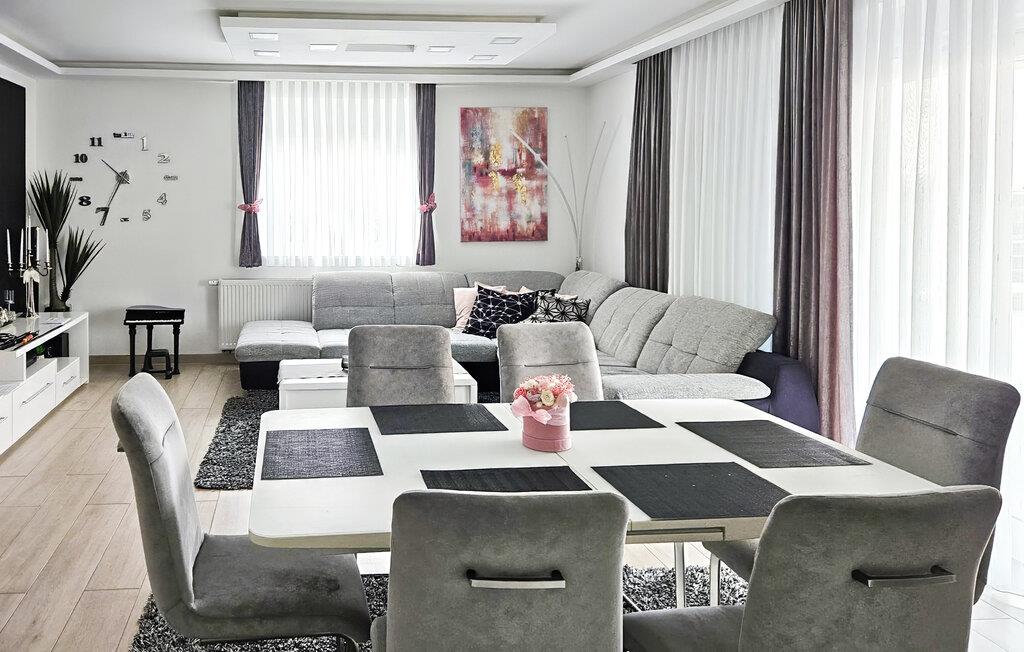 Træd indenfor og nyd de lyse, rummelige værelser med deres harmoniske farveskema. Find jer til rette i den elegante opholdsstue med den store hjørnesofa og brug et af tv'erne til filmaftener sammen. Slap af i den fredfyldte atmosfære eller udfordr hinanden på spillekonsollen. Om aftenen kan I samles omkring spisebordet i køkkenet med køkkenøen, og mindes dagen.