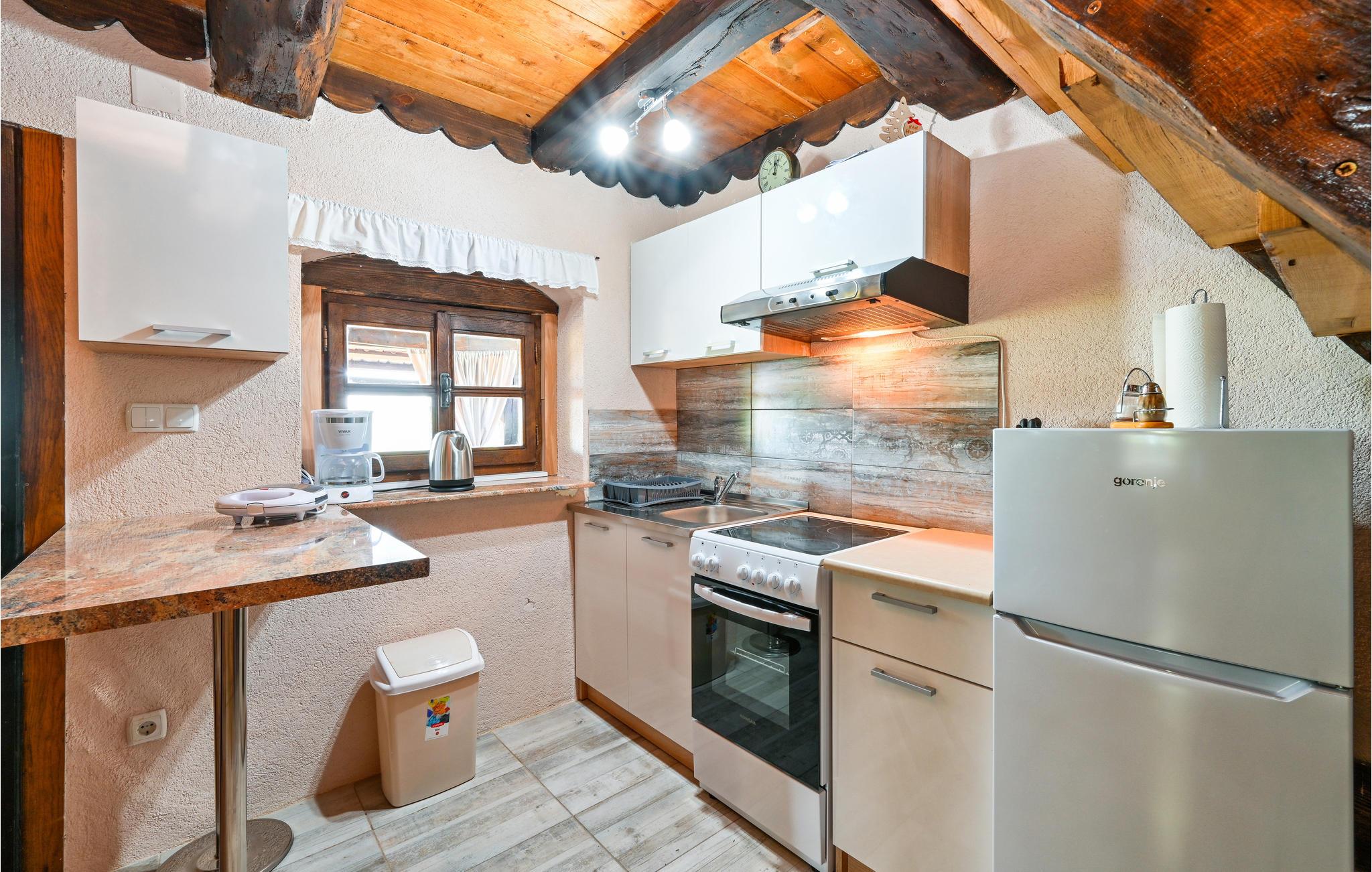 På en forhøjning, ikke langt væk fra Zagreb, ligger dette autentiske feriehus, der er bygget i oprindelig stil for dette område. Huset består af en stueetage med stue kombineret med køkken, spisestue og badeværelse, mens der på 1. etage findes 2 soveværelser. Huset er ideelt til en familieferie.