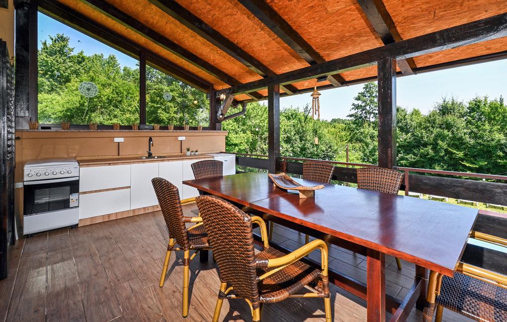 Nyd naturens stilhed til et godt glas vin under de milde sommeraftener. På regnfulde dage kan I sidde på den overdækkede terrasse og lytte til regnen, der trommer på taget, eller varme jer foran pejsen i stuen.