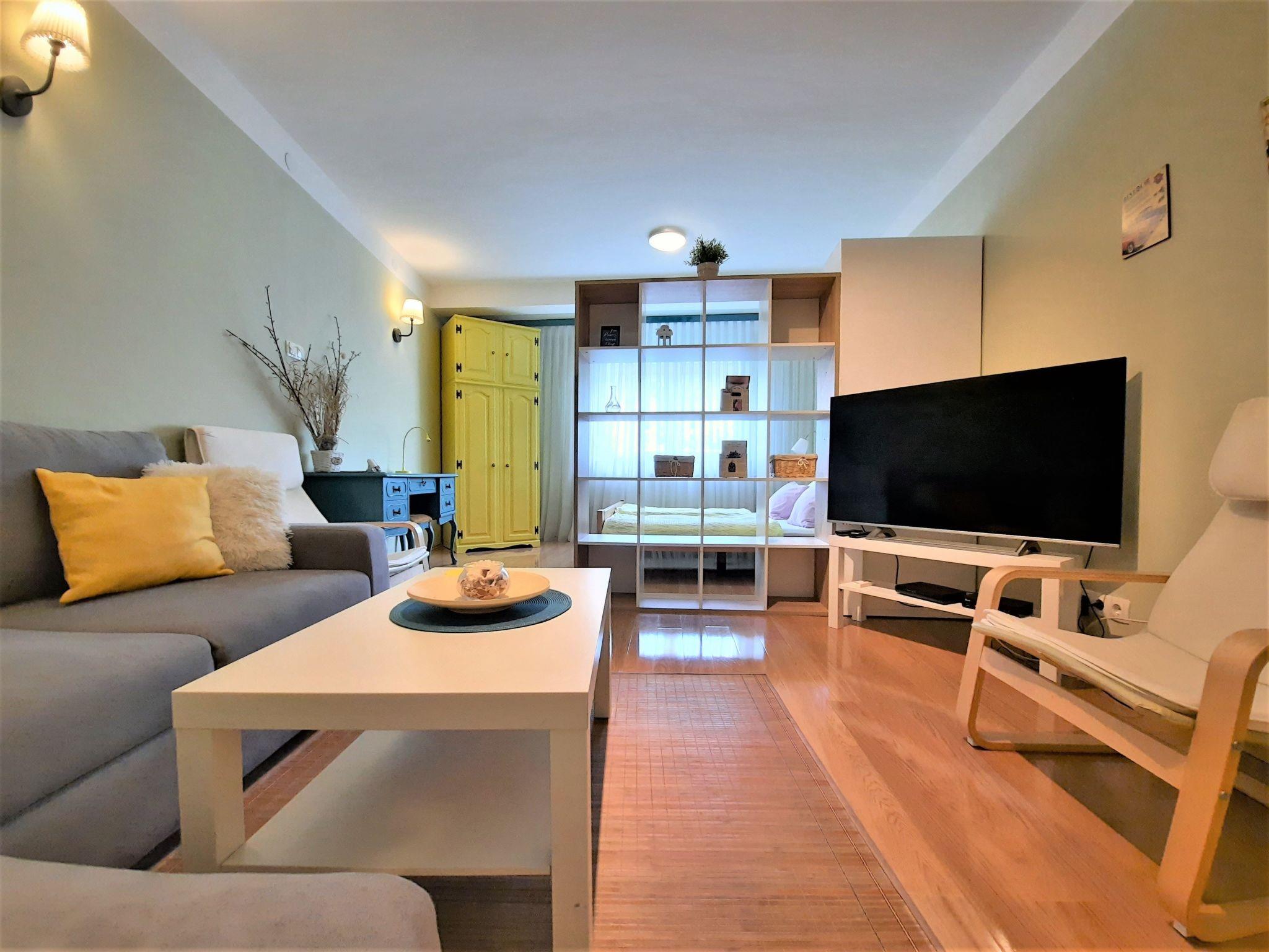 All areas of the apartment are heated, an air-conditioner is available in the living room. Five persons can stay in the apartment, sleeping is arranged in bedroom and sleeping area of the living room. Living room has flat screen tv with around 40 cable channels and wi-fi internet is in the all area of the apartment.