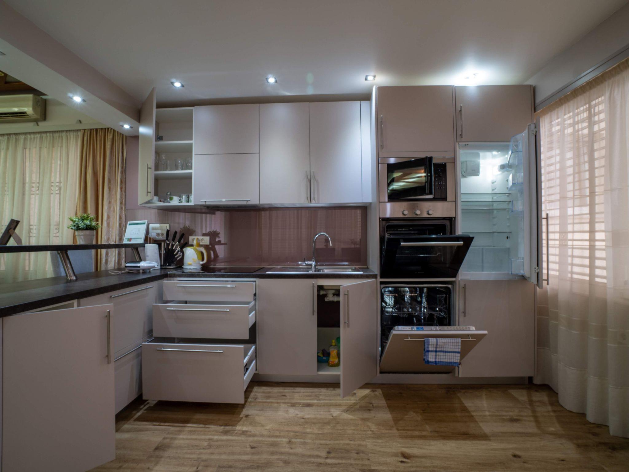 The interior of the apartment is full of everything you need for a carefree stay. Key features include a fully equipped kitchen with an induction hob and dishwasher, allowing you to prepare meals with minimal effort. For added comfort, the apartment is equipped with air conditioning in all rooms, and underfloor heating has been installed in certain areas to make your stay even more enjoyable during the colder months.