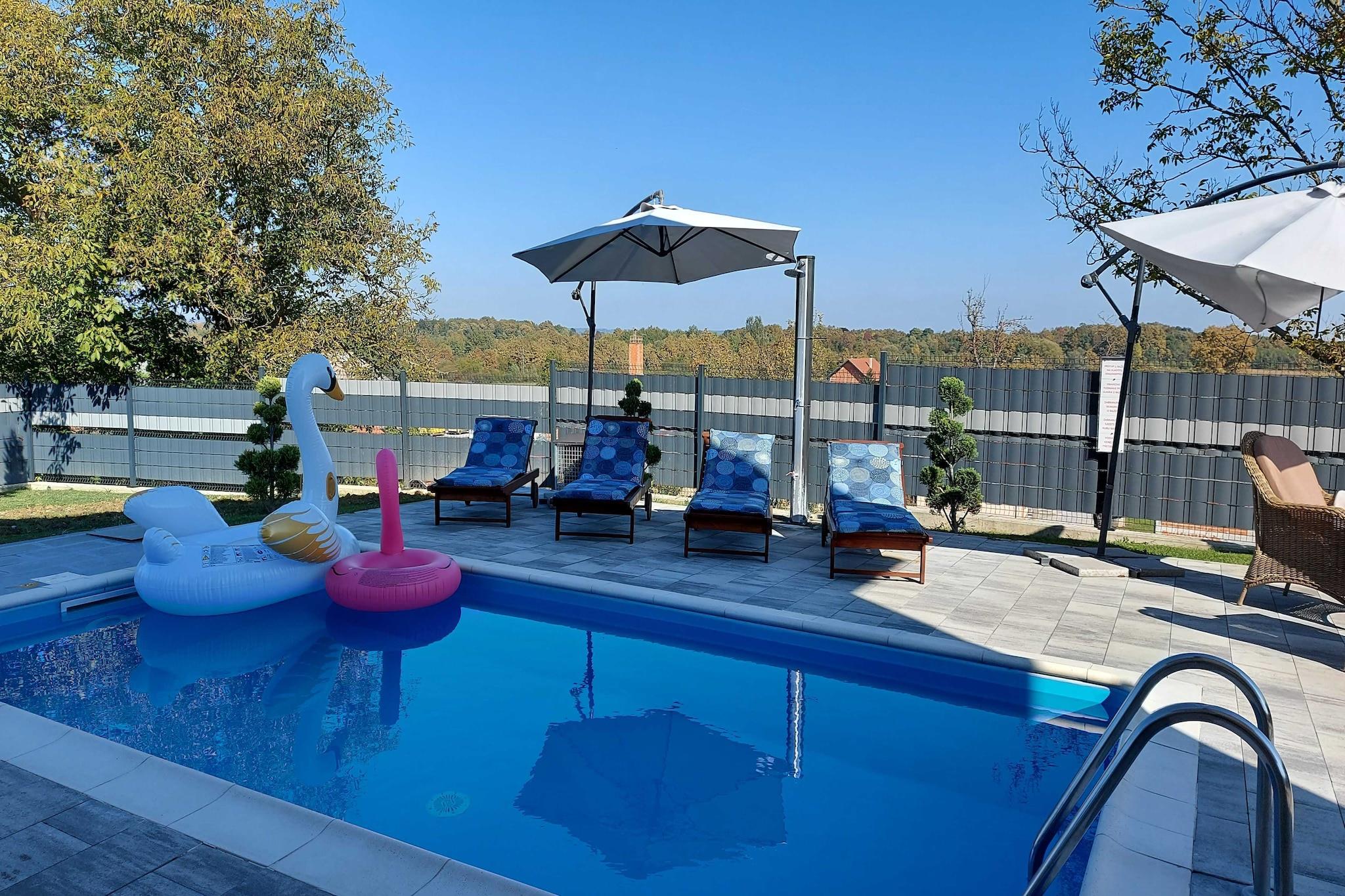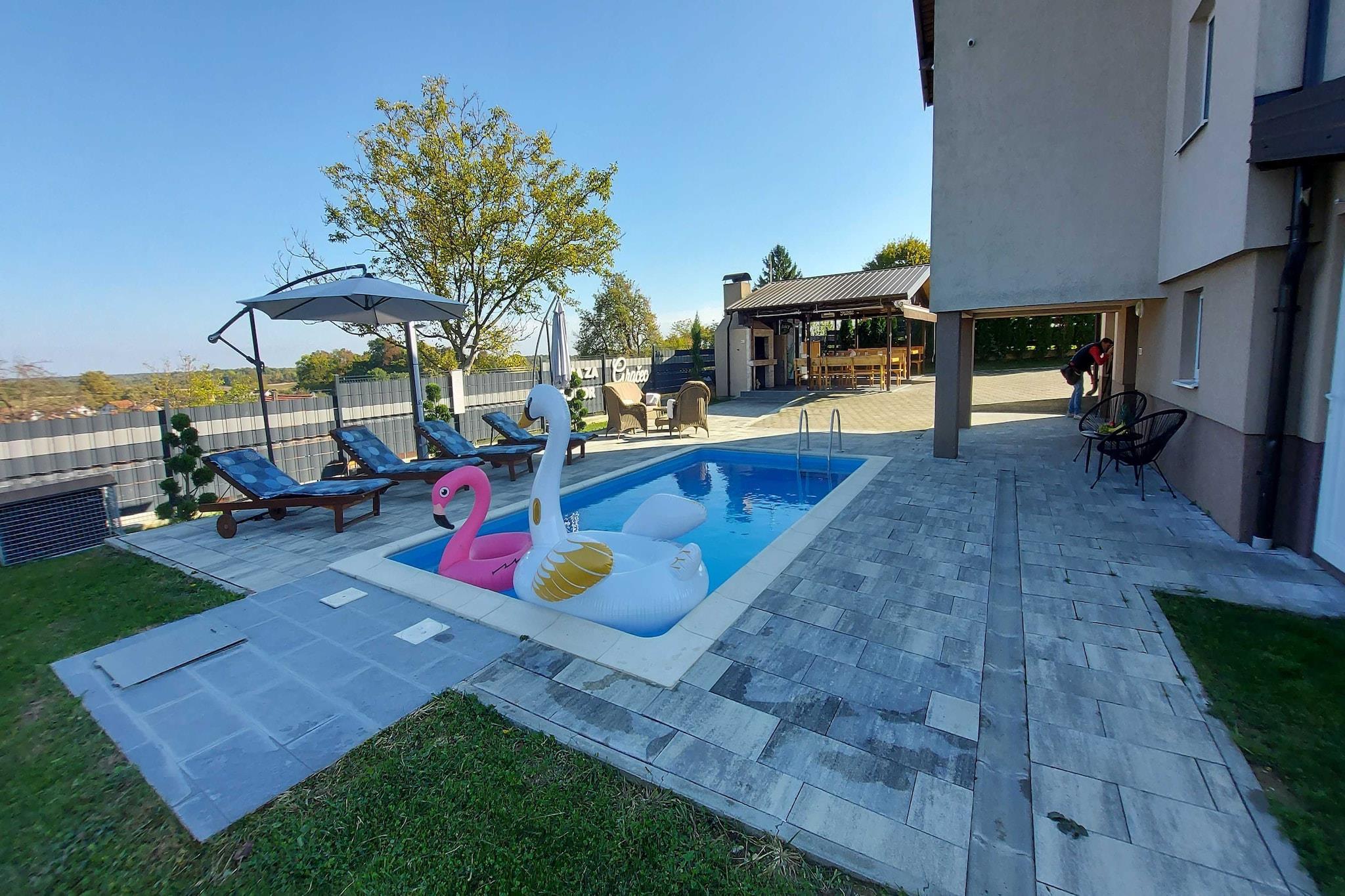 Holiday Home Gracec ligger i St.Ivan Zelina, kun få kilometer fra hovedstaden Zagreb. Det er beliggende i et roligt kvarter. En swimmingpool og terrasse med liggestole og parasoller står til din rådighed, hvilket gør dette sted ideelt til familie- eller venners ferie. Du har også adgang til grillfaciliteter og en udendørs spiseplads. Hjemmet omfatter også en møbleret terrasse og have, hvor du kan slappe af og nyde din ferie. Privat parkering er til rådighed, reservation er ikke påkrævet. Wi-fi er muligt overalt på ejendommen.Feriehus Gracec er en duplex med stueetage og hems. Den kan rumme op til ti personer Køkken, spiseplads, stue og badeværelse ligger i stueetagen mens to soveværelser med terrasse er placeret på hemsen Køkkenet er veludstyret med ovn, elkedel, kaffemaskine, køleskab, stor spisebord.I spisestuen er der fladskærms-tv, sovesofa dobbelt, brændeovn Soveværelserne har store dobbeltsenge og garderobeskabe Badeværelserne har bruser og toilet.På grund af ejendommene god beliggenhed alt hvad du kan få brug for under dit ophold kan findes i området. I nærheden af ejendommen kan du finde kaffebar, ambulance, apotek, posthus og supermarked i nærheden af ejendommen. Det nærmeste busstoppested ligger mindre end 1 km fra huset. Lufthavnen ligger 27 km fra ejendommen.