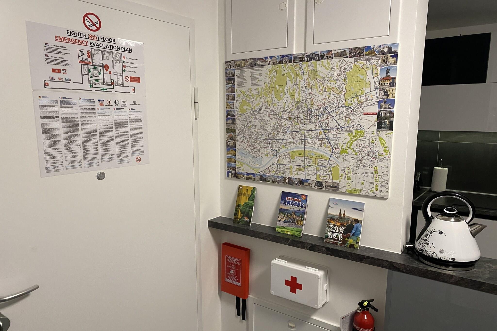 Apartment Vuky ligger i Zagreb, Kroatiens hovedstad. På grund af ejendommens fantastiske beliggenhed kan du finde alt, hvad du kan få brug for under din ferie, i nabolaget, hvilket gør dette sted til et perfekt sted for familie- eller venners ferie. Apartment Vuky er en lejlighed med 2 soveværelser og balkon, der har tv på alle værelser. Det har aircondition samt centralvarme. Der tilbydes gratis privat parkering, reservation er ikke nødvendig. Bagageopbevaring er mulig før check-in og efter check-out, så du kan udforske byen lidt mere før din afrejse.Denne toværelses lejlighed kan rumme 4 gæster. Den åbne stue med sofa og opholdsstue er kombineret med udstyret køkken og spiseplads. Det ene soveværelse er indrettet med en stor dobbeltseng, mens det andet har to enkeltsenge. Det private badeværelse kommer med med bad og toilet.Gratis toiletartikler, hårtørrer samt sengetøj og håndklæder er til din rådighed.Lejligheden ligger på ottende sal.Hvis du vil have alt, hvad du behøver i nabolaget under din ferie, er lejligheden Vuky det bedste valg for dig. I nabolaget finder du dagligvarebutikker, caféer, restauranter, pengeautomater. Sporvognsstoppestedet, der forbinder Borongvaj med andre dele af Zagreb, ligger kun 100 m fra ejendommen. Hovedtorvet i Ban Josip Jelacic ligger 3 km fra lejligheden. Sporvognsstoppestedet ligger kun 100 m fra lejligheden. Hovedbusstationen ligger 2 km derfra. Lufthavnen ligger 16 km fra lejligheden.