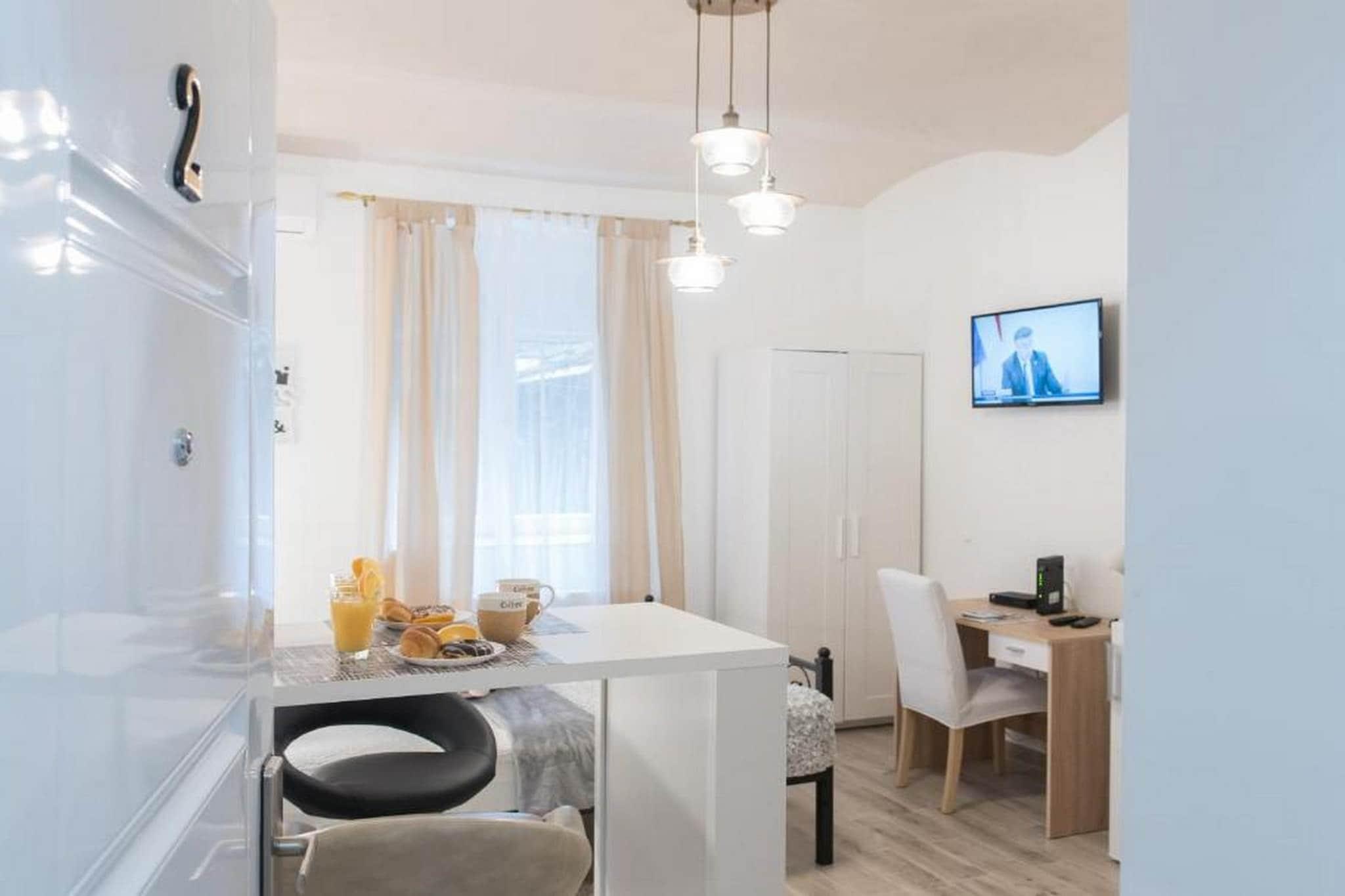 Apartments C-enter er beliggende i hovedstaden Zagreb, kun 10 minutters gang fra Ban Josip Jelacic-pladsen. Ejendommen har to lejligheder med egen forplejning, begge beliggende på første sal. Begge lejligheder har gratis trådløs internetadgang og Aircondition.Denne Deluxe Studio-lejlighed med aircondition har gratis WIFI, tekøkken med spisebord og eget badeværelse. Tekøkkenet er udstyret med køleskab, komfur, mikroovn, vandkedel og køkkenudstyr. Det private badeværelse er udstyret med bruser, hårtørrer og gratis toiletartikler.Denne Deluxe Studio-lejlighed kan komfortabelt rumme op til 2 personer.Ejendommen er beliggende i byens centrum, kun 1 km fra Ban Josip Jelacic-pladsen.Alt hvad du behøver er i 400 meter rækkevidde. Sporvognsstation er 250 meter væk, Bank er 360 meter væk, mens såvel som apoteket. Posthus ligger kun 150 m fra lejligheden. Restauranter, caféer og markeder er på hvert hjørne.Zagreb lufthavn ligger 15 km derfra, mens hovedbusstationen ligger 1,1 km derfra. Den nærmeste sporvognsstation ligger 250 m væk.