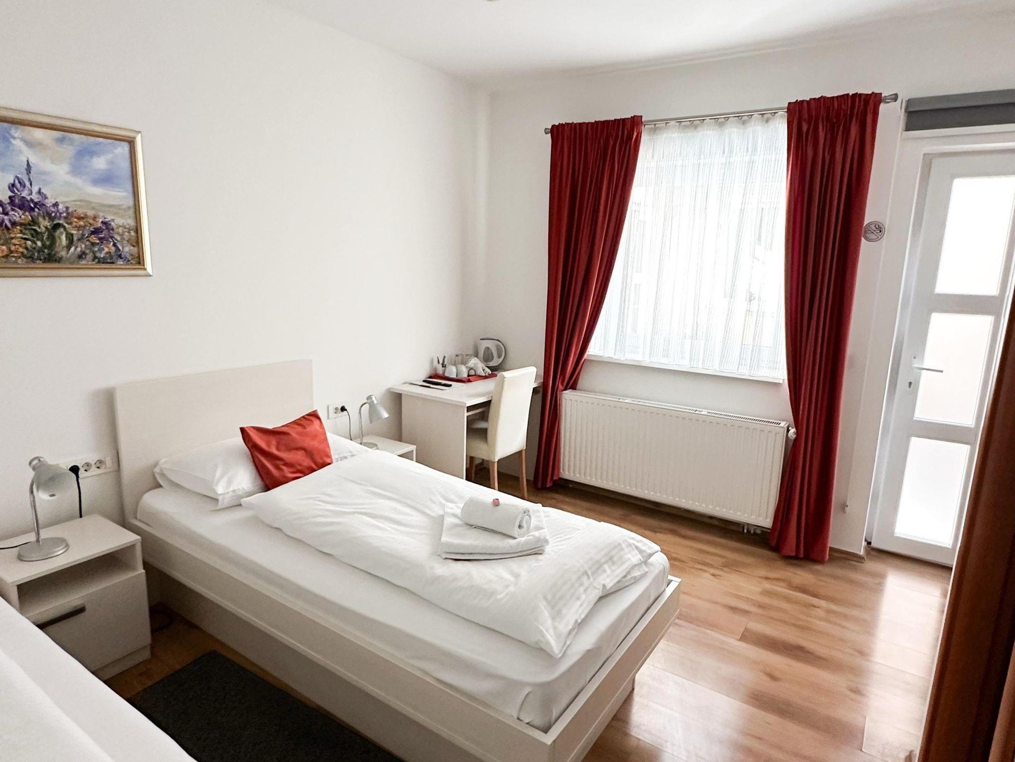 Zimmer bietet Platz für 2 Gäste. Die Betten sind in Schlafzimmern, die es 1 gibt, innerhalb einer Gesamtfläche von 20m2, angeordnet. Die Nutzung einer gemeinsamen Küche ist möglich. Die reservierte Unterkunftseinheit ist ein Zimmer mit eigenem Badezimmer mit der Möglichkeit der Nutzung einer Küche ohne Zuzahlung. Die reservierte Unterkunftseinheit verfügt über einen gemeinsame Terrasse. Räume der gebuchten Unterkunftseinheit werden nicht in eine Ganze verbunden. IM PREIS INBEGRIFFEN: Kurtaxe, Endreinigung, Klimatisierung, Zentralheizung, gemeinsame Küche, Internet, Kinderbett, Bügeleisen, Bügelbrett, Föhn. Die Verfügbarkeit zusätzlicher Dienstleistungen in Ihrem reservierten Termin und die Preise derselben (falls nicht aufgeführt) müssen im Voraus überprüft werden. Zusätzliche Dienstleistungen die in der Zahlungsaufforderung nicht aufgeführt sind werden direkt beim Vermieter bezahlt, angenommen der Gast nutzt auch diese.