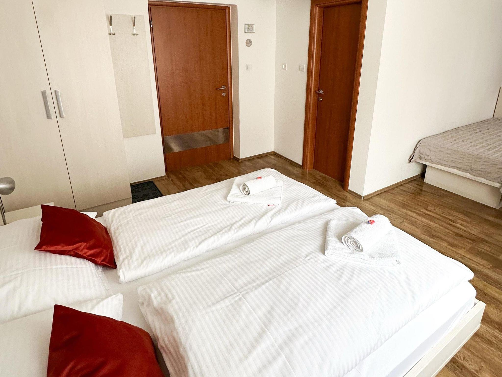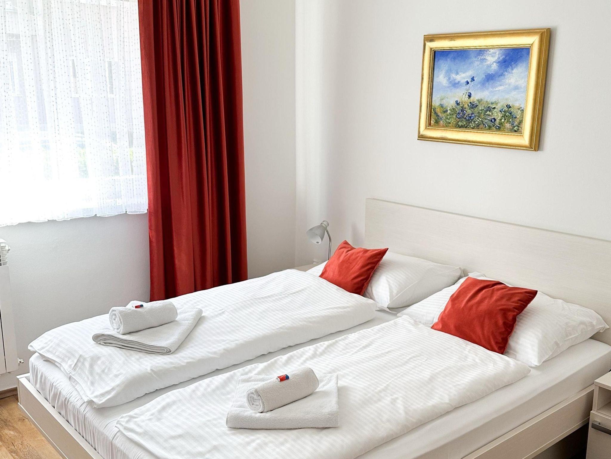 Zimmer bietet Platz für 3 Gäste. Die Betten sind in Schlafzimmern, die es 1 gibt, innerhalb einer Gesamtfläche von 23m2, angeordnet. Die Nutzung einer gemeinsamen Küche ist möglich. Die reservierte Unterkunftseinheit ist ein Zimmer mit eigenem Badezimmer mit der Möglichkeit der Nutzung einer Küche ohne Zuzahlung. Die reservierte Unterkunftseinheit verfügt über einen gemeinsame Terrasse. Räume der gebuchten Unterkunftseinheit werden nicht in eine Ganze verbunden. IM PREIS INBEGRIFFEN: Kurtaxe, Endreinigung, Klimatisierung, Zentralheizung, gemeinsame Küche, Internet, Kinderbett, Bügeleisen, Bügelbrett, Föhn. Die Verfügbarkeit zusätzlicher Dienstleistungen in Ihrem reservierten Termin und die Preise derselben (falls nicht aufgeführt) müssen im Voraus überprüft werden. Zusätzliche Dienstleistungen die in der Zahlungsaufforderung nicht aufgeführt sind werden direkt beim Vermieter bezahlt, angenommen der Gast nutzt auch diese.