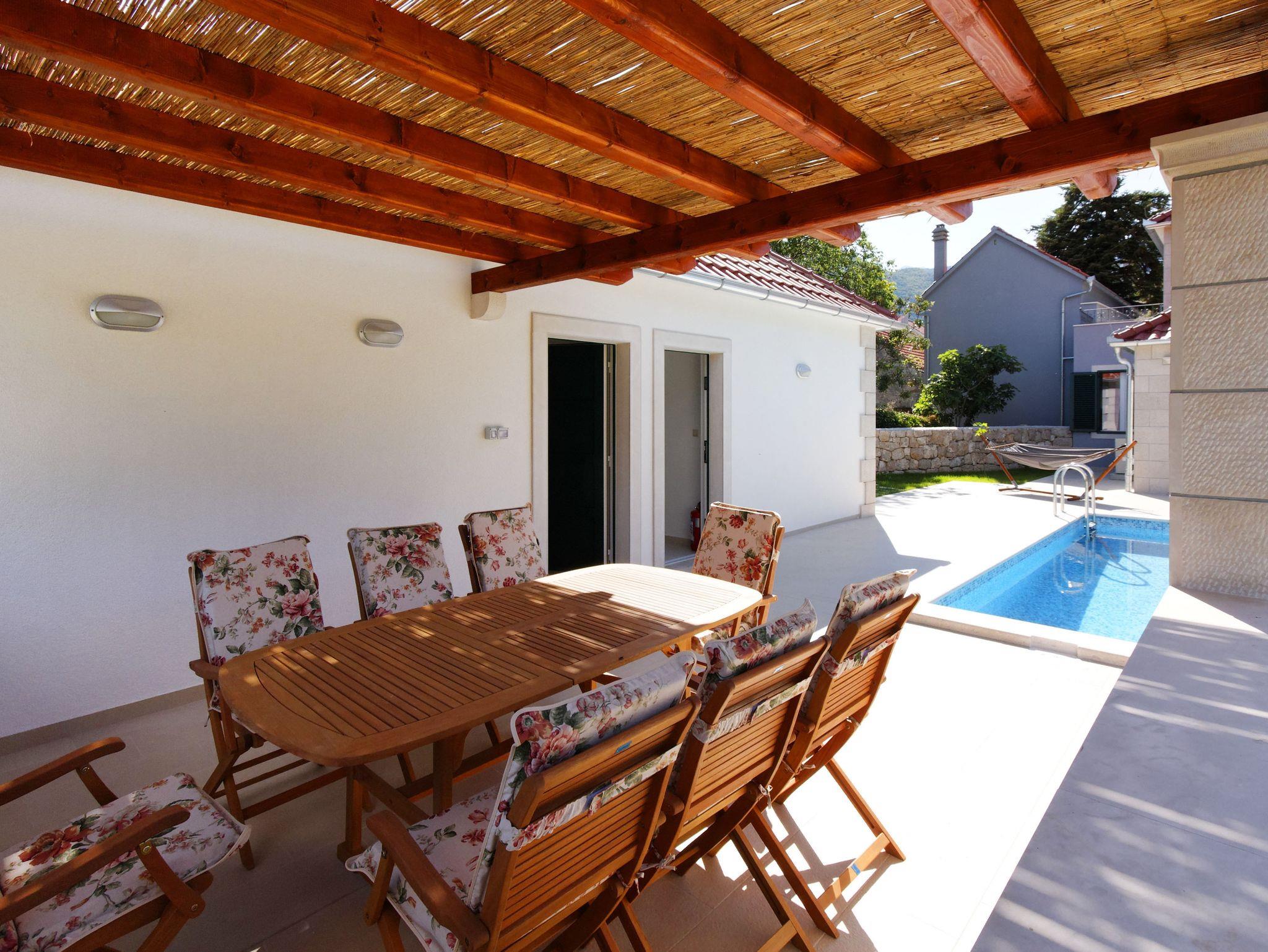 Hof (50m2, Sitzbereich), Parkplatz (Anzahl der Parkplätze: 2, Entfernung vom Objekt: im Hof), Pool: privat, Dimensionen: 6m x 3.5m x 1.6m, Wassertyp: Süßwasser, WiFi Internet, Föhn, Bügeleisen, Bügelbrett