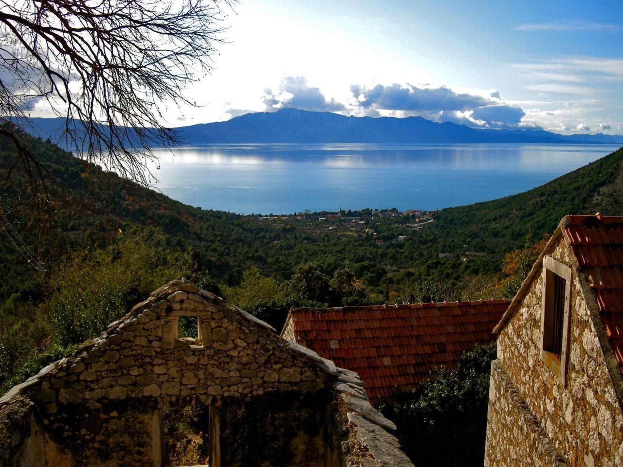 Newly renovated fully enclosed traditional Dalmatian stone villa overlooking the village church in the valley, with a spacious panoramic sea and mountain view terrace