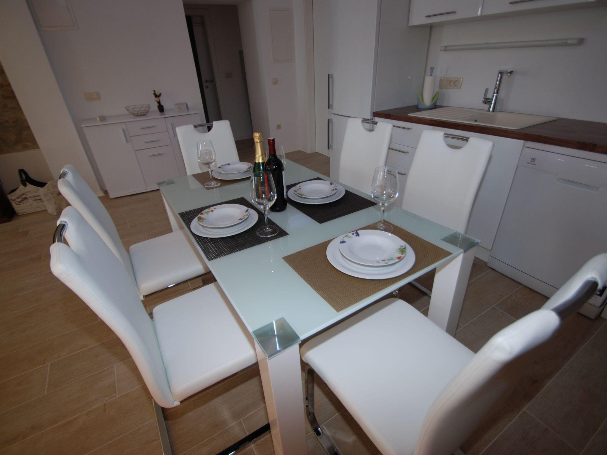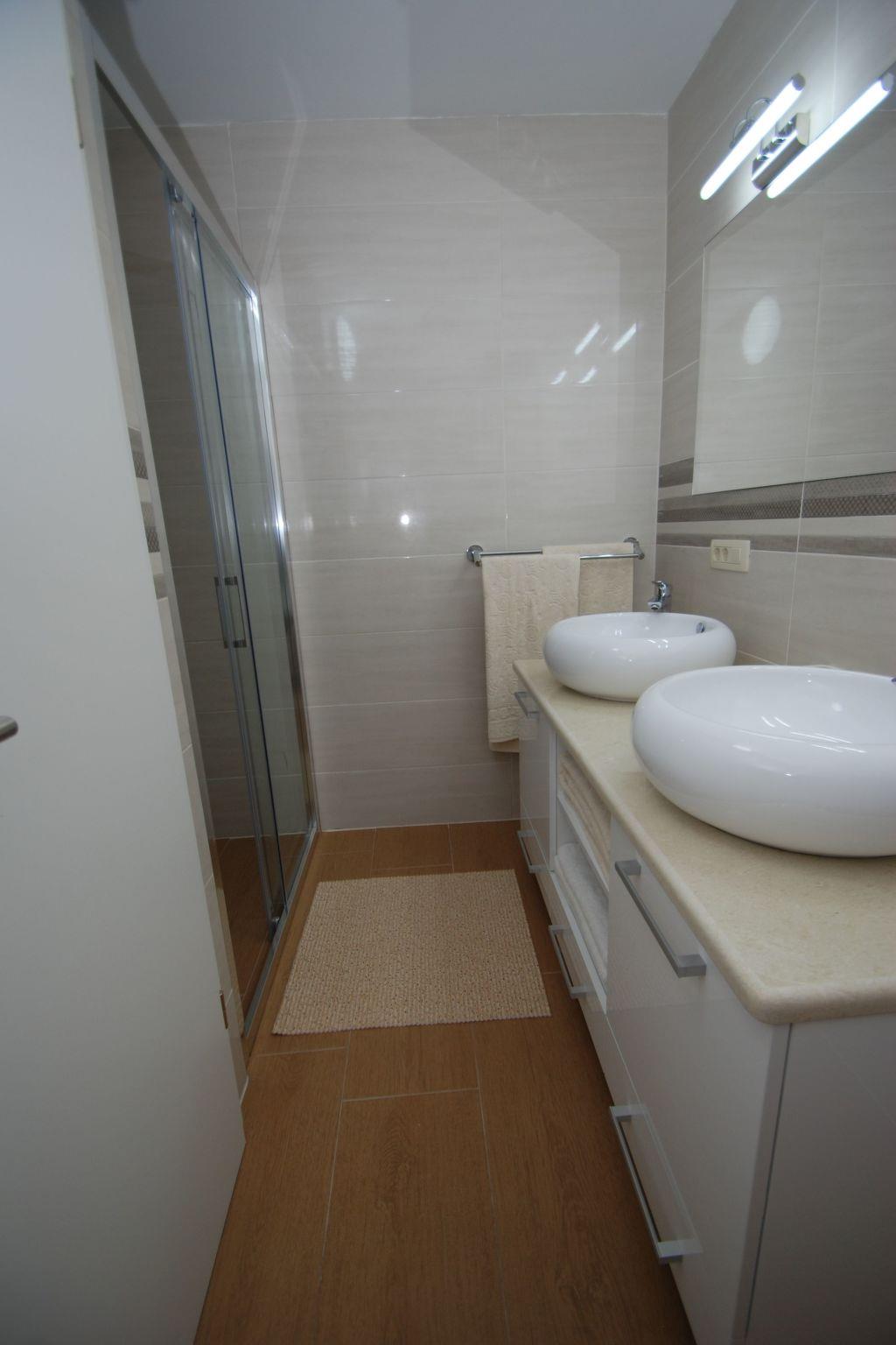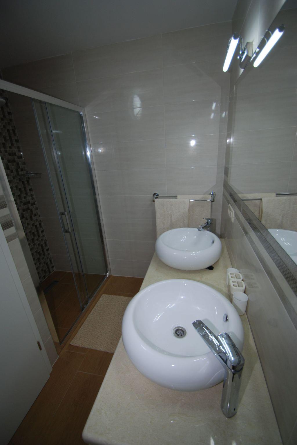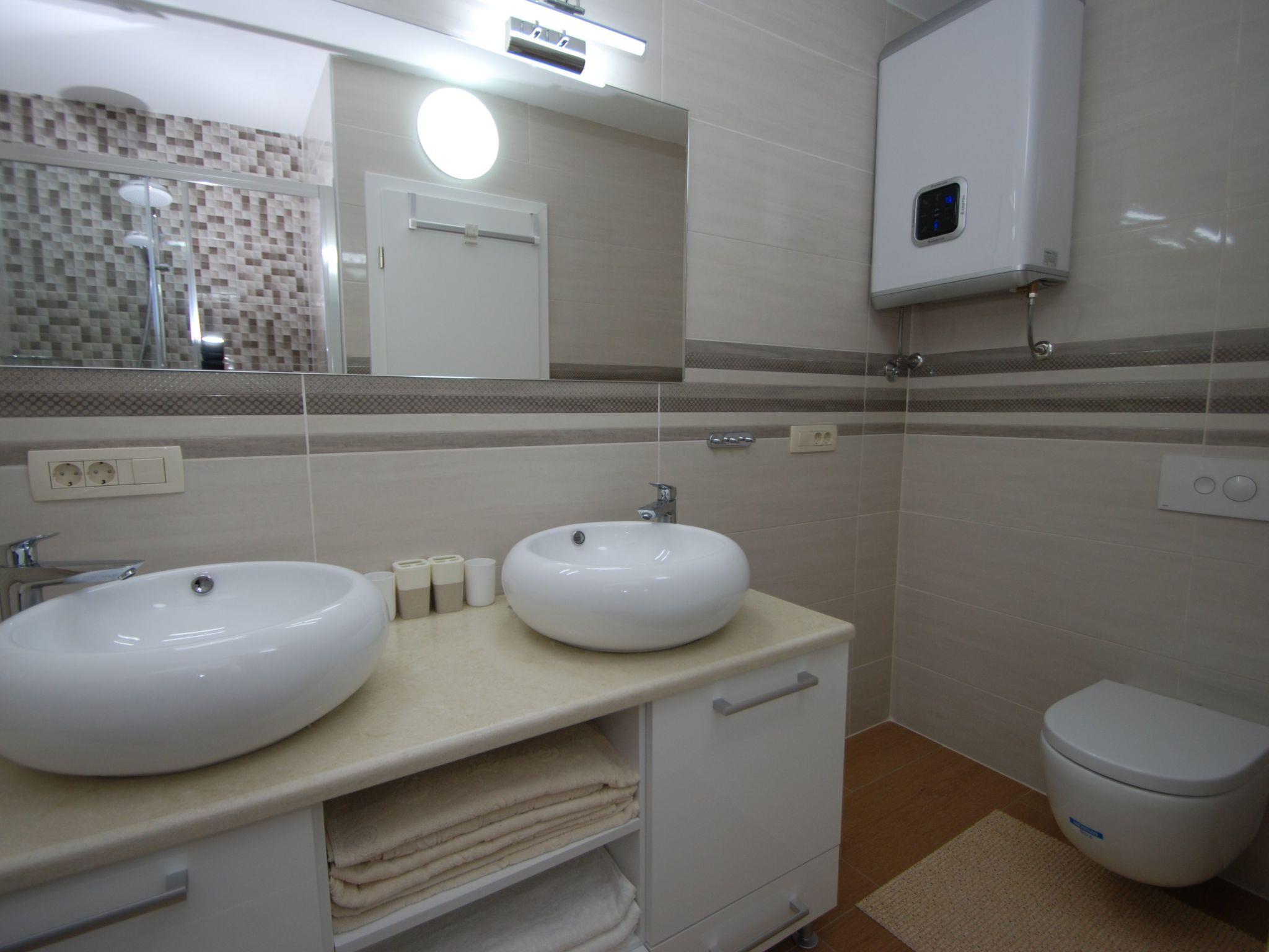 The holiday apartment is on the ground floor of the two-storey family house. It boasts dazzling lighting, exclusive tiles, luxury modern bathrooms and walk-in showers.