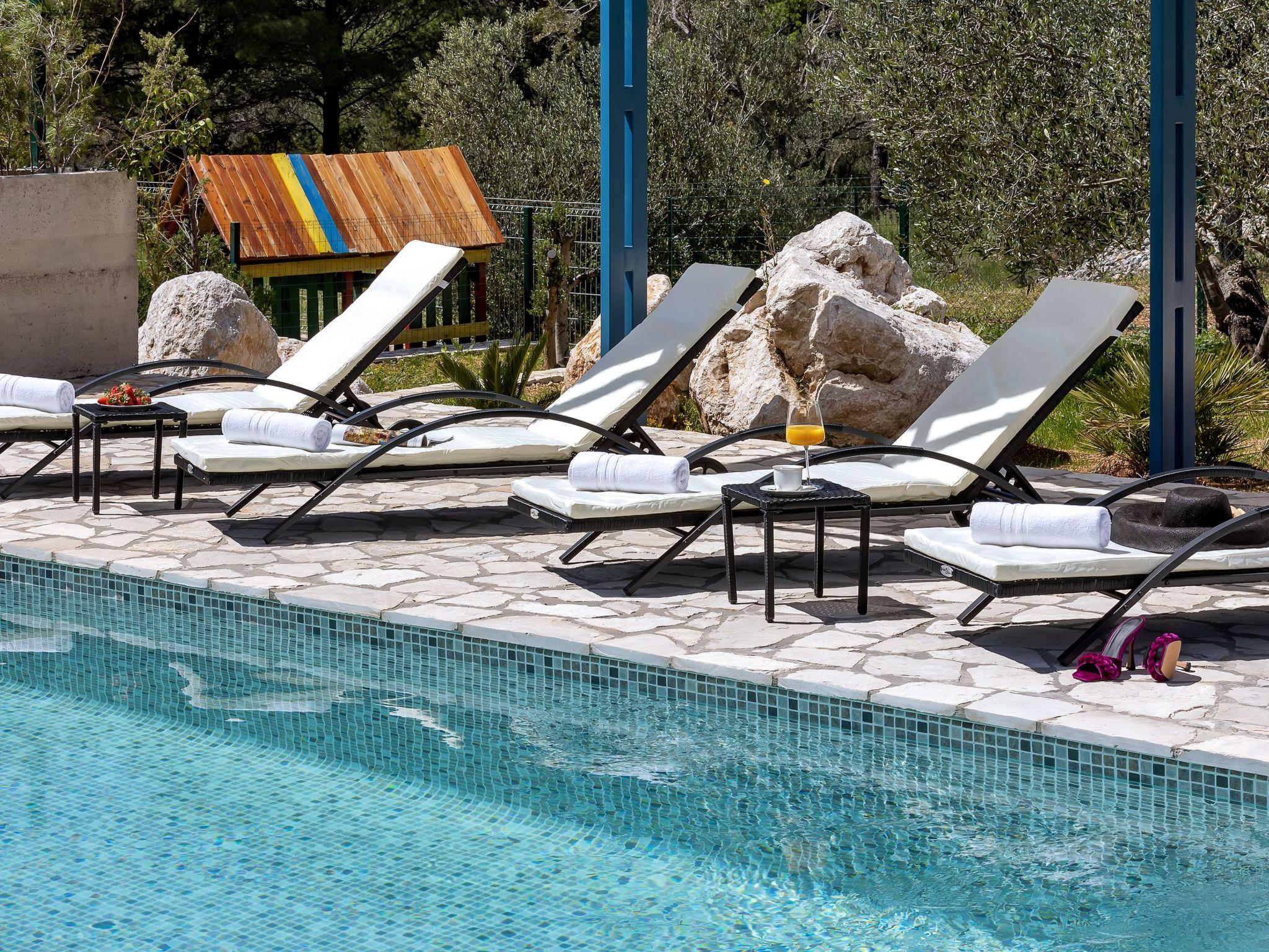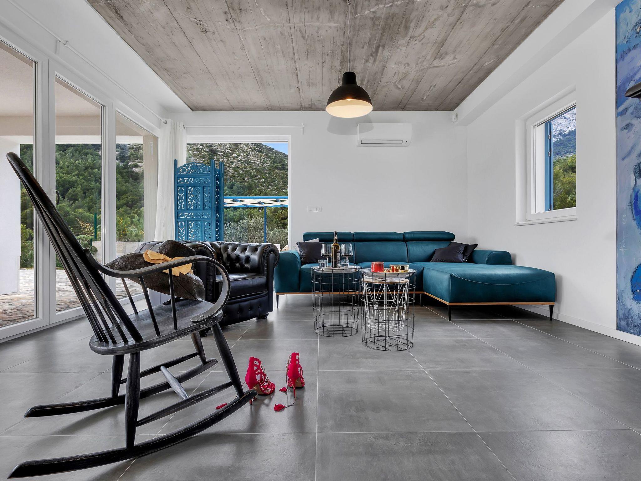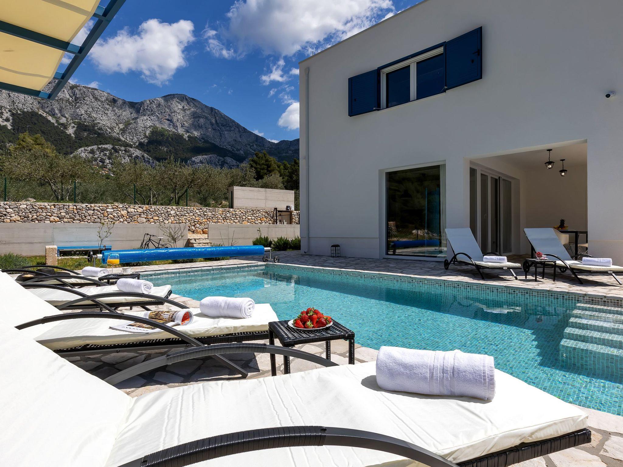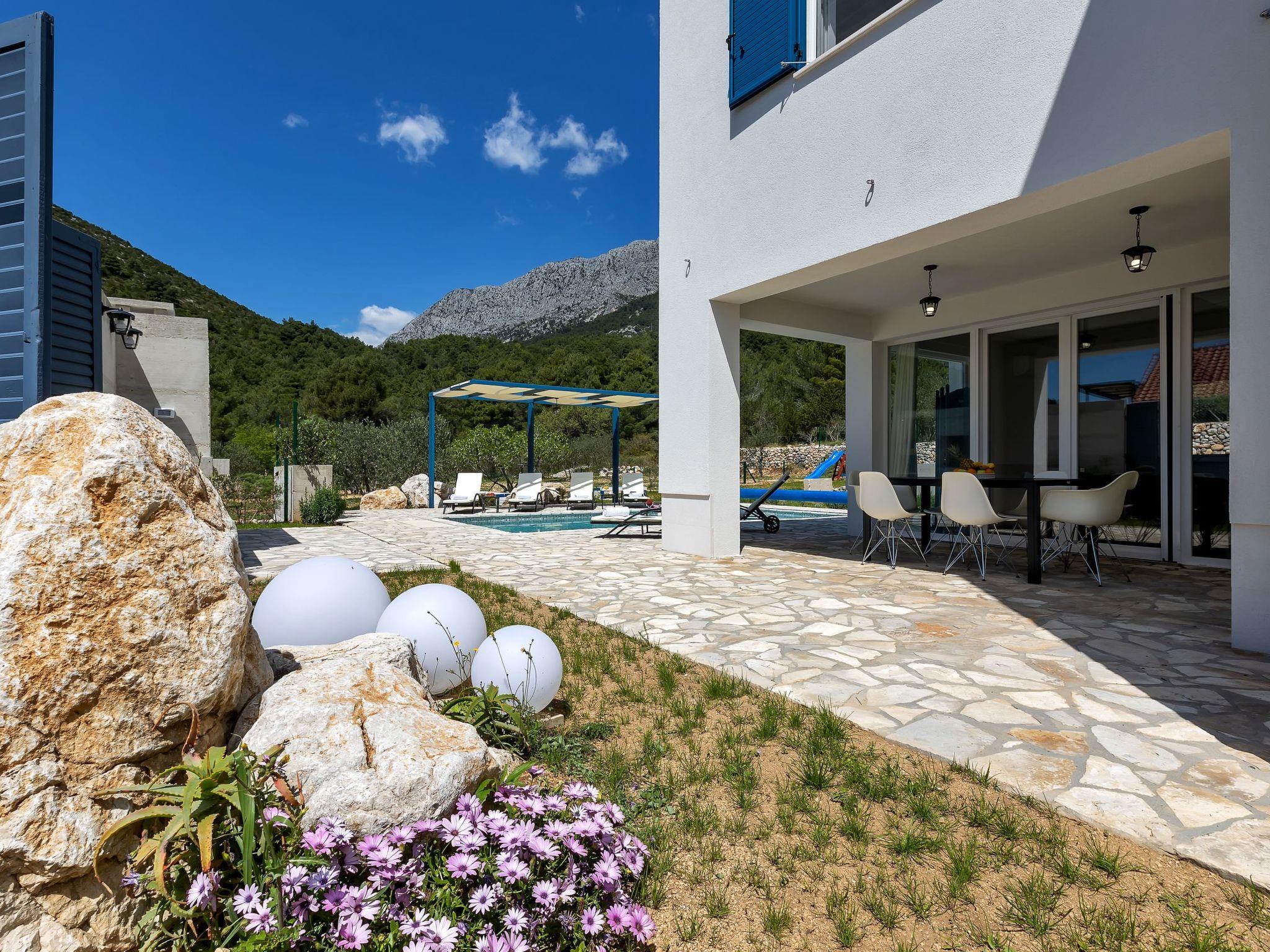 Modern holiday home above the coast in Zaostrog with heated pool, garden and playground in a quiet location. Ideal for families with children.