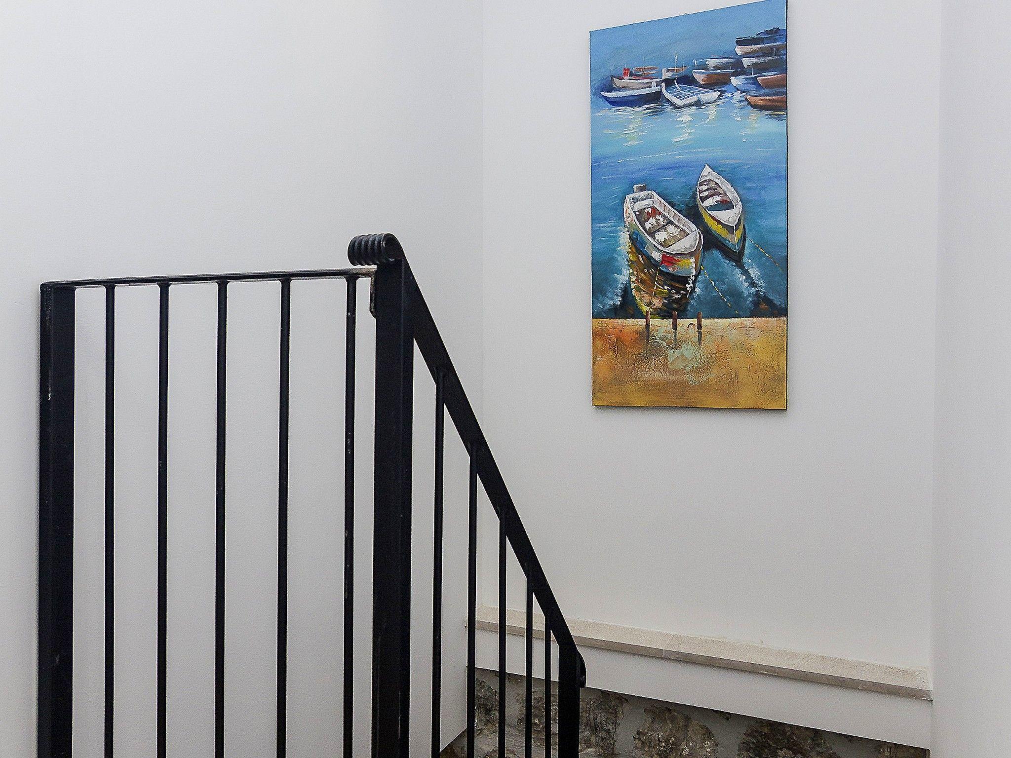 An oasis of relaxation not far from the beach and town centre. The newly renovated stone house has two double bedrooms, each with its own bathroom with shower. On the ground floor there is a chic living room with a sofa, which can also be used as an extra bed for 2 children or one adult, an open-plan kitchen, dining room and fireplace, from where you can access the terrace with heated pool and barbecue area. At the pool with sea view and outdoor shower, sun loungers are available to enjoy the many hours of sunshine. There is also an outdoor kitchen with barbecue area by the pool. The large hackberry trees by the house, some over 200 years old, provide plenty of natural shade in the summer months. The holiday home is the ideal choice for all discerning holidaymakers