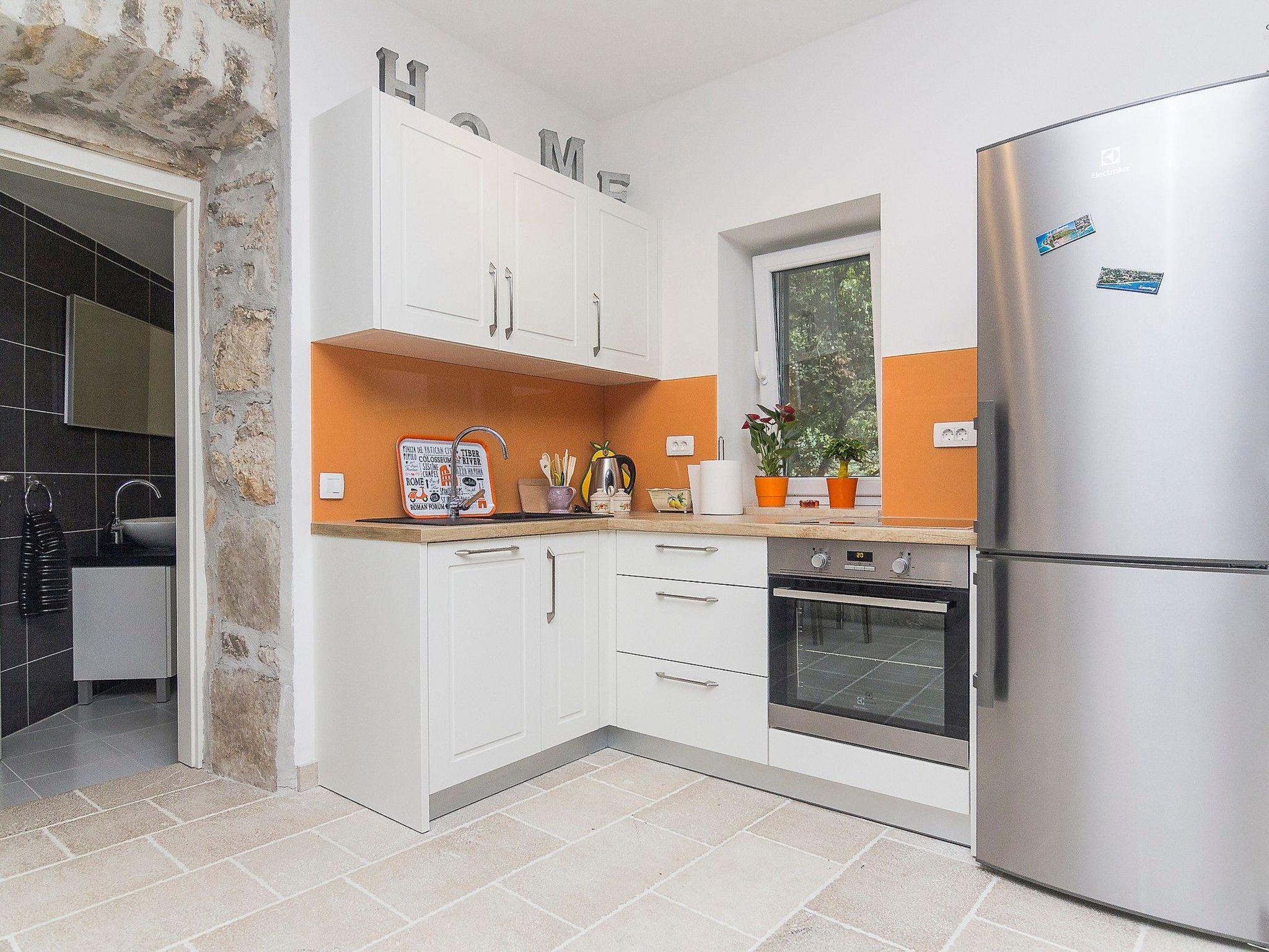 Above the coast, approx. 1.5 km from the beach and the village of Zaostrog, in a quiet location. Good starting point for many excursions