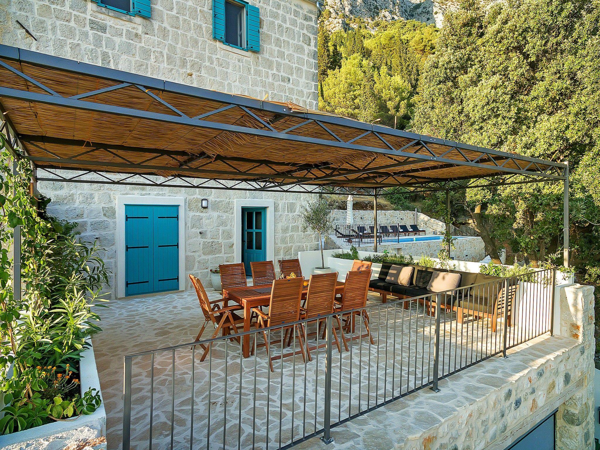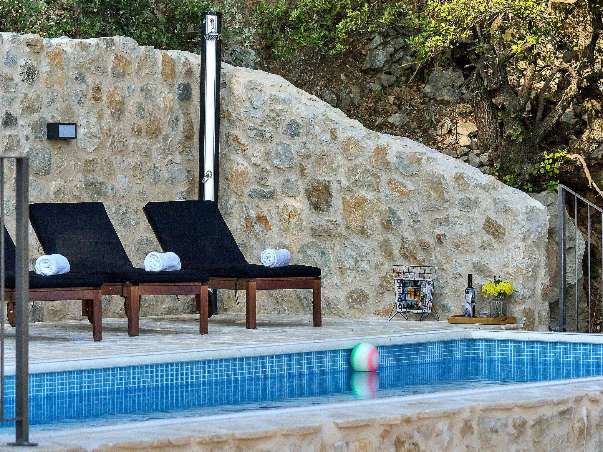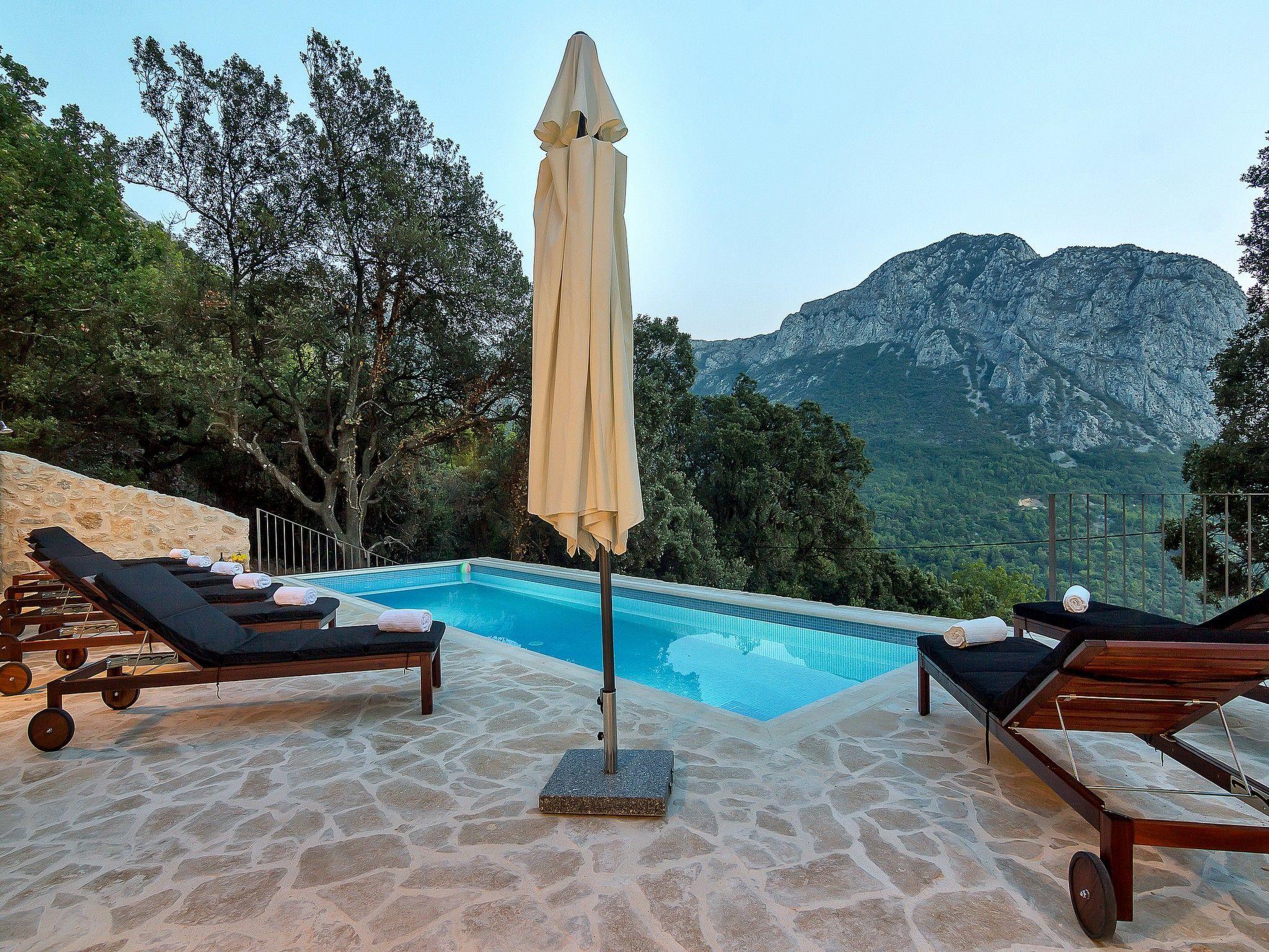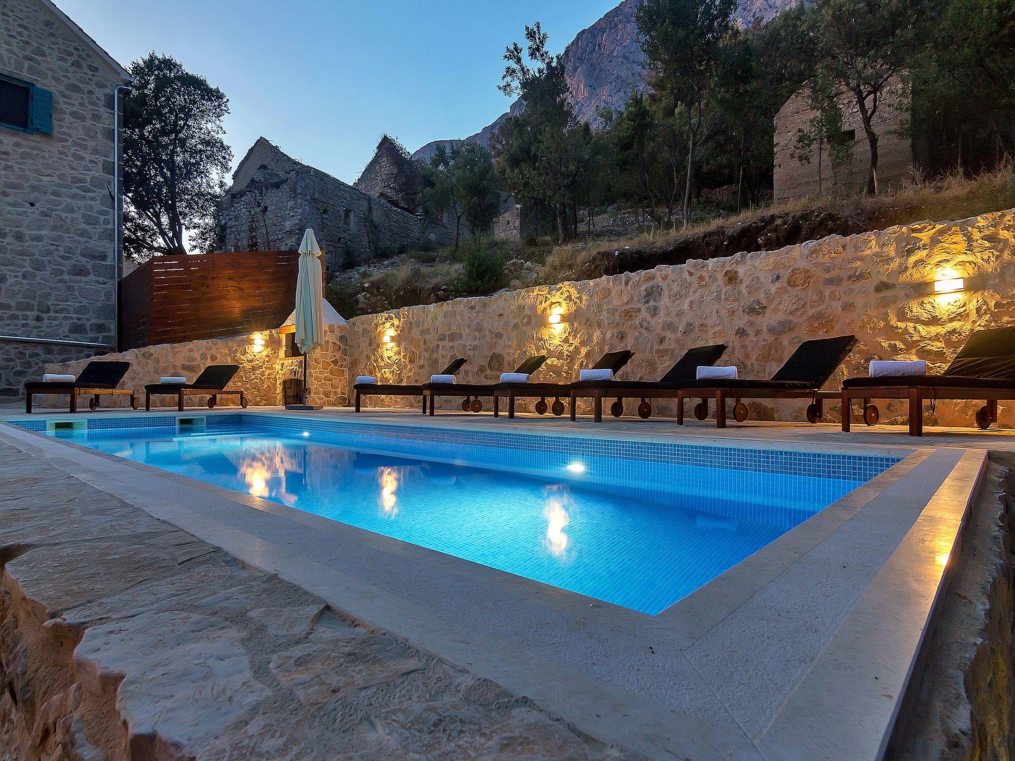 This idyllic 19th century stone house is located in an unspoilt landscape on the Makarska Riviera. The perfect holiday destination for those seeking seclusion and nature, the enchanting hillside location, in a picturesque hamlet typical of Dalmatia, offers magnificent panoramic views of the countryside, sea and islands. The interior, a blend of modern and antique, creates a warm and welcoming impression. The stone house has four double bedrooms and four bathrooms. All rooms are spread over three floors. In addition to the modern kitchen and living area, it also has a lovely terrace with sea views. The charming holiday home also offers a heated swimming pool (9.00x3.00) with sun loungers and a barbecue area. Garage for 2 cars and six bicycles are also available. Table tennis and table football on the terrace by the pool.