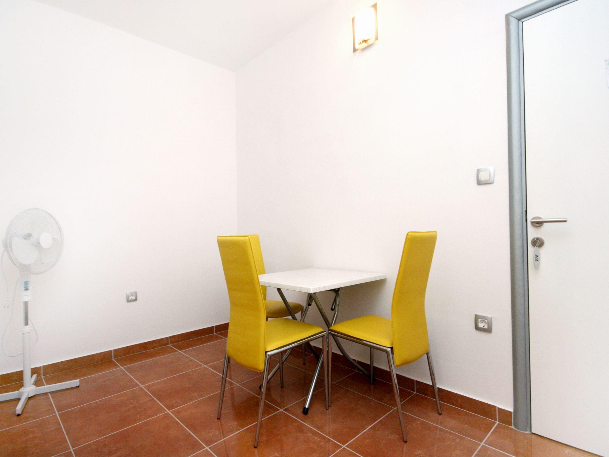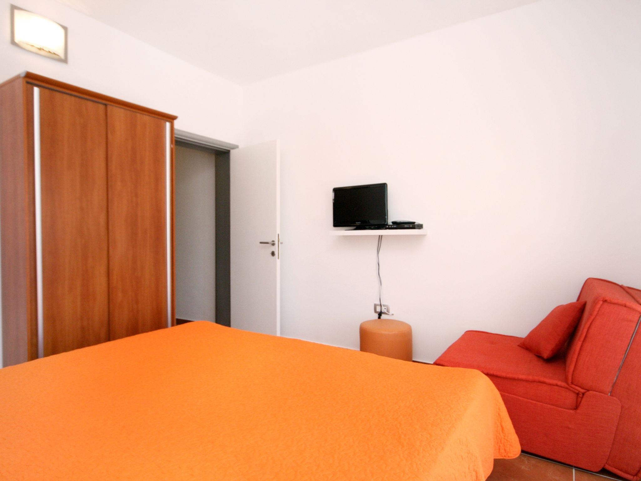 Ferienwohnung bietet Platz für 3 Gäste. Die Betten sind in Schlafzimmern, die es 1 gibt, innerhalb einer Gesamtfläche von 25m2, angeordnet. Die Gäste haben einen eigenen Balkon zur Verfügung, auf der sie in warmen Sommernächten genießen können. Das Apartment bietet Meerblick. IM PREIS INBEGRIFFEN: Kurtaxe, Endreinigung, Parkplatz, Internet, Kinderbett. VERBINDLICHE ZUSÄTZLICHE KOSTEN: Aufzahlung für Kurzaufenthalte (prozentualer Zuschlag pro Nächtigungsanzahl: 30% - 1, 20% - 2, 10% - 3). UNVERBINDLICHE ZUSÄTZLICHE KOSTEN: Klimatisierung (5,00 € pro Nacht). Die Verfügbarkeit zusätzlicher Dienstleistungen in Ihrem reservierten Termin und die Preise derselben (falls nicht aufgeführt) müssen im Voraus überprüft werden. Zusätzliche Dienstleistungen die in der Zahlungsaufforderung nicht aufgeführt sind werden direkt beim Vermieter bezahlt, angenommen der Gast nutzt auch diese. Ermäßigung auf den Grundpreis: Gratistag 14=13 (bei einem Aufenthalt von 14 Tagen oder mehr erhalten Sie einen Gratistag für den Aufenthalt bis 31.12.26).