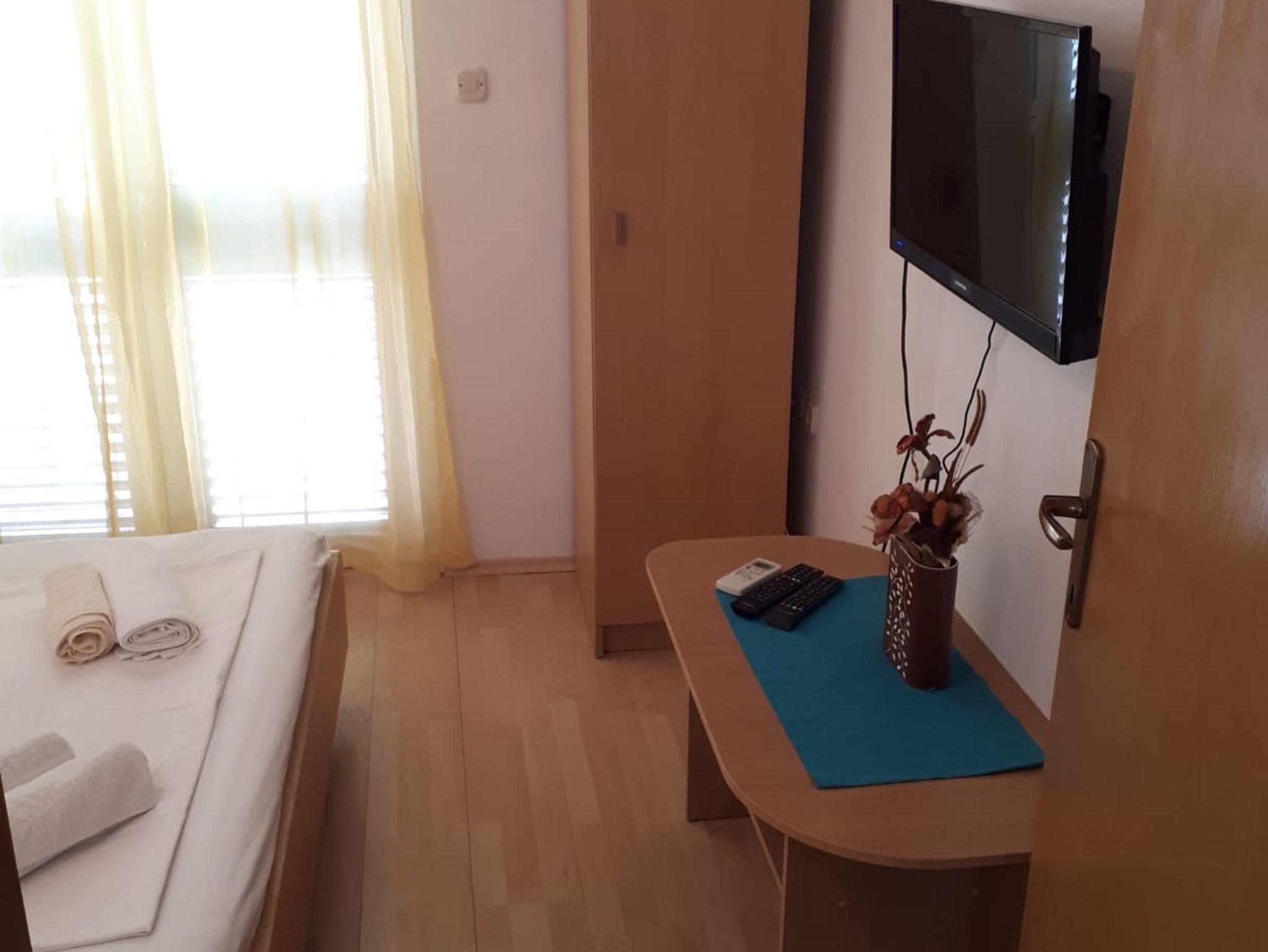 Ferienwohnung bietet Platz für 4 Gäste. Die Betten sind in Schlafzimmern, die es 1 gibt, und in Esszimmer, innerhalb einer Gesamtfläche von 24m2, angeordnet. Die Gäste haben einen eigenen Balkon zur Verfügung, auf der sie in warmen Sommernächten genießen können. In der Unterkunftseinheit besteht die Möglichkeit des Mitbringens von Haustieren gegen Aufpreis. Die reservierte Unterkunftseinheit verfügt über einen gemeinsame Terrasse. IM PREIS INBEGRIFFEN: Kurtaxe, Endreinigung, Klimatisierung, Parkplatz, Internet, Kinderbett, Bügelbrett, Föhn. VERBINDLICHE ZUSÄTZLICHE KOSTEN: Aufzahlung für Kurzaufenthalte (prozentualer Zuschlag pro Nächtigungsanzahl: 30% - 1, 20% - 2, 10% - 3). UNVERBINDLICHE ZUSÄTZLICHE KOSTEN: Haustiere (5,00 € pro Nacht). Die Verfügbarkeit zusätzlicher Dienstleistungen in Ihrem reservierten Termin und die Preise derselben (falls nicht aufgeführt) müssen im Voraus überprüft werden. Zusätzliche Dienstleistungen die in der Zahlungsaufforderung nicht aufgeführt sind werden direkt beim Vermieter bezahlt, angenommen der Gast nutzt auch diese. Ermäßigung auf den Grundpreis: Gratistag 14=13 (bei einem Aufenthalt von 14 Tagen oder mehr erhalten Sie einen Gratistag für den Aufenthalt bis 31.12.26).