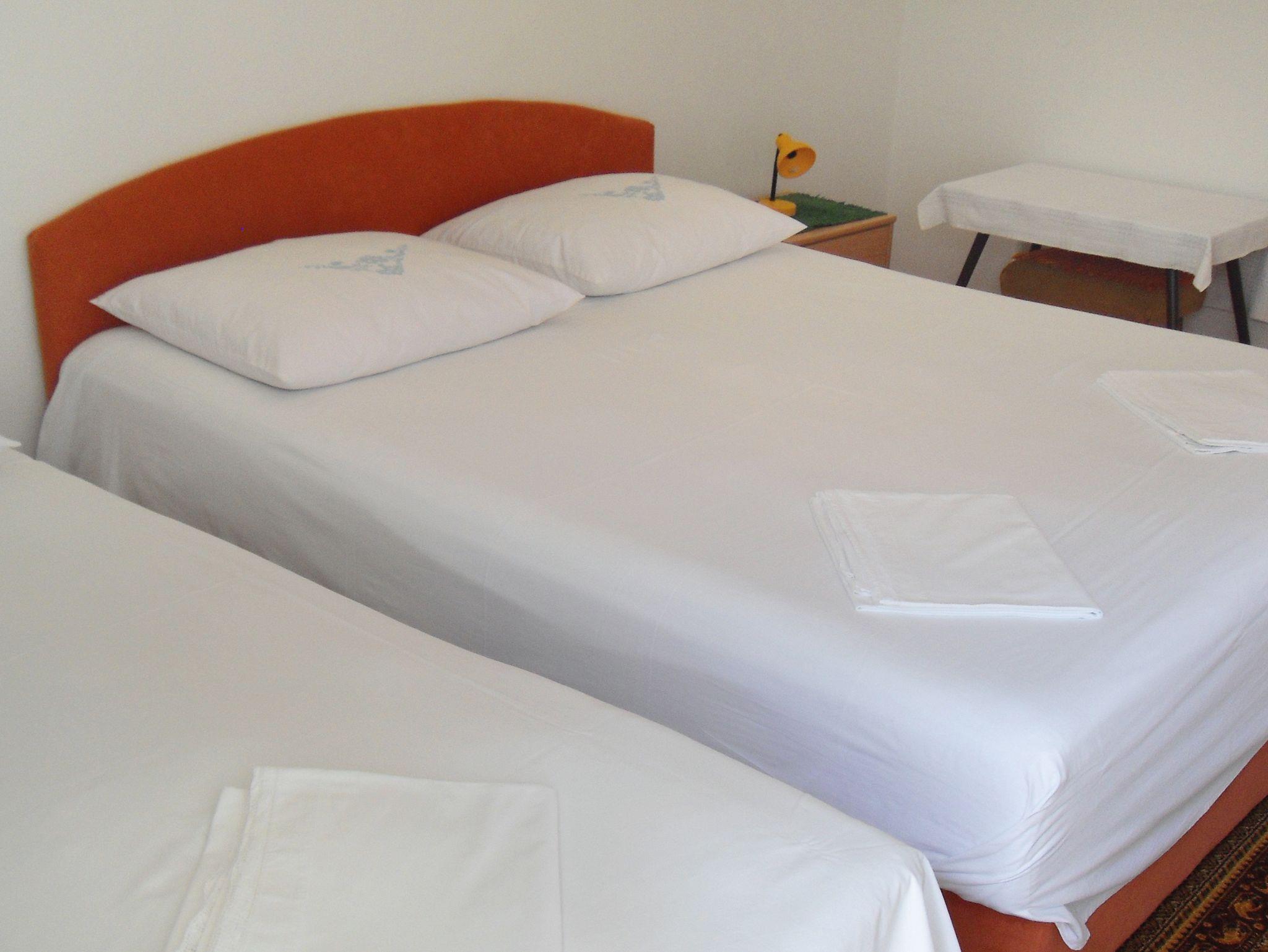 Zimmer bietet Platz für 3 Gäste. Die Betten sind in Schlafzimmern, die es 1 gibt, innerhalb einer Gesamtfläche von 15m2, angeordnet. Die Nutzung einer gemeinsamen Küche ist möglich. Die Gäste haben einen eigenen Balkon zur Verfügung, auf der sie in warmen Sommernächten genießen können. Es ist erlaubt, Speisen auf dem Gemeinschafts-Grill vorzubereiten. Die reservierte Unterkunftseinheit ist ein Zimmer mit eigenem Badezimmer mit der Möglichkeit der Nutzung einer Küche ohne Zuzahlung. Unterkunftseinheit hat Räume, die von dem Rest der Einheit abgetrennt werden. IM PREIS INBEGRIFFEN: Kurtaxe, Endreinigung, gemeinsame Küche, Parkplatz, Internet, Kinderbett, Bügeleisen, Bügelbrett, Föhn. VERBINDLICHE ZUSÄTZLICHE KOSTEN: Aufzahlung für Kurzaufenthalte (prozentualer Zuschlag pro Nächtigungsanzahl: 30% - 1, 20% - 2, 10% - 3). UNVERBINDLICHE ZUSÄTZLICHE KOSTEN: Klimatisierung (5,00 € pro Nacht). Die Verfügbarkeit zusätzlicher Dienstleistungen in Ihrem reservierten Termin und die Preise derselben (falls nicht aufgeführt) müssen im Voraus überprüft werden. Zusätzliche Dienstleistungen die in der Zahlungsaufforderung nicht aufgeführt sind werden direkt beim Vermieter bezahlt, angenommen der Gast nutzt auch diese.