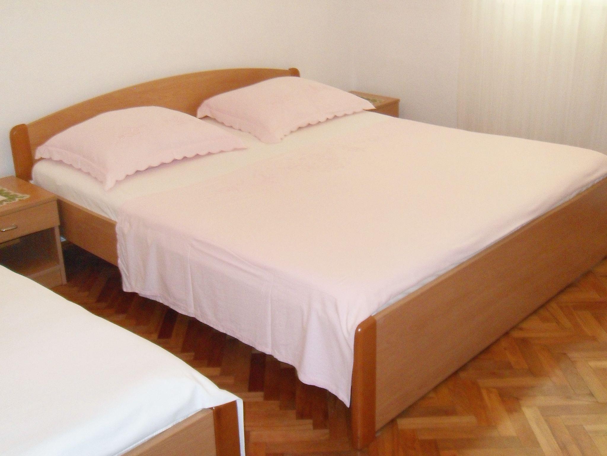 Ferienwohnung bietet Platz für 4 Gäste. Die Betten sind in Schlafzimmern, die es 1 gibt, und in Esszimmer, innerhalb einer Gesamtfläche von 30m2, angeordnet. Es ist erlaubt, Speisen auf dem Gemeinschafts-Grill vorzubereiten. Die reservierte Unterkunftseinheit hat keinen Balkon und keine Terrasse. IM PREIS INBEGRIFFEN: Kurtaxe, Endreinigung, Parkplatz, Internet, Kinderbett, Bügeleisen, Bügelbrett, Föhn. VERBINDLICHE ZUSÄTZLICHE KOSTEN: Aufzahlung für Kurzaufenthalte (prozentualer Zuschlag pro Nächtigungsanzahl: 30% - 1, 20% - 2, 10% - 3). UNVERBINDLICHE ZUSÄTZLICHE KOSTEN: Klimatisierung (5,00 € pro Nacht). Die Verfügbarkeit zusätzlicher Dienstleistungen in Ihrem reservierten Termin und die Preise derselben (falls nicht aufgeführt) müssen im Voraus überprüft werden. Zusätzliche Dienstleistungen die in der Zahlungsaufforderung nicht aufgeführt sind werden direkt beim Vermieter bezahlt, angenommen der Gast nutzt auch diese.