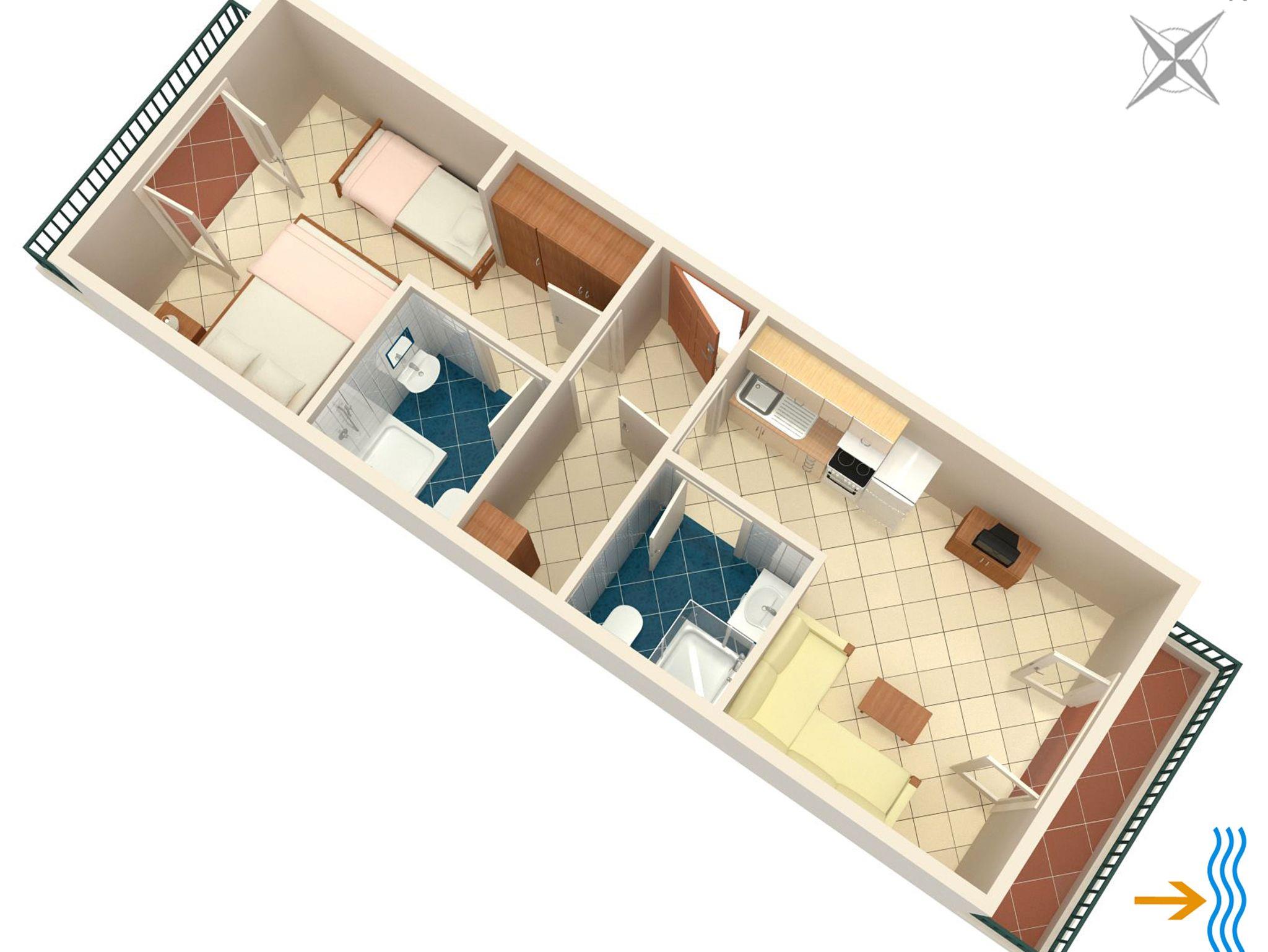 Ferienwohnung bietet Platz für 5 Gäste. Die Betten sind in Schlafzimmern, die es 1 gibt, und in Wohnzimmer, innerhalb einer Gesamtfläche von 36m2, angeordnet. Die Gäste haben eine eigene Terrasse zur Verfügung, auf der sie in warmen Sommernächten genießen können. Das Apartment bietet Meerblick. Es ist erlaubt, Speisen auf dem Gemeinschafts-Grill vorzubereiten. In der Unterkunftseinheit besteht die Möglichkeit des Mitbringens von Haustieren gegen Aufpreis. IM PREIS INBEGRIFFEN: Kurtaxe, Endreinigung, Klimatisierung, Parkplatz, Internet, Bootsanlegeplatz, Kinderbett. UNVERBINDLICHE ZUSÄTZLICHE KOSTEN: Haustiere (13,00 € pro Nacht). Die Verfügbarkeit zusätzlicher Dienstleistungen in Ihrem reservierten Termin und die Preise derselben (falls nicht aufgeführt) müssen im Voraus überprüft werden. Zusätzliche Dienstleistungen die in der Zahlungsaufforderung nicht aufgeführt sind werden direkt beim Vermieter bezahlt, angenommen der Gast nutzt auch diese.