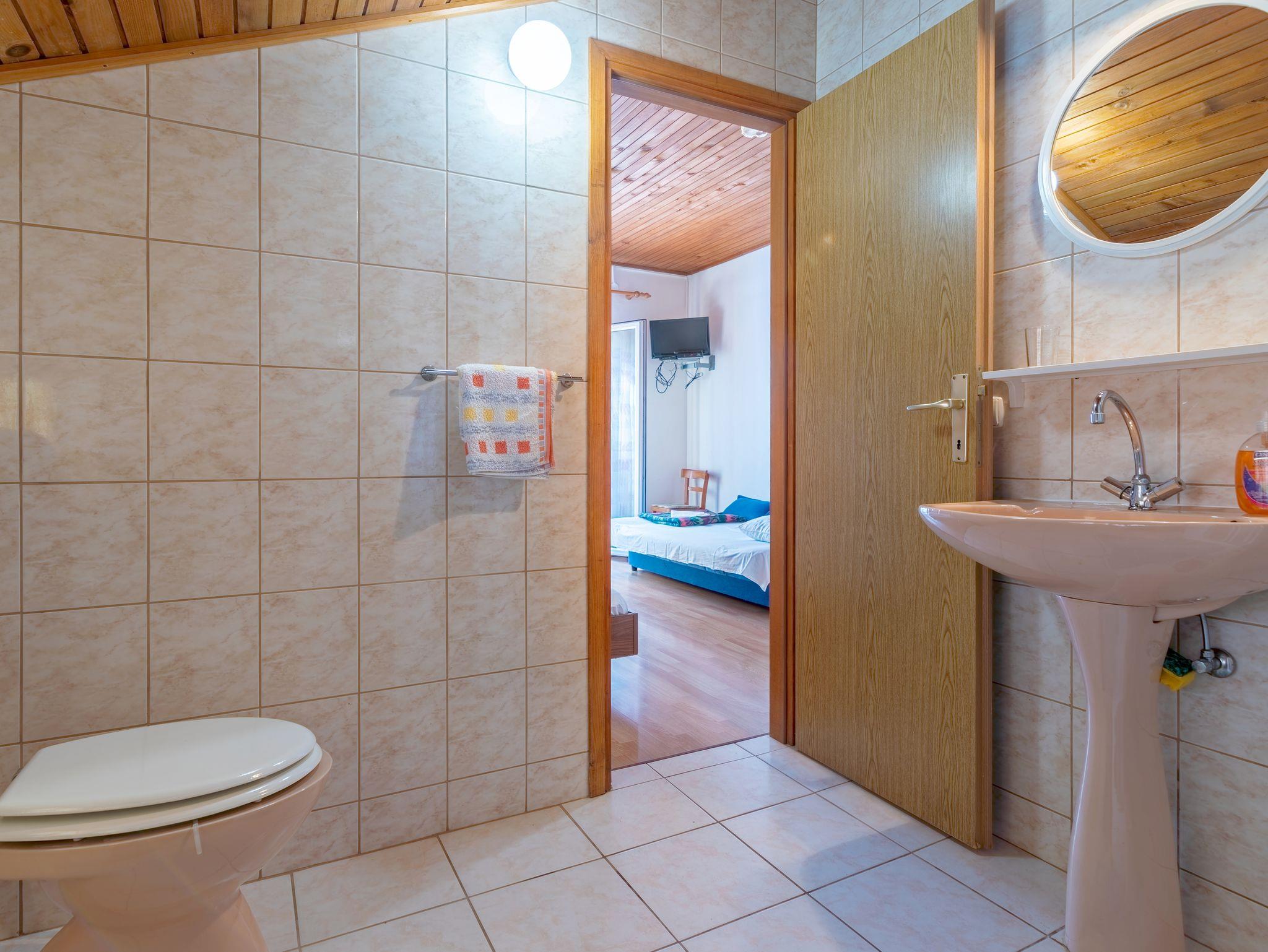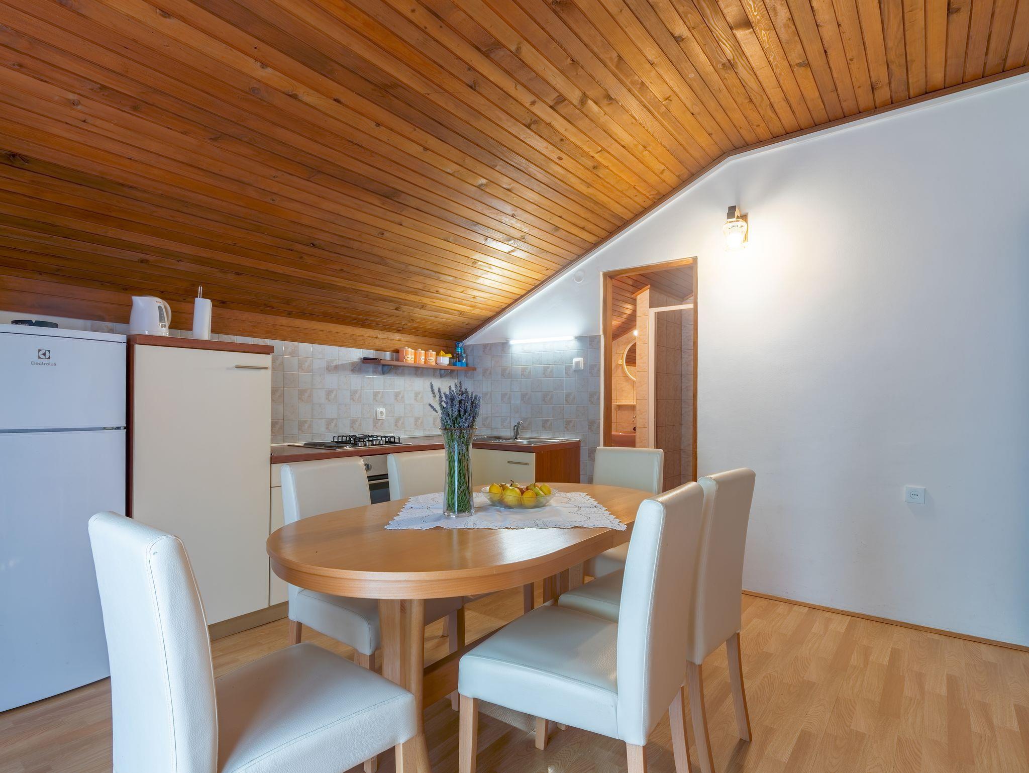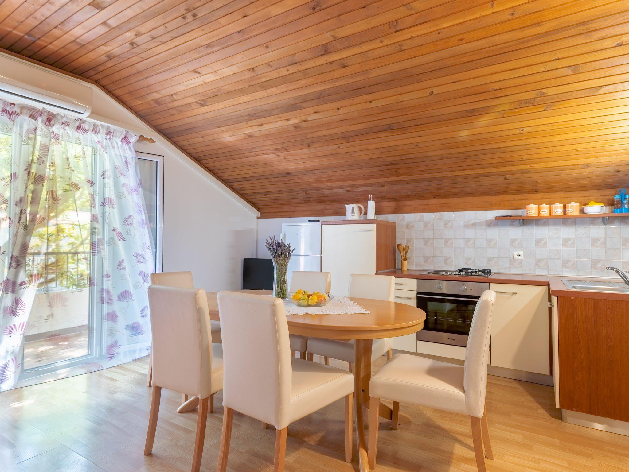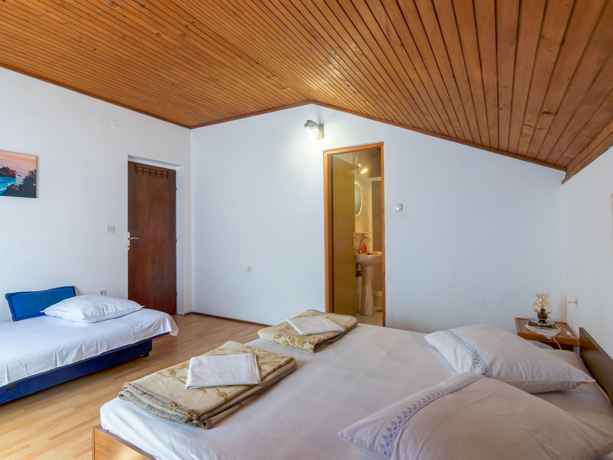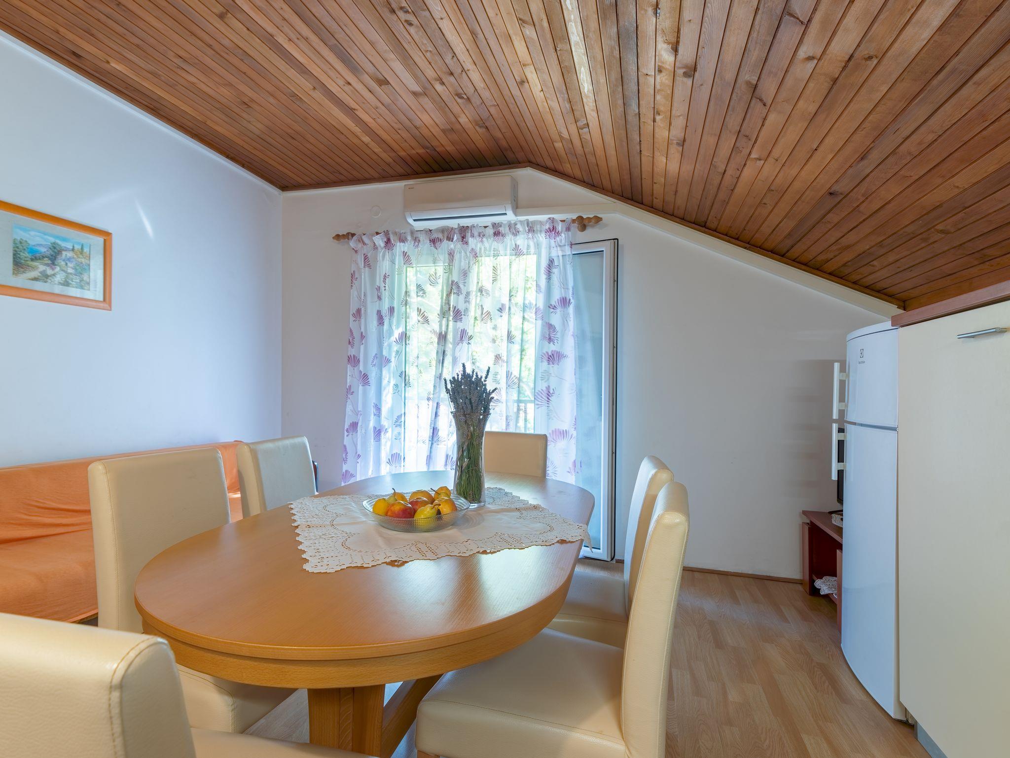 Ferienwohnung bietet Platz für 5 Gäste. Die Betten sind in Schlafzimmern, die es 1 gibt, und in Wohnzimmer, innerhalb einer Gesamtfläche von 47m2, angeordnet. Die Gäste haben einen eigenen Balkon zur Verfügung, auf der sie in warmen Sommernächten genießen können. Das Apartment bietet Meerblick. Es ist erlaubt, Speisen auf dem Gemeinschafts-Grill vorzubereiten. IM PREIS INBEGRIFFEN: Kurtaxe, Endreinigung, Klimatisierung, Parkplatz, Internet, Wäschewaschen, Föhn. VERBINDLICHE ZUSÄTZLICHE KOSTEN: Aufzahlung für Kurzaufenthalte (prozentualer Zuschlag pro Nächtigungsanzahl: 30% - 1, 20% - 2, 10% - 3). Die Verfügbarkeit zusätzlicher Dienstleistungen in Ihrem reservierten Termin und die Preise derselben (falls nicht aufgeführt) müssen im Voraus überprüft werden. Zusätzliche Dienstleistungen die in der Zahlungsaufforderung nicht aufgeführt sind werden direkt beim Vermieter bezahlt, angenommen der Gast nutzt auch diese.