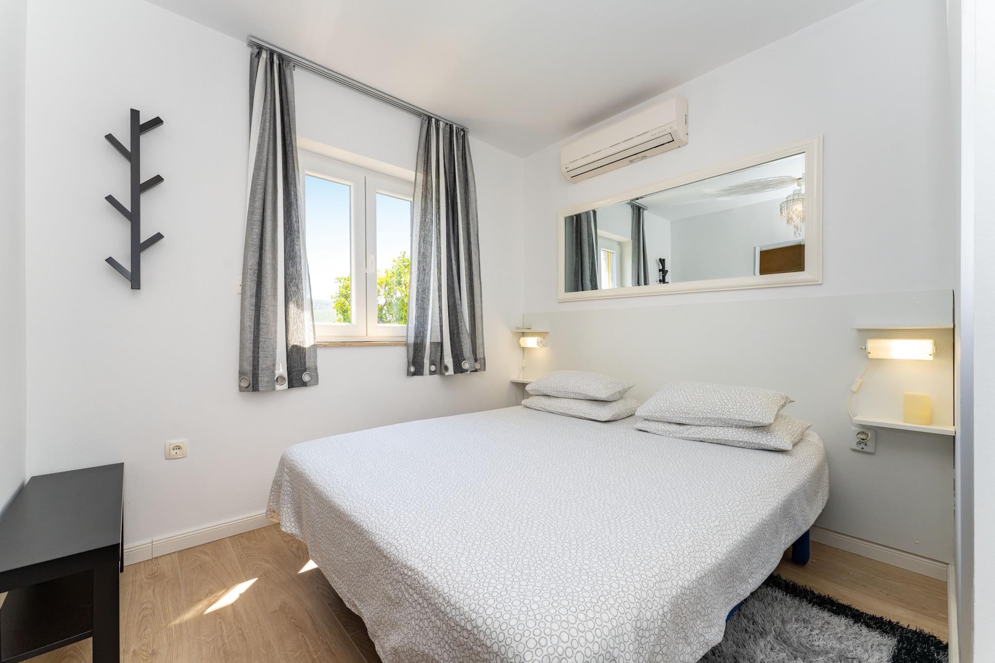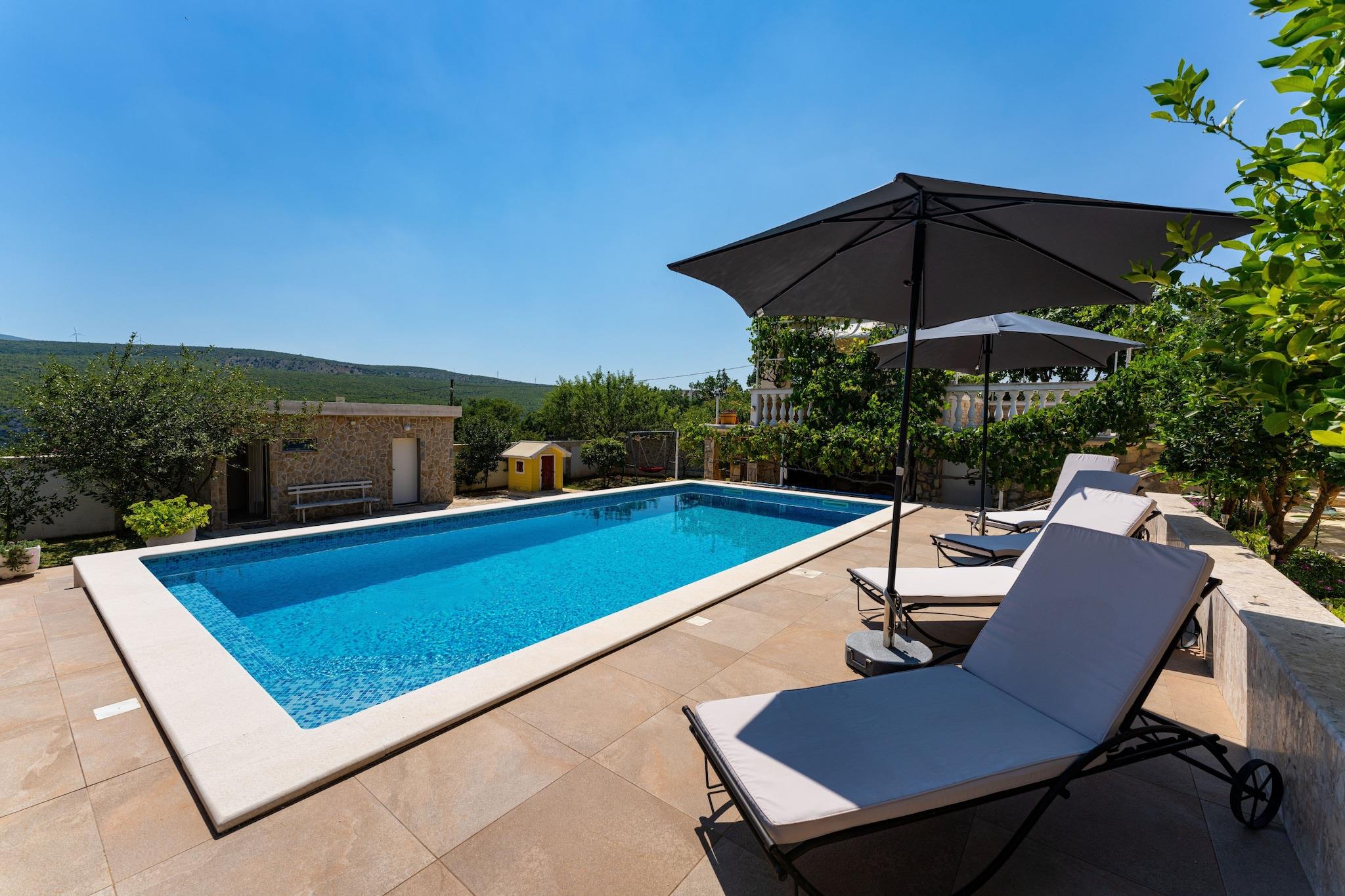 Tag til det fredelige landskab i Zaton Obrovacki og nyd et afslappende ophold i denne charmerende villa med privat pool og fantastisk udsigt over bjergene. Omgivet af en rummelig grund på 2000 m² tilbyder denne fritliggende feriebolig fuldstændig privatliv, hvilket er ideelt for familier eller venner, der søger en fredelig ferie, men samtidig tæt på kysten, der kun ligger 12 km væk. Det smukt indrettede interiør omfatter en lys stue med spiseplads, der åbner direkte ud til terrassen, et fuldt udstyret køkken, tre komfortable soveværelser og to moderne badeværelser. Udenfor er der en privat pool med hydromassage, liggestole og udendørs bruser. Den store overdækkede terrasse har et hyggeligt opholdsområde og spiseplads med grill og pejs, der er perfekt til lange sommeraftener under stjernerne. Kun 2,5 km væk ligger byen Obrovac, der byder på butikker, restauranter og nødvendige tjenester. Området byder på mange muligheder for udendørsaktiviteter, fra rafting og cykling til udflugter til nærliggende nationalparker som Paklenica, Krka og Plitvicka Jezera. Uanset om du ønsker at slappe af ved poolen eller udforske Kroatiens naturlige skønhed, tilbyder denne villa det bedste fra begge verdener.
