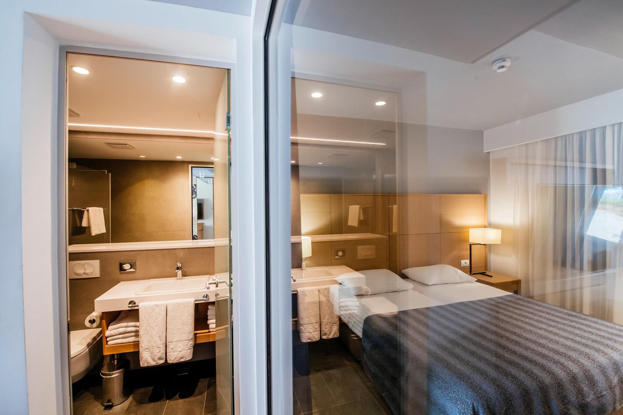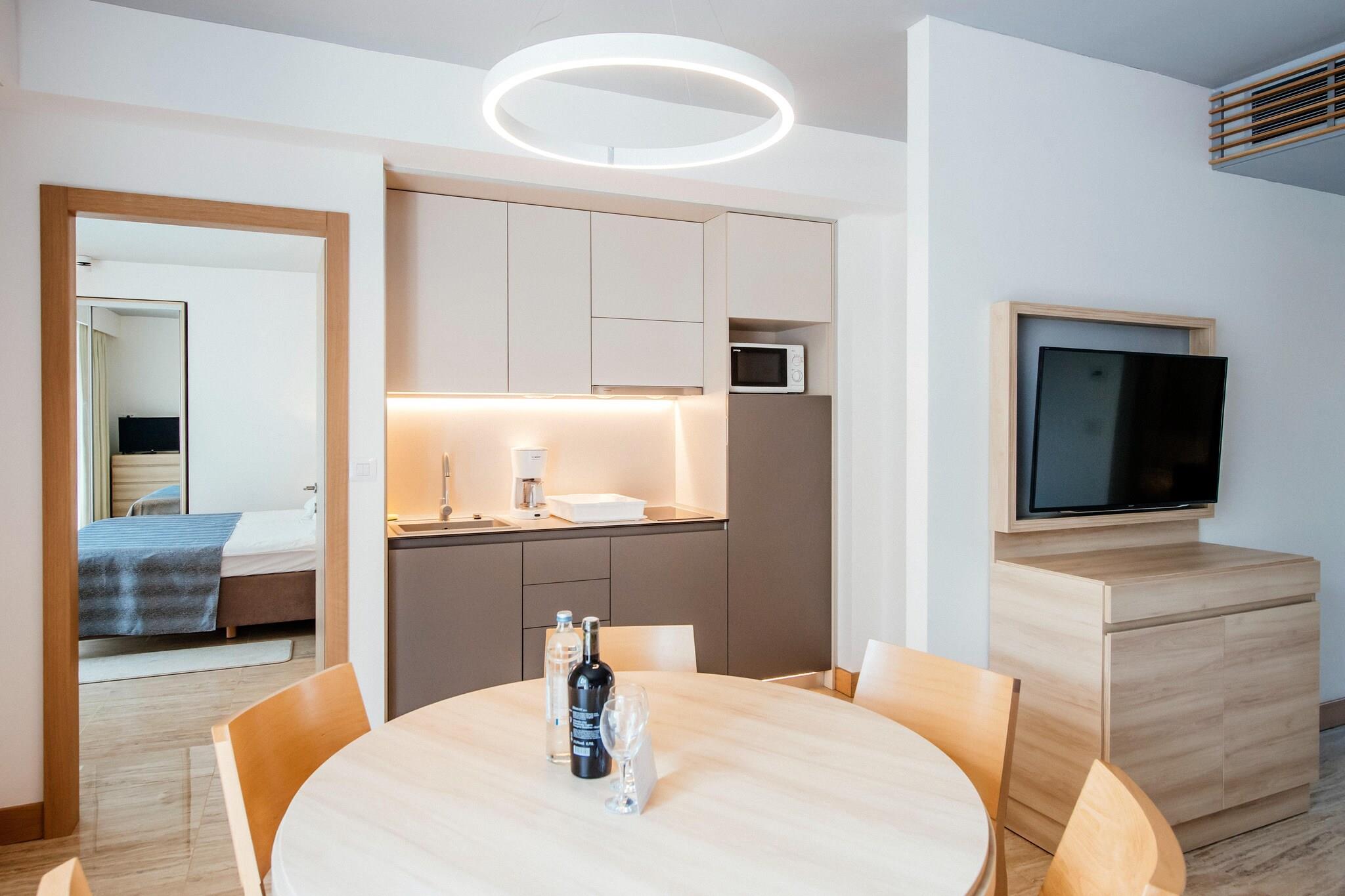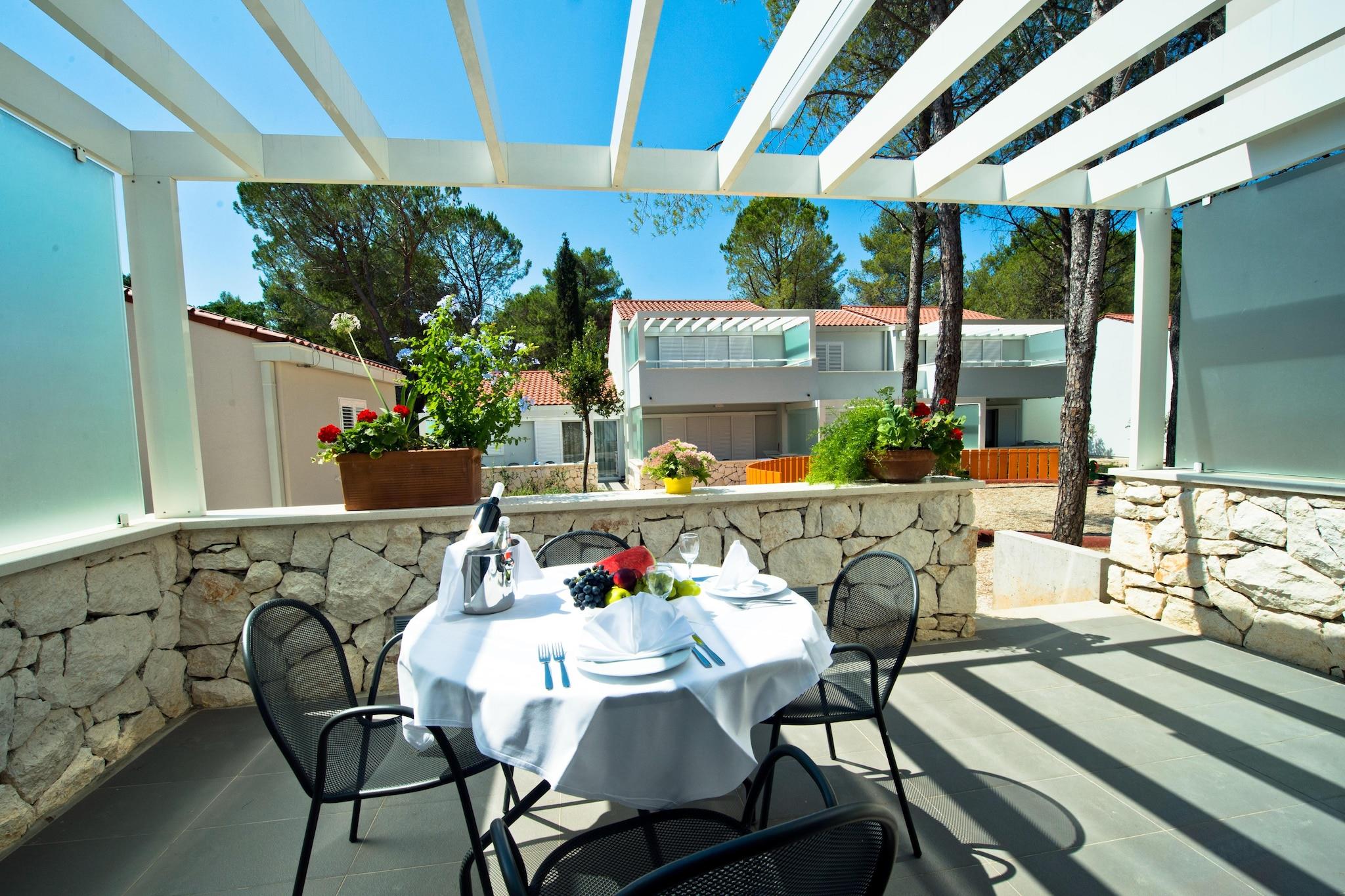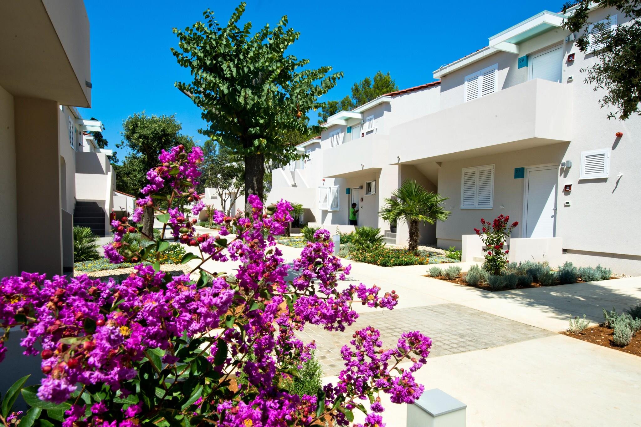 4-stjernede lejligheder i et familievenligt feriekompleks på en lang, beskyttet bugt nær byerne Nin og Zaton, på cirka 100 hektar jord omgivet af fyrretræer. Den cirka 2 km lange, let skrånende strand med hovedsagelig sandet havbund er ideel for børn og ikke-svømmere. Komplekset består af 596 lejligheder (3* lejligheder kan reserveres under CDN02044), fordelt på to-etagers bygninger og en campingplads med 320 mobile homes (kan reserveres under CDN02045). Fra sommeren 2017 får komplekset et nyt svømmebassinområde med i alt 7 bassiner, som strækker sig over 2.100 kvadratmeter. En adgangsvej (bevogtet adgang) med flere store parkeringspladser i nærheden af boligerne fører til komplekset. Endvidere er hele lejlighedsarealet bilfrit. De fleste faciliteter er placeret på Kalelarga, feriekompleksets gågade, som fører et lykkeligt liv fra morgen til aften med mennesker fra hele verden. Ud over disse faciliteter har anlægget også et gaspåfyldningssystem, frugt- og grøntsagsstande, konditori, isbar og en airconditioneret À; la carte restaurant med stor terrasse på stranden. Underholdningscentret MORE med dansemusik ligger også direkte på stranden, og du kan nyde et alsidigt underholdningsprogram og friluftskoncerter i amfiteatret. Highlights included: Usage based energy costs, tourist tax, registration fee, bedlinen, towels, WLAN, Parking. Activities nearby: Free of charge: jogging path, children´s animation in the mini- (3 - 6), maxi- (7 - 10) and teen club (11 to 15 years), swimming school. For a fee: adventure golf, mini golf, parasailing, diving school, fitness room, riding center. The tennis center of the Zaton Holiday Resort has a total of 12 clay courts, four of which are floodlit. There is also a tennis school for interested beginners. On the beach rental of sun layers and parasols. Massages. Ikke egnet til personer med nedsat mobilitet. Catering: Breakfast and half board can be booked on site. Buffet style self service restaurant, children discounts.