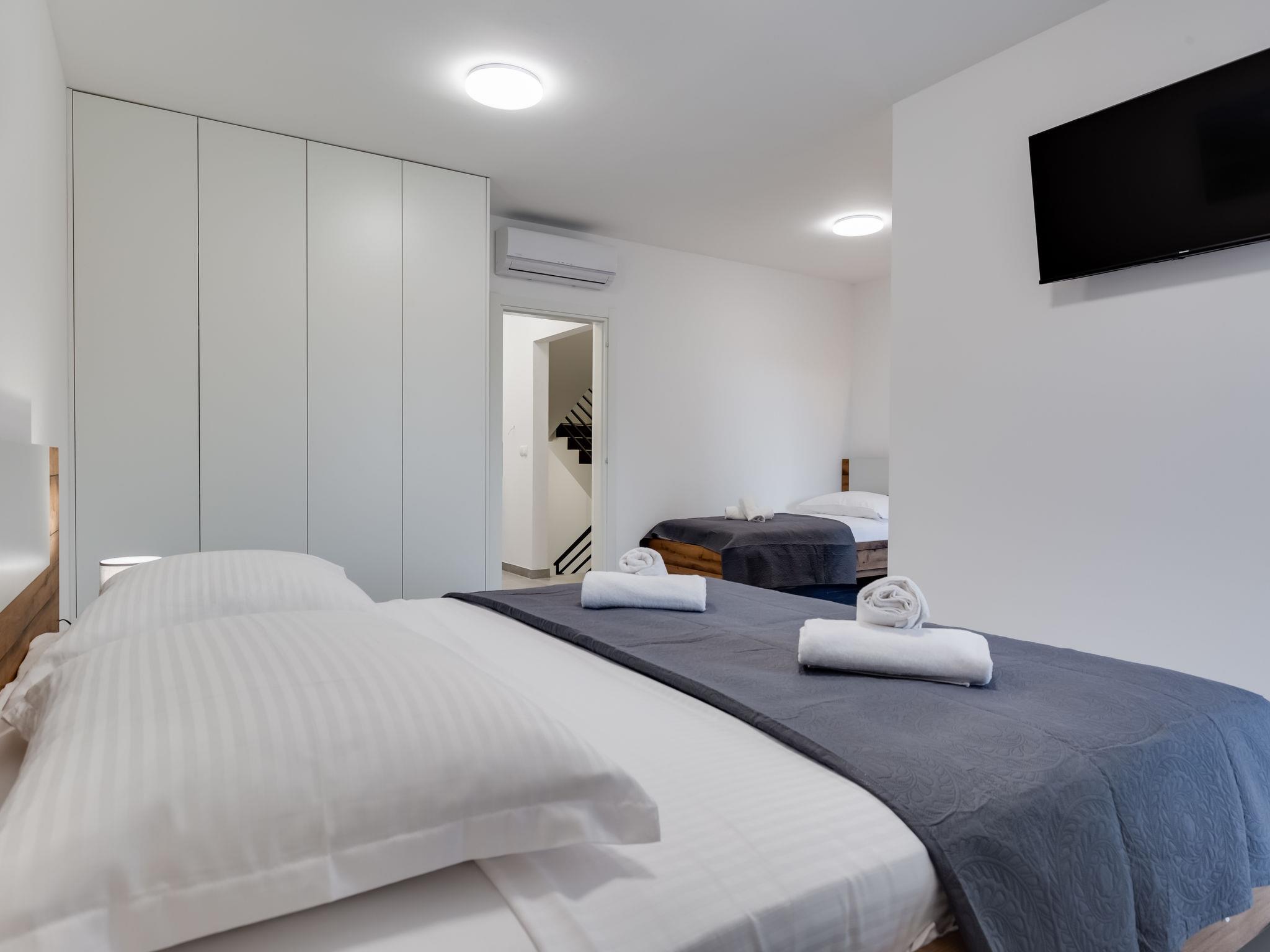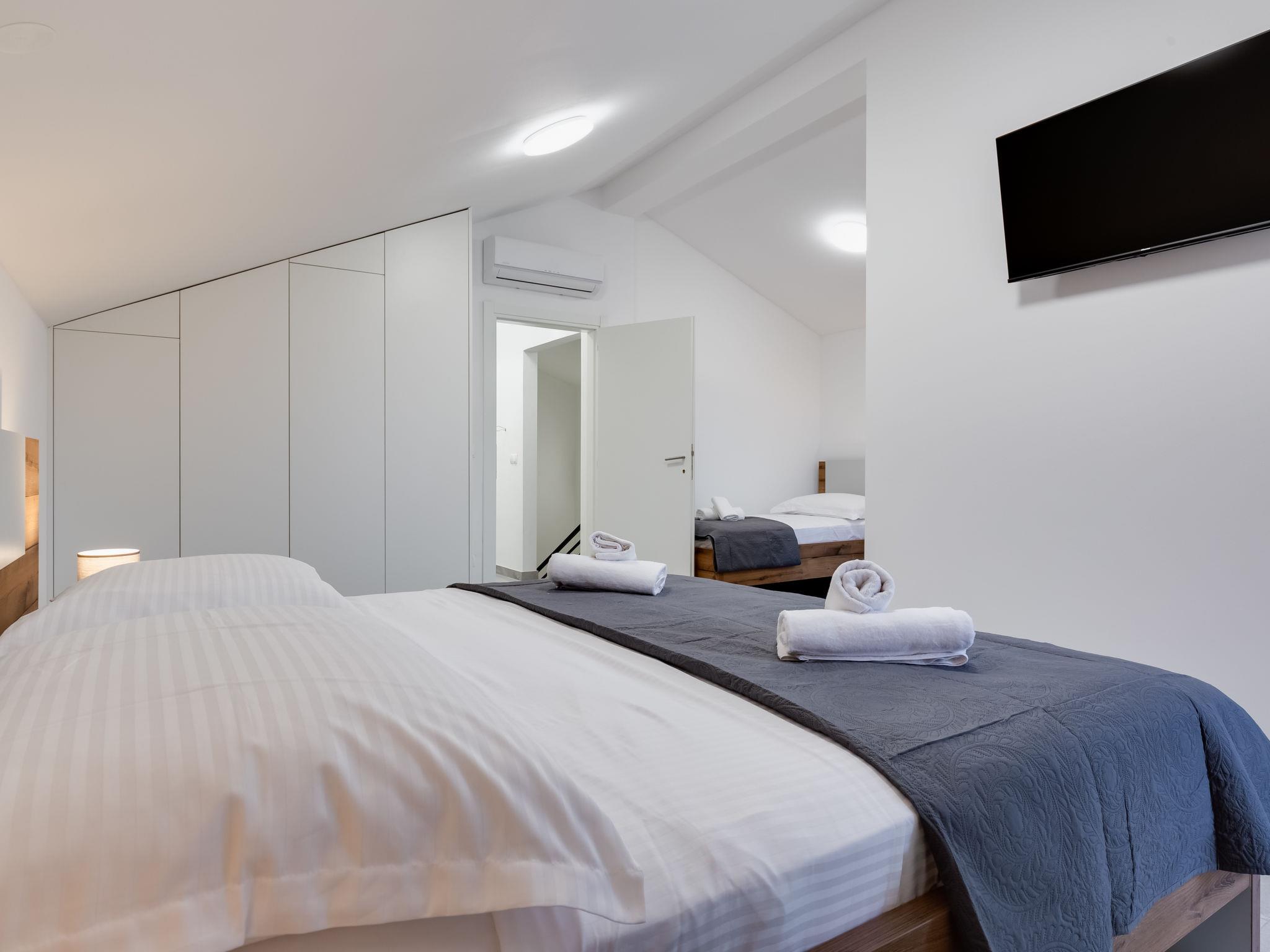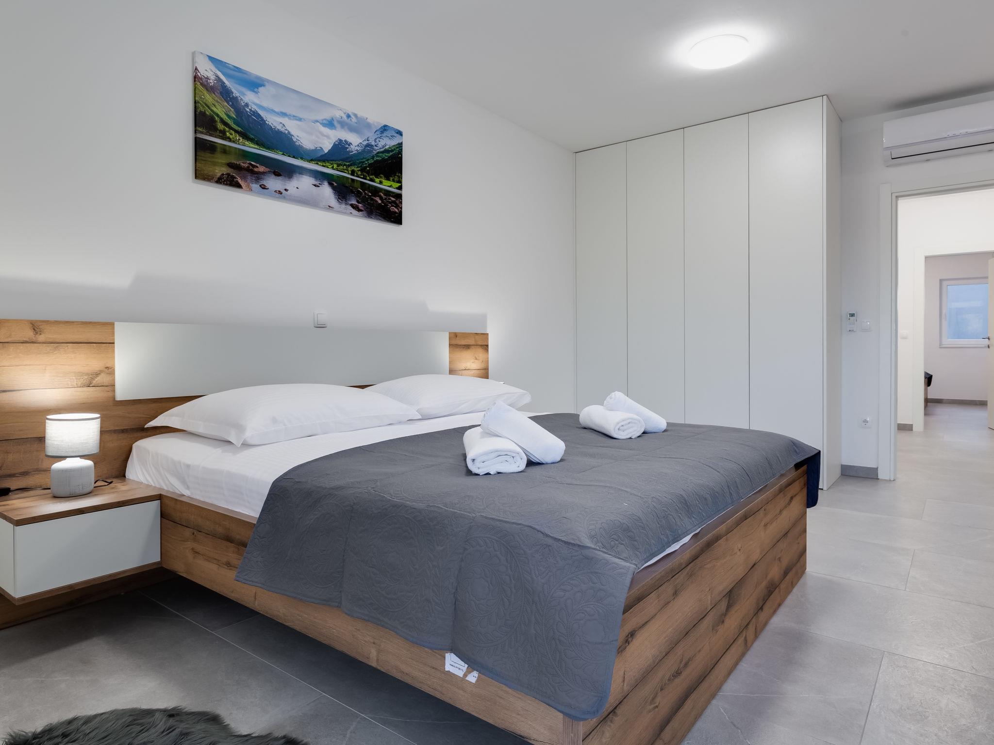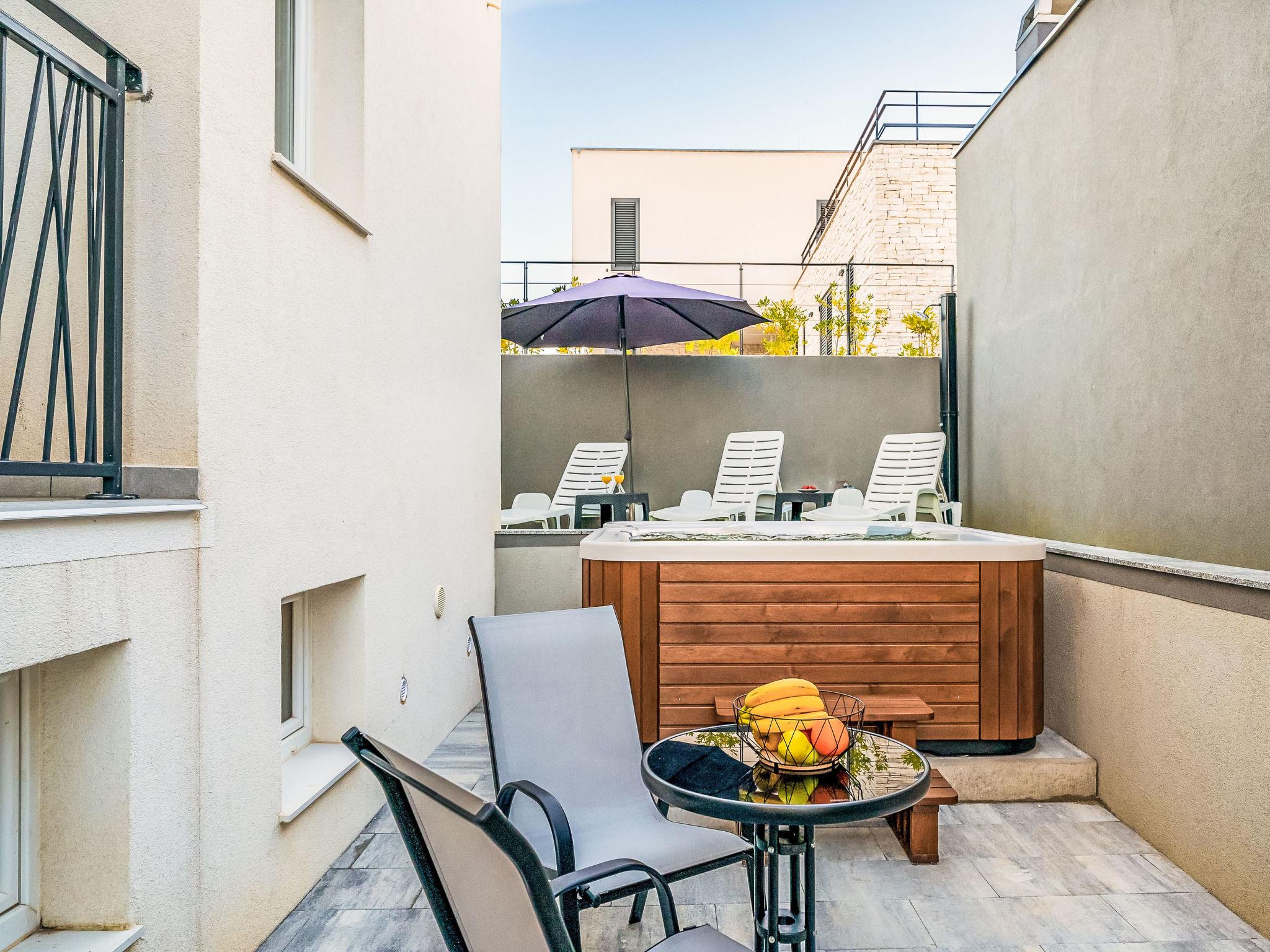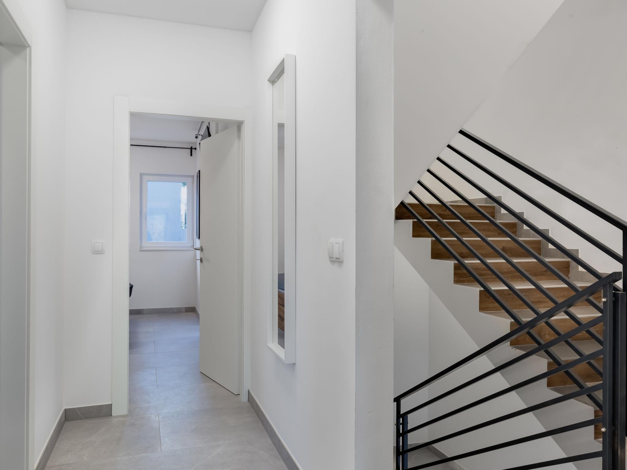 Terraced house "Tica", 3 storeys, built in 2023. 1.3 km from the centre of Zaton, 4 km from the centre of Nin, 14 km from the centre of Zadar, in a sunny position on a slope, 150 m from the sea, 150 m from the beach. Private: property 50 m2. Hot tub. In the house: internet access, washing machine. Parking (for 2 cars) at the house on the premises. Shop 1 km, restaurant 1.2 km, bus stop 3.8 km, sandy beach 150 m. Nearby attractions: Holiday complex Zaton 2 km. Please note: airfield 25 km from the property.