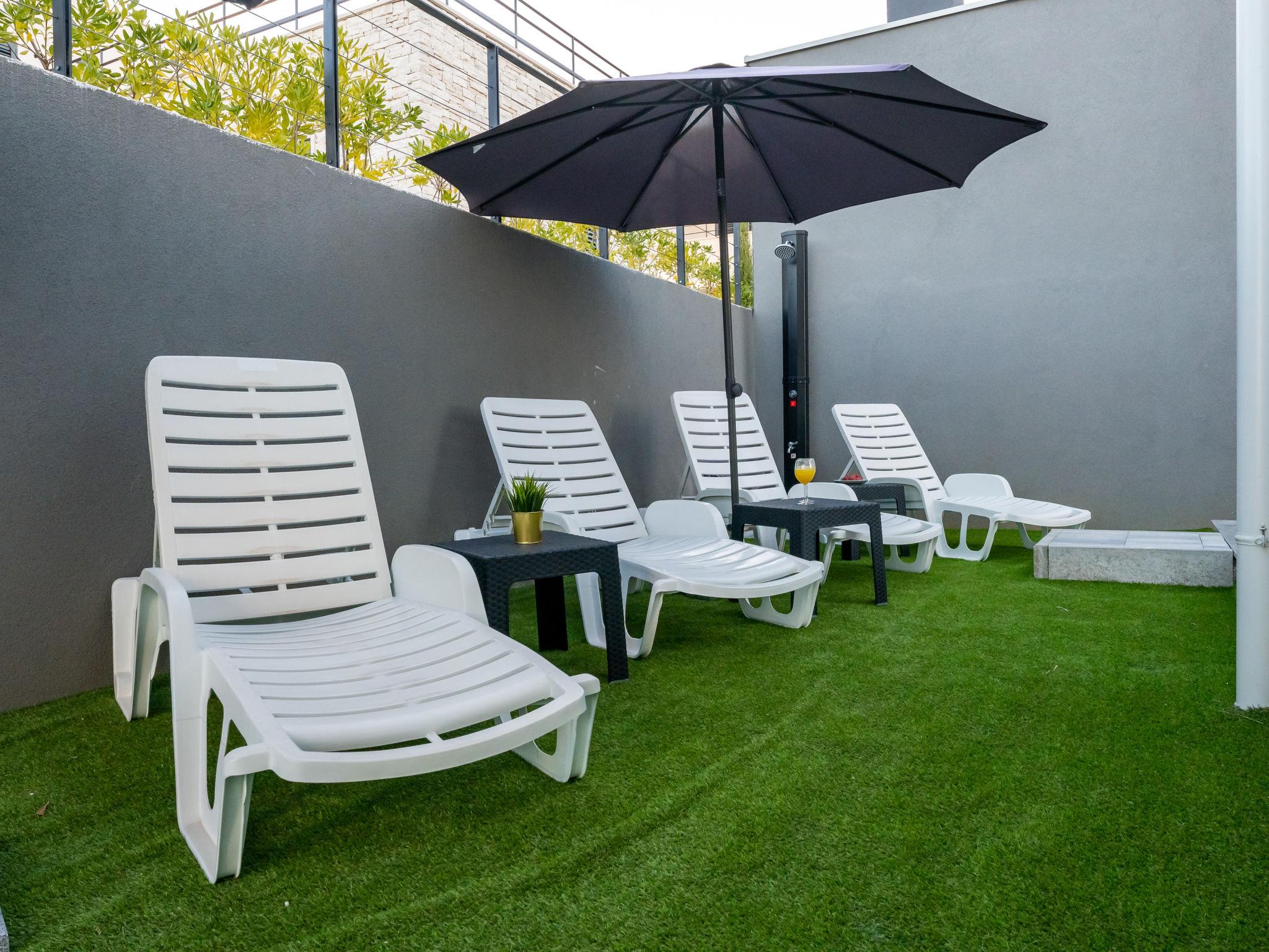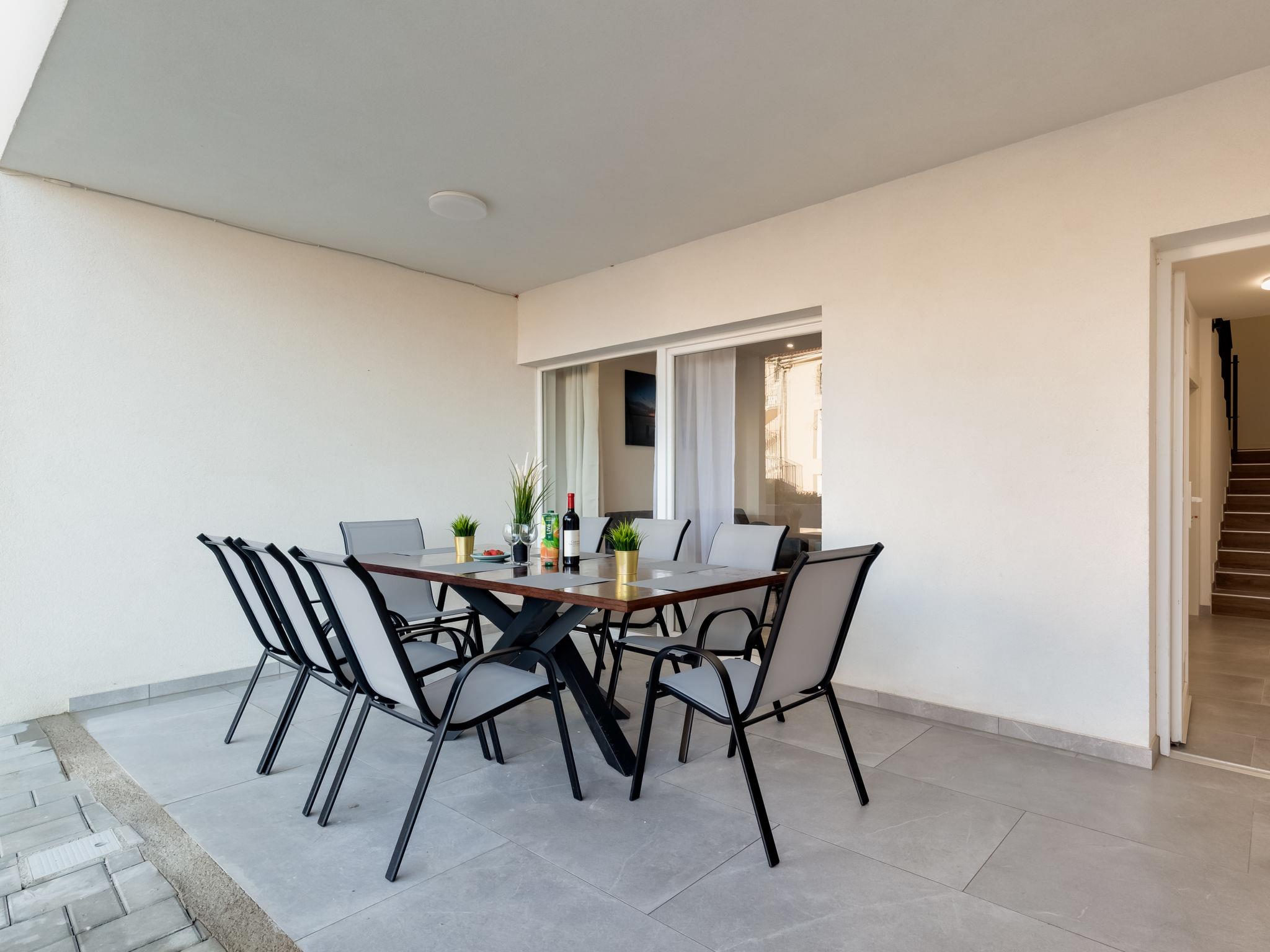 5-room terraced house 120 m2 on 3 levels. Living/dining room with satellite TV (flat screen), air conditioning. Exit to the terrace. Open kitchen (oven, dishwasher, 4 induction hot plates, toaster, kettle, microwave, freezer, electric coffee machine). Bath/WC. Upper floor: 1 room with 1 bed (90 cm, length 200 cm), 1 french bed (180 cm, length 200 cm), satellite TV (flat screen), air conditioning. Exit to the balcony. 1 room with 1 french bed (180 cm, length 200 cm), satellite TV (flat screen), air conditioning. Exit to the loggia. Shower/WC. 2nd upper floor: 1 room with 1 bed (90 cm, length 200 cm), 1 french bed (180 cm, length 200 cm), satellite TV (flat screen), air conditioning. Exit to the balcony. 1 room with 1 french bed (180 cm, length 200 cm), satellite TV (flat screen), air conditioning. Exit to the loggia. Shower/WC. No heating option. 2 balconies 10 m2, terrace 10 m2, roofed. Terrace furniture, barbecue (portable). Facilities: Internet (WiFi, free). Please note: non-smoking house.