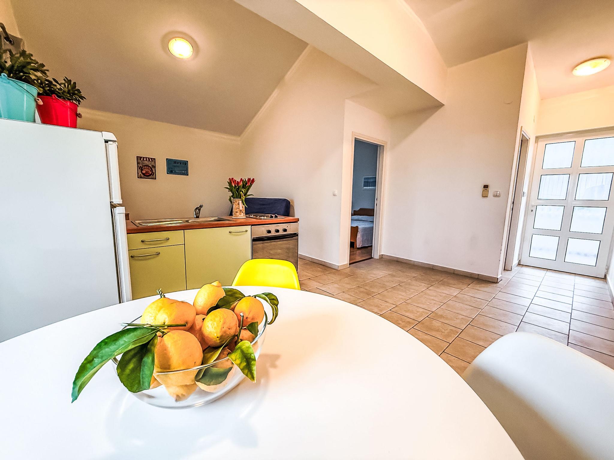 Zaton 14 km from Zadar: Apartment house "Tatjana". 500 m from the centre of Zaton, in a sunny position, 50 m from the sea, 50 m from the beach. For shared use: property 400 m2. In the house: internet access. Parking. Shop 300 m, restaurant 200 m, bus stop 500 m, pebble beach 50 m. Please note: airfield 25 km from the property.