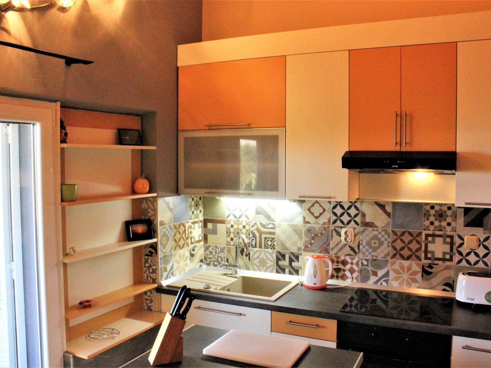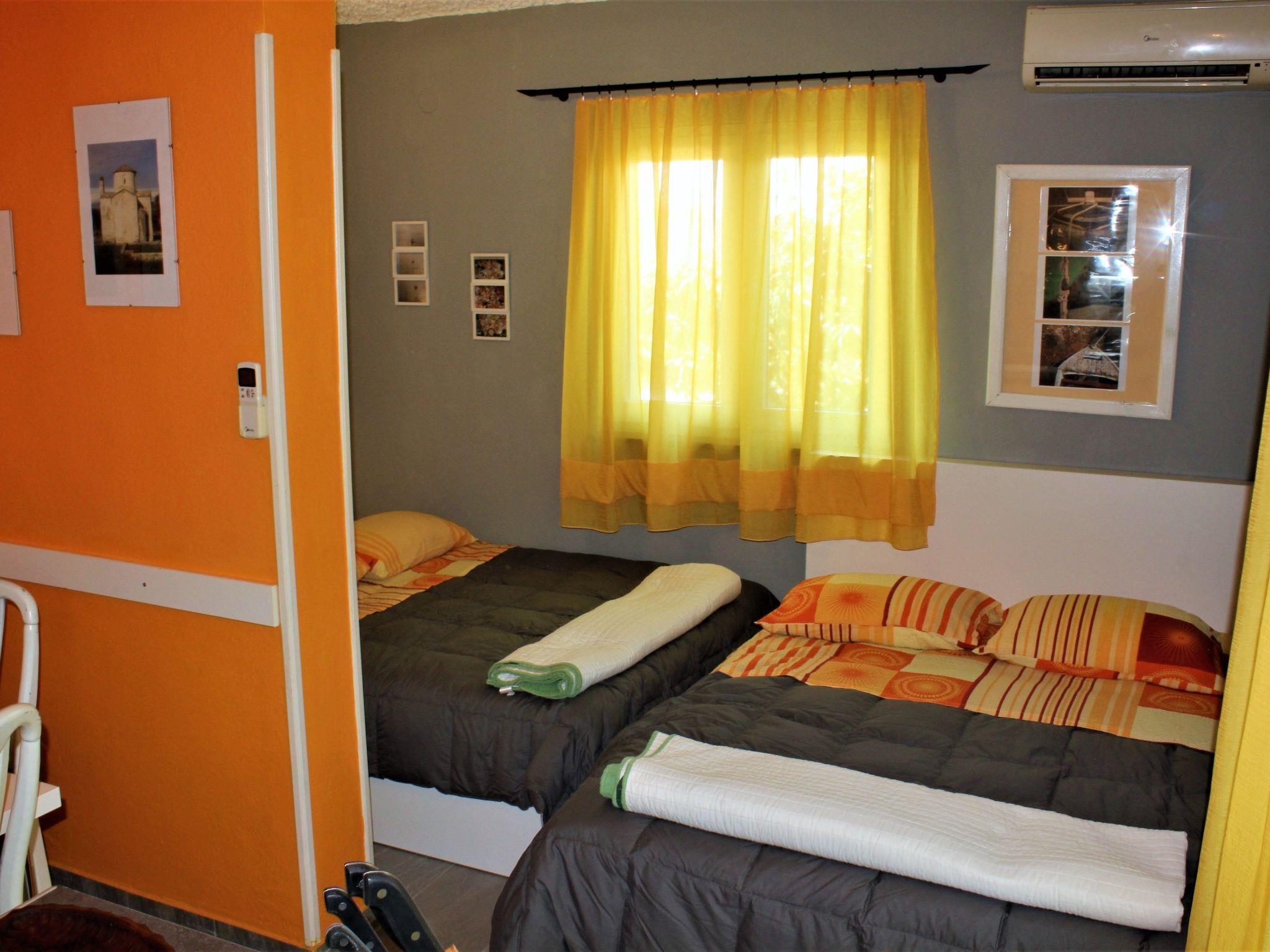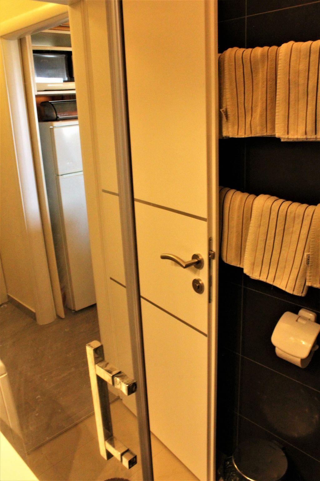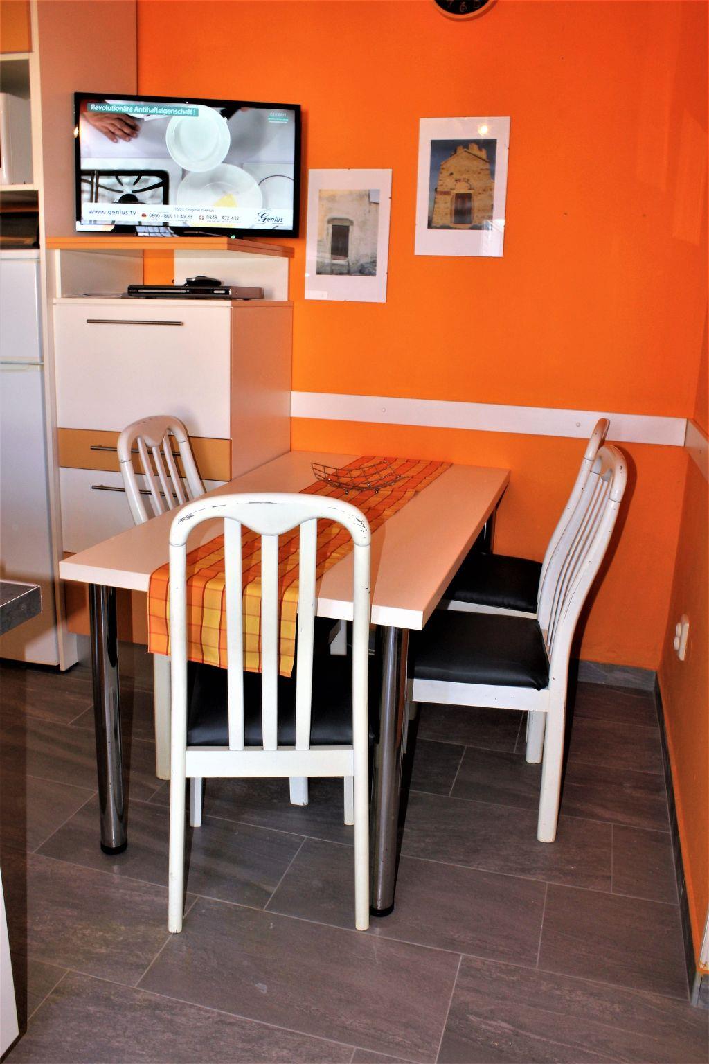 The studio apartment is on the first floor. There is a double bed and a single bed in the living area. The kitchen has all necessary utensils, an oven, electric cooker hob, electric kettle, toaster, fridge-freezer, refrigerator for water. The bathroom is equipped with a shower. It is air conditioned, equipped with digital satellite system (approximately 2000 free channels), DVD player, and a 26 “LED TV. Internet access via WLAN. In the bathroom there is a washing machine which is used exclusively by guests of the apartments.