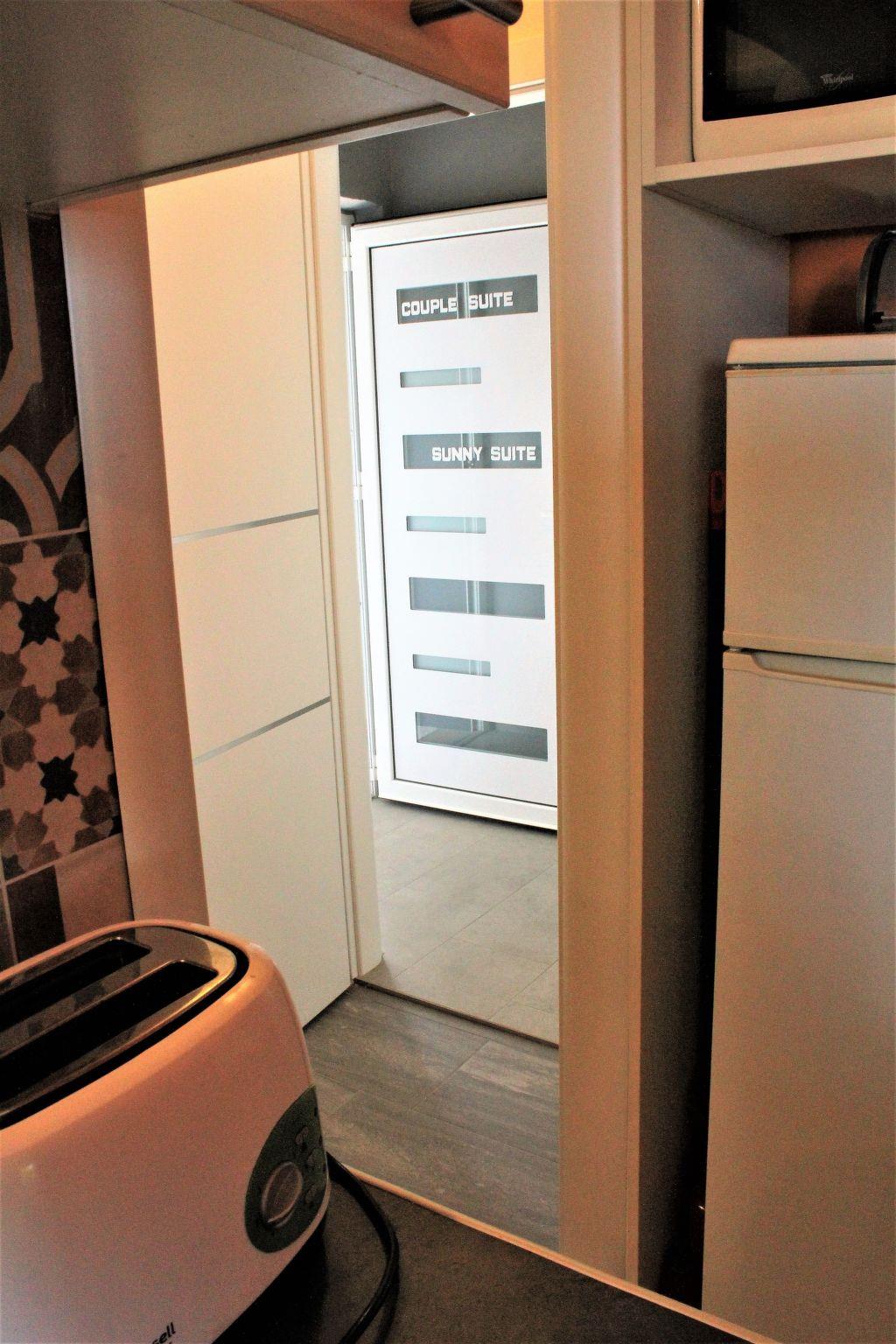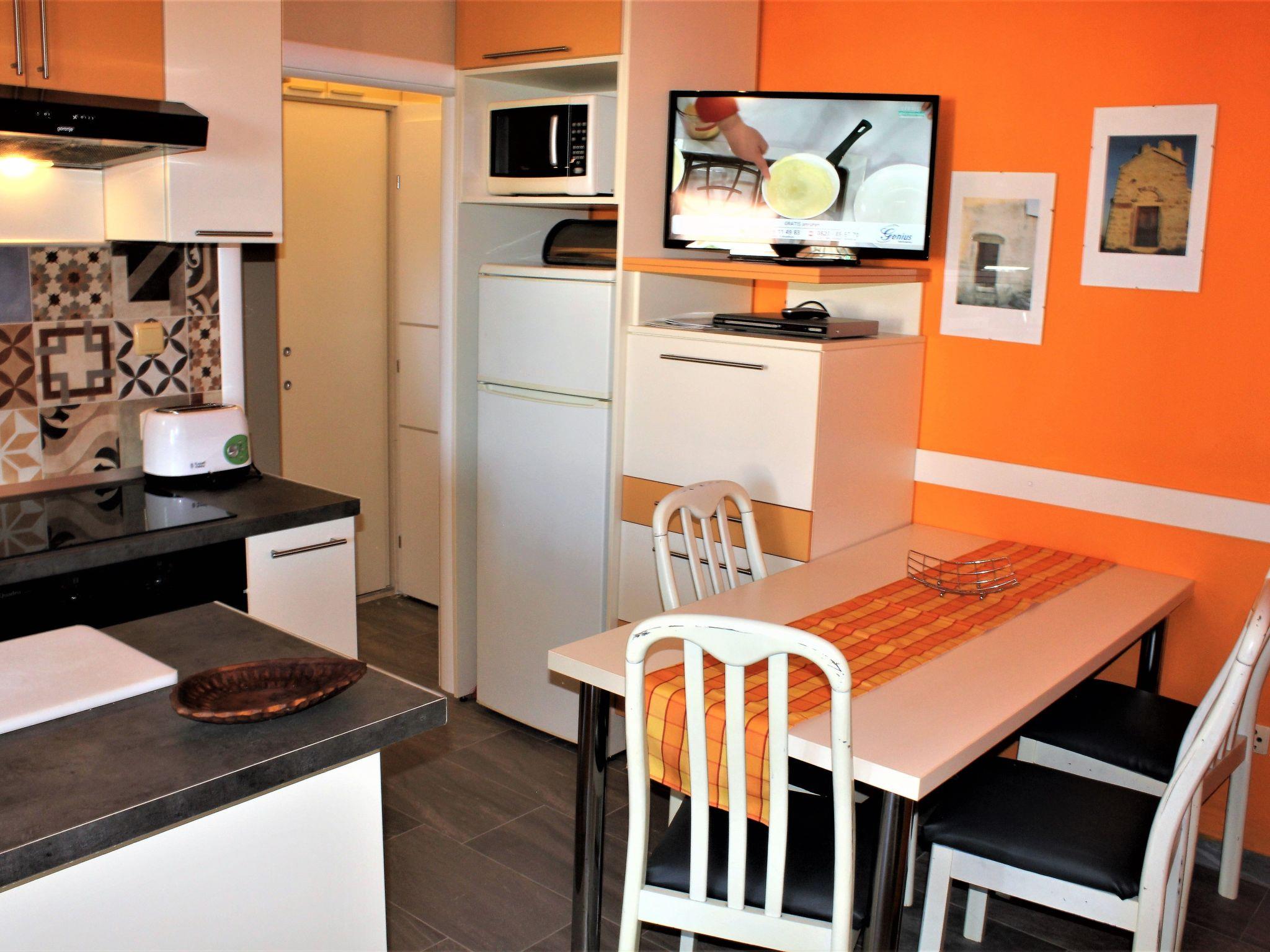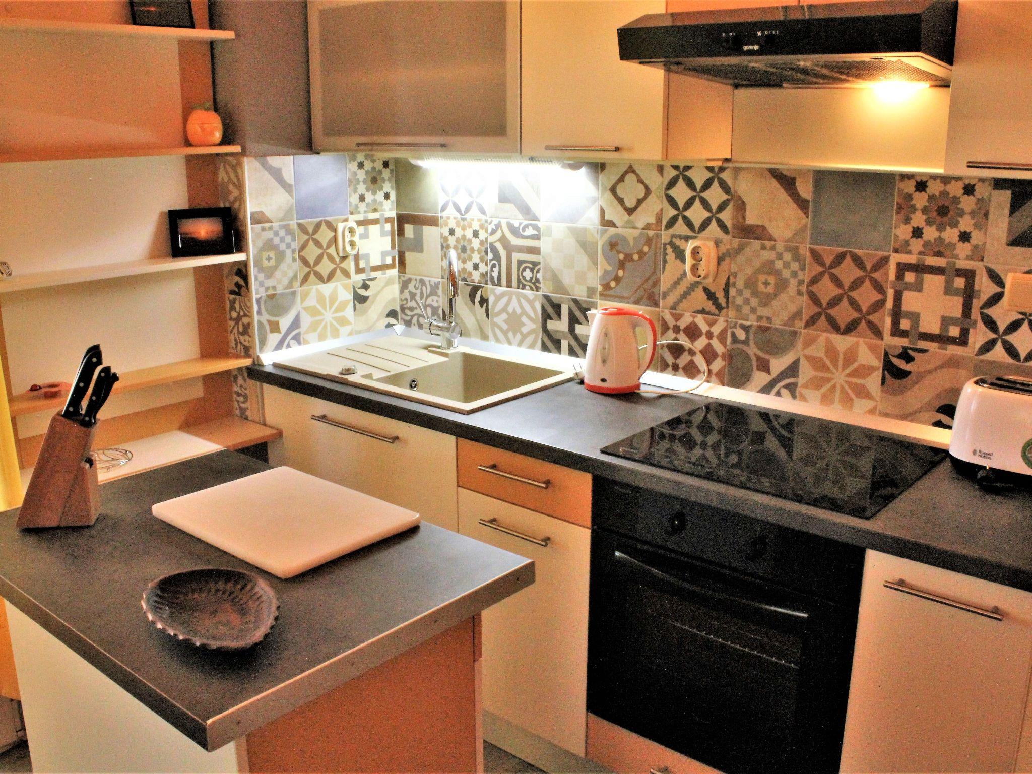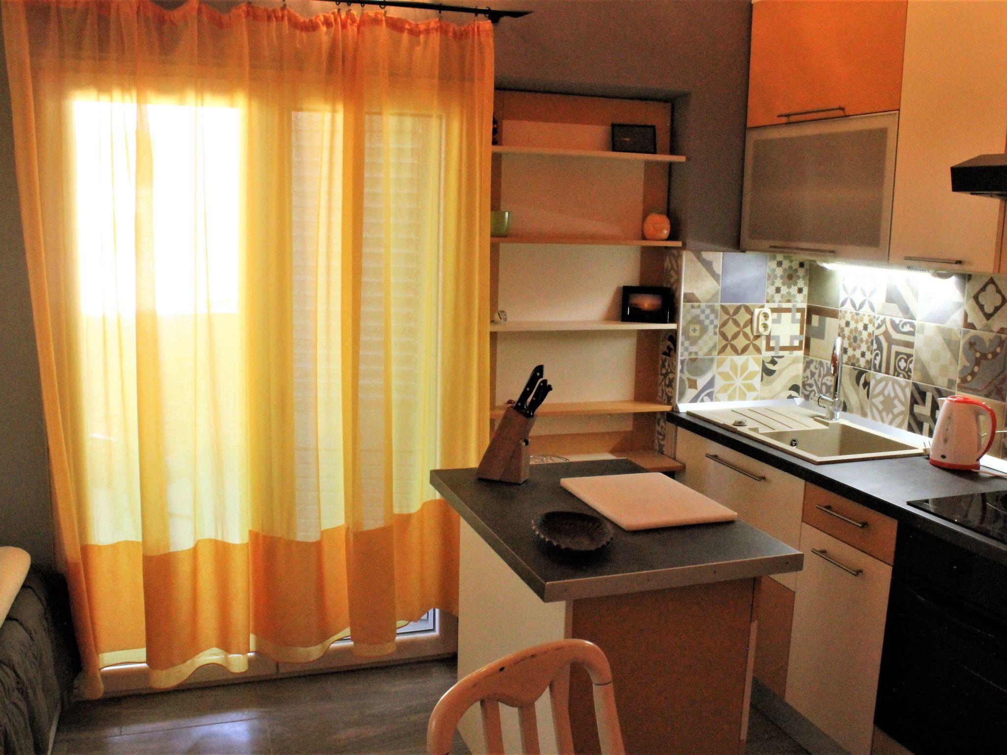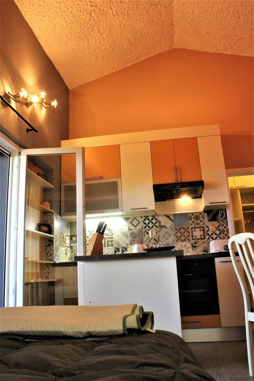 The studio apartment is on the first floor. There is a double bed and a single bed in the living area. The kitchen has all necessary utensils, an oven, electric cooker hob, electric kettle, toaster, fridge-freezer, refrigerator for water. The bathroom is equipped with a shower. It is air conditioned, equipped with digital satellite system (approximately 2000 free channels), DVD player, and a 26 “LED TV. Internet access via WLAN. In the bathroom there is a washing machine which is used exclusively by guests of the apartments.