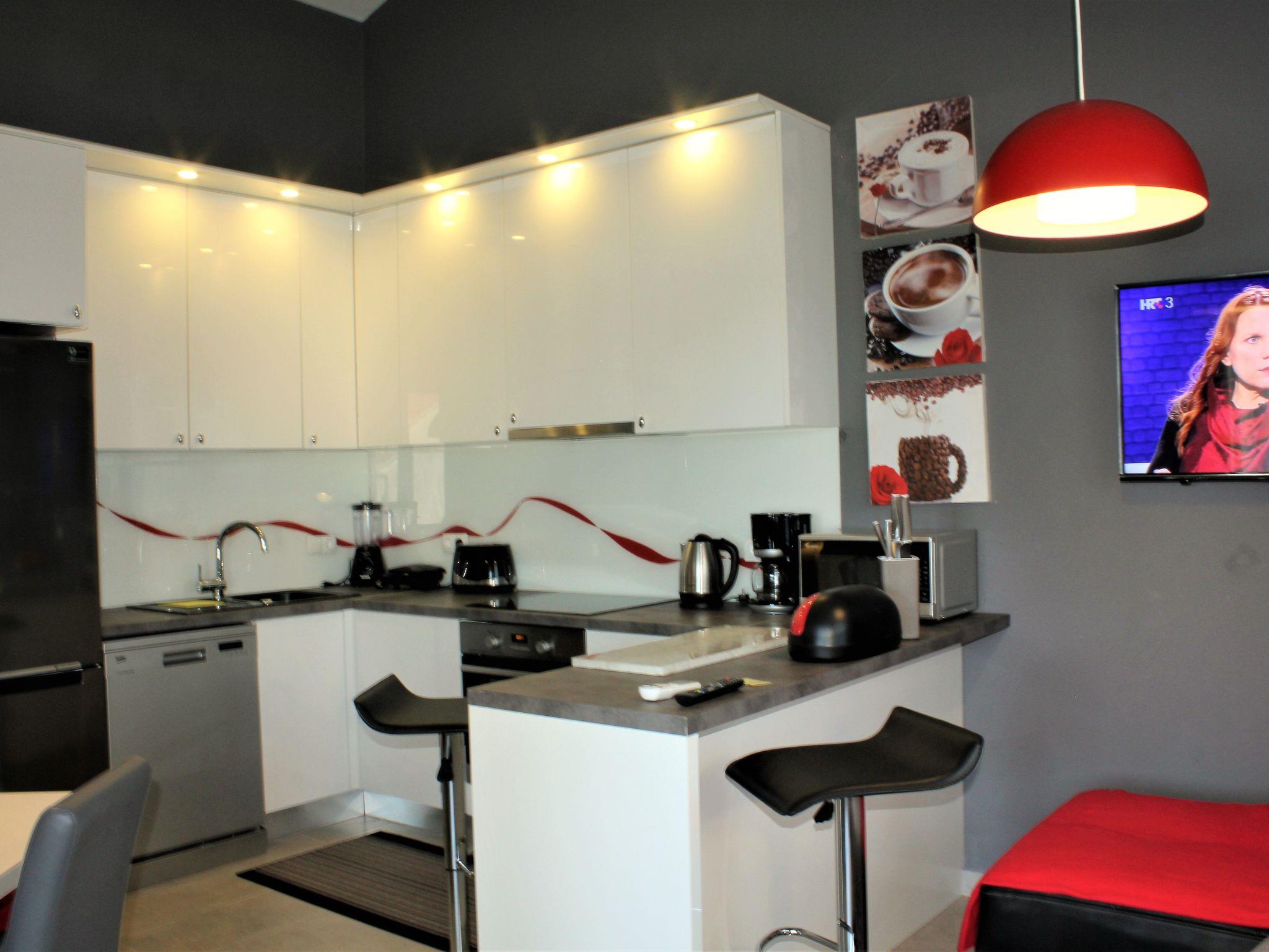 Holiday apartments within walking distance to the sea and a communal garden with barbecue This house with five holiday apartments is located in Croatia's sunny Dalmatia province, within walking distance from the sea and beach. The house is in very comfortable and quiet surroundings.