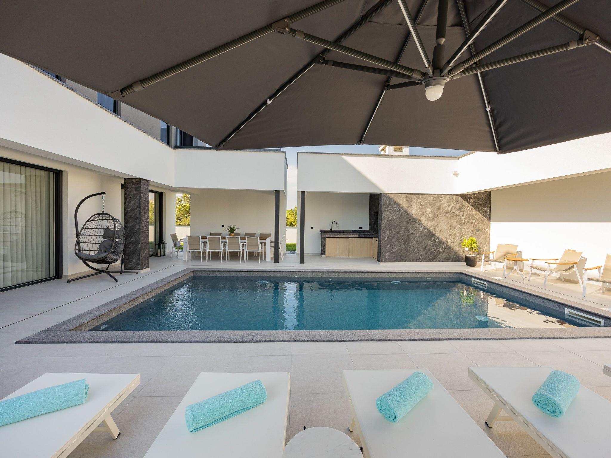 This luxurious and modern villa is located on a 600 m² plot with a swimming pool in a quiet area of Zaton and is ideal for accommodating 8-10 people.