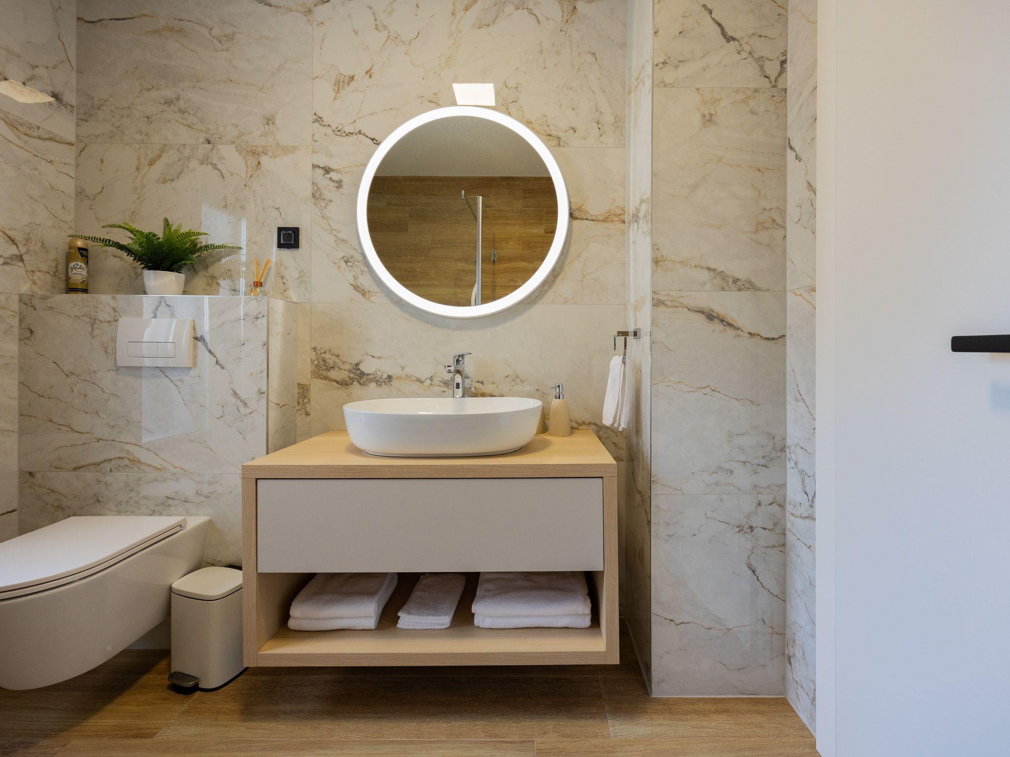 On the ground floor there is a stylish living room overlooking the pool, a dining room and a fully equipped kitchen. On the first floor of the villa there are 4 bedrooms with double beds. Each bedroom is equipped with satellite TV, safe, air conditioning and bathroom with shower. There is a separate toilet on the ground floor. Also on the second floor, guests of the villa can enjoy a mini wellness area with sauna. The villa has a roof terrace with swimming pool and sea view as well as a sun deck with sun loungers, seating area and outdoor kitchen.