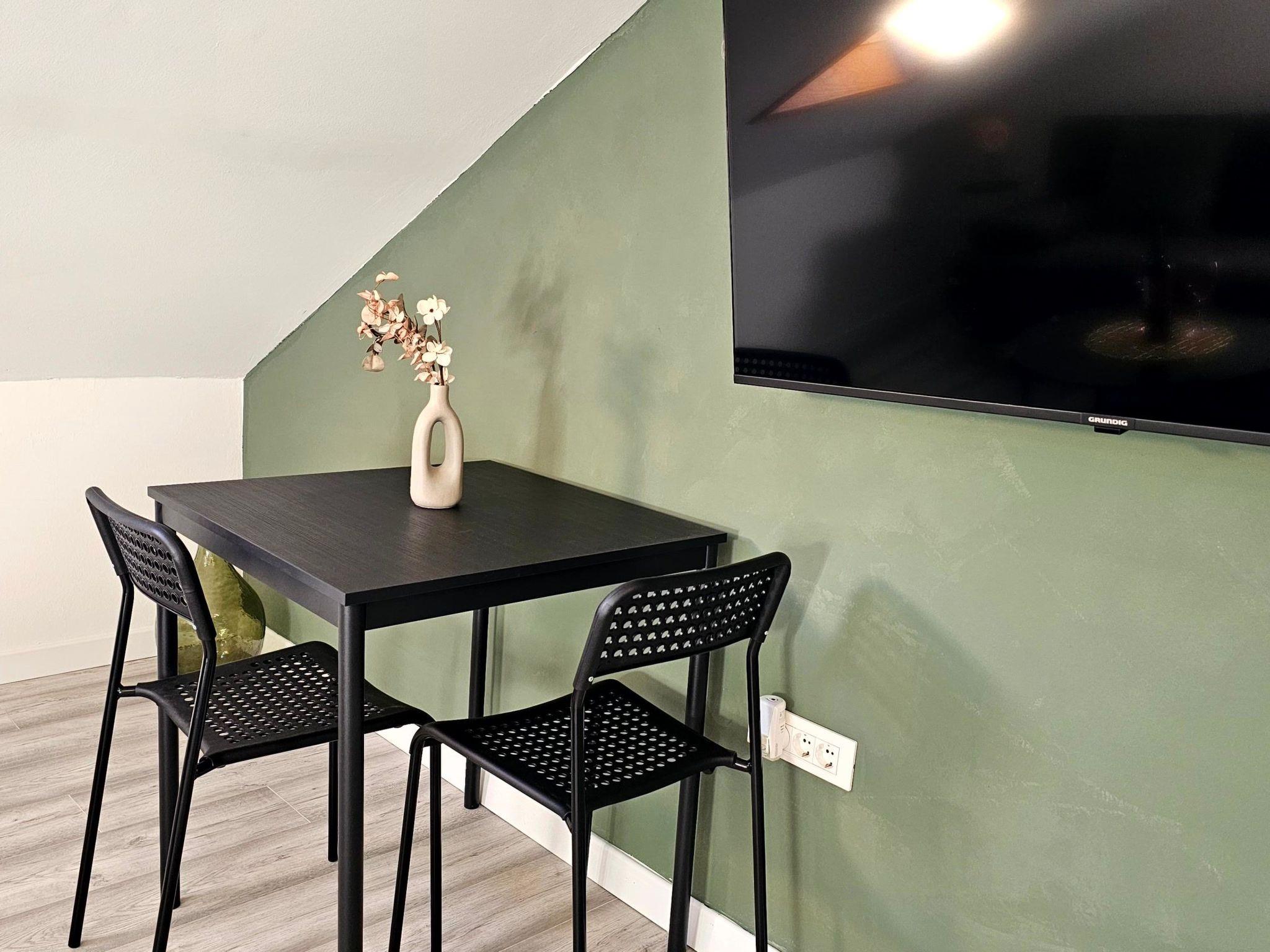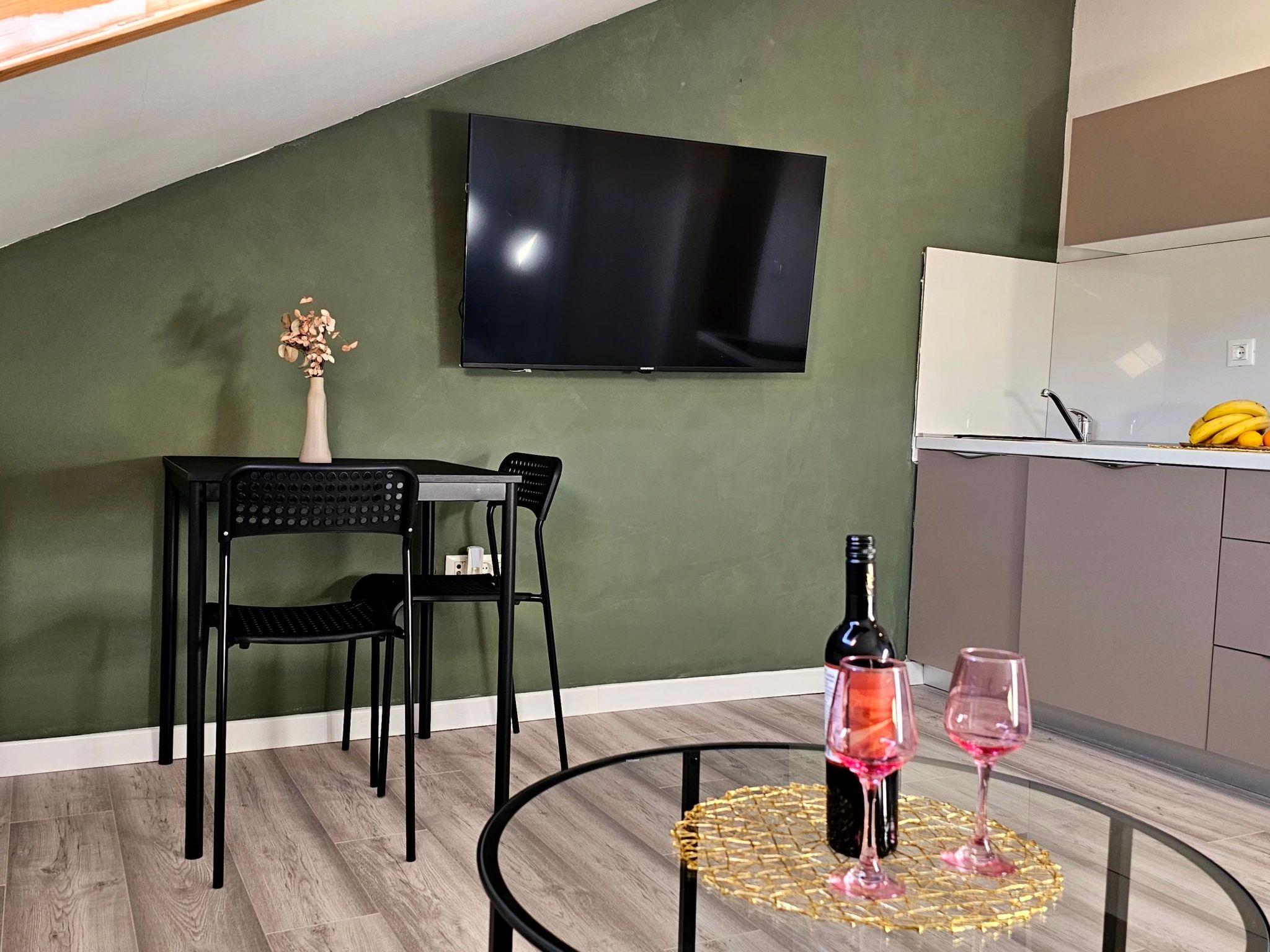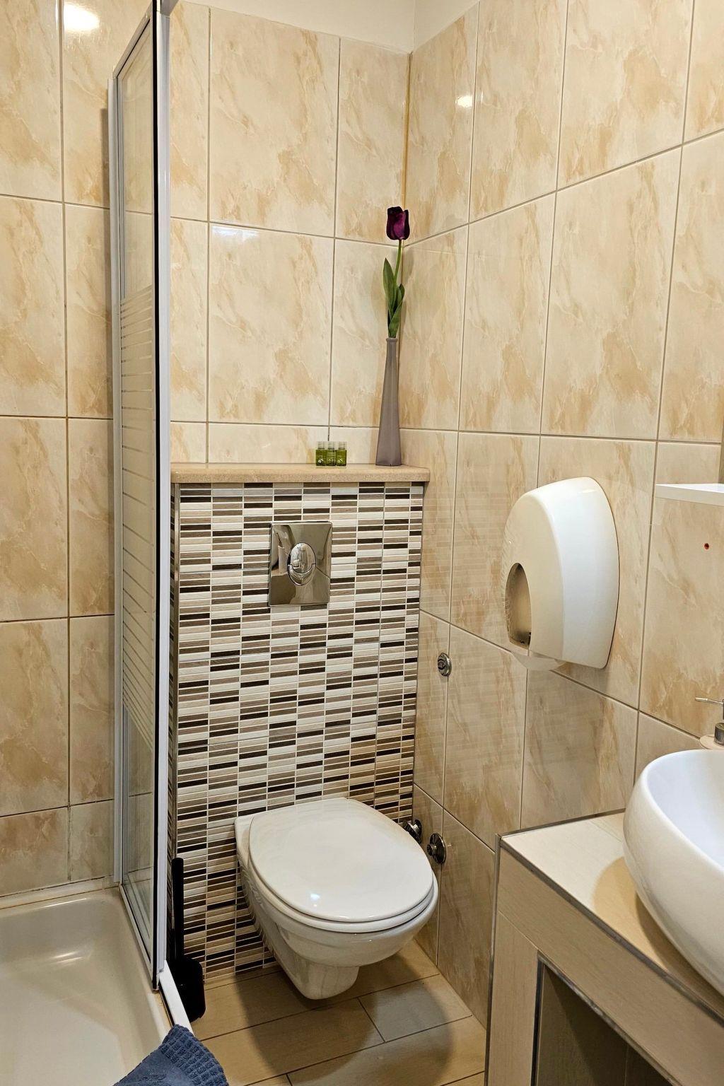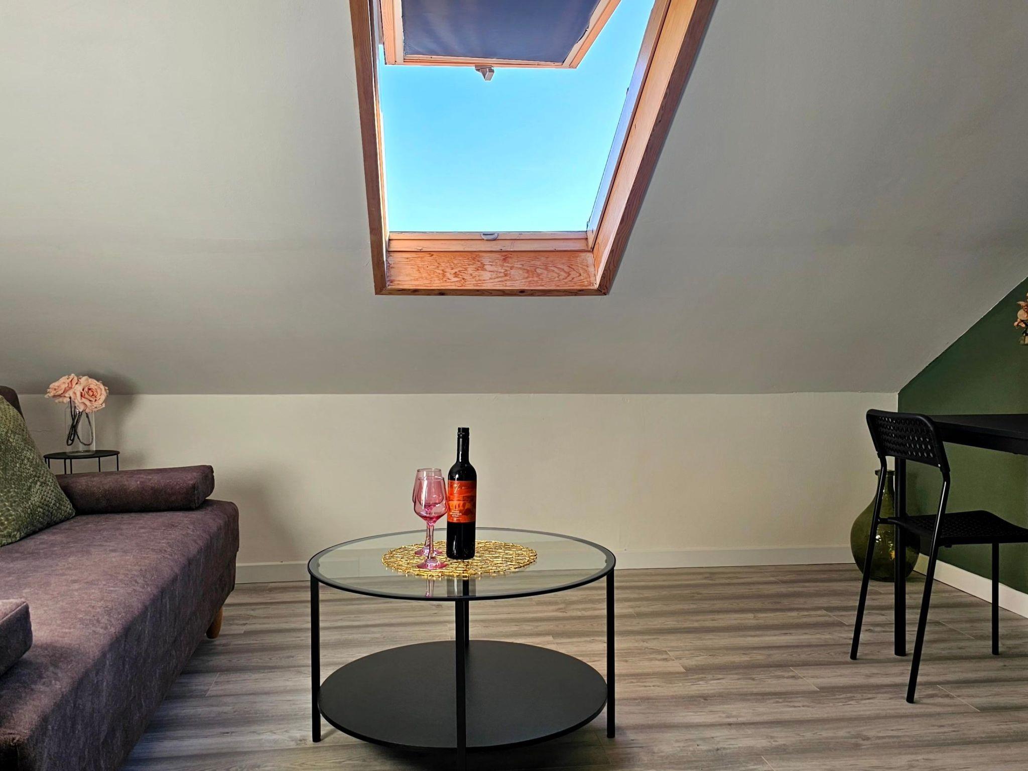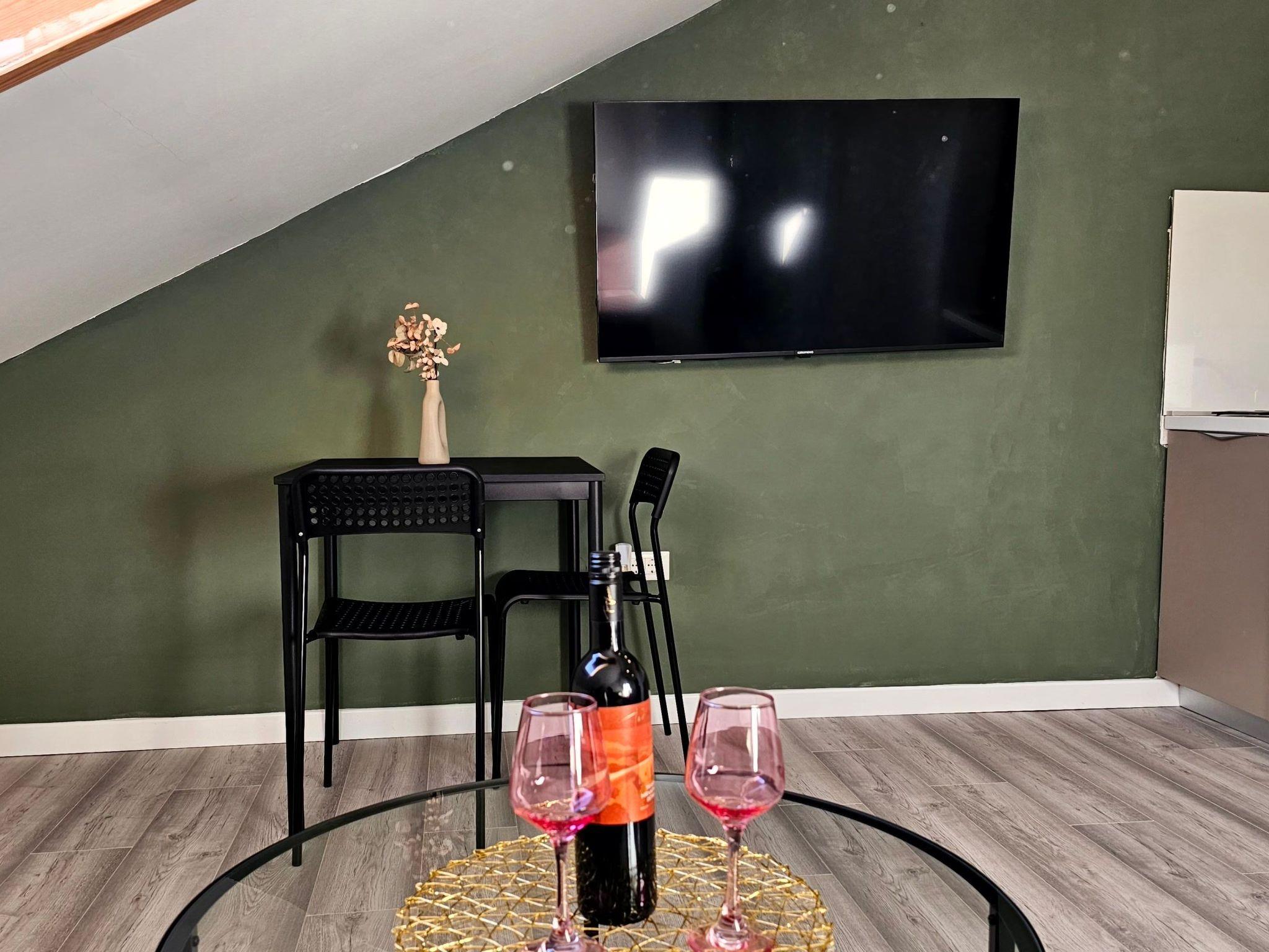 Inside, this cosy apartment boasts a well-equipped living space where relaxation meets convenience. The living room provides a welcoming atmosphere for unwinding after a day of exploration. The bedroom, featuring a comfortable double bed, promises a restful night's sleep. A fully equipped kitchen, including a 2-plate stove, refrigerator, and all necessary kitchenware, alongside an electric kettle, caters to your dining needs. The bathroom is fitted with a practical shower and comes with a hairdryer, ensuring your needs are met with ease.