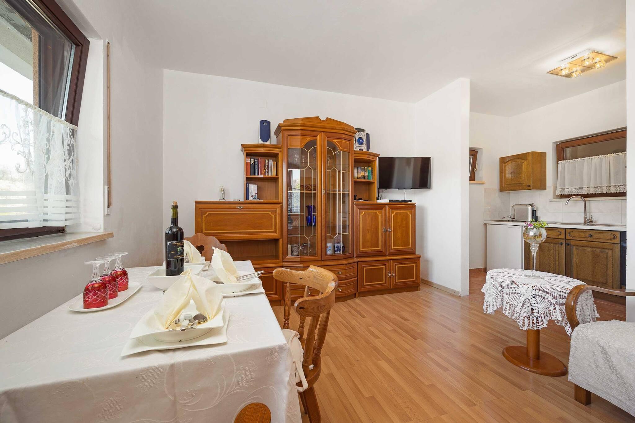 Denne hyggelige havelejlighed beliggende i den fredelige kystlandsby Zaton er et feriehus med to soveværelser, ideelt for familier eller små grupper. Der er plads til op til fire gæster (maksimalt tre voksne) fordelt på et 45 m² stort, omhyggeligt indrettet område. Gæsterne kan slappe af i den private have eller på den møblerede terrasse, nyde en udendørs grill og benytte sig af den bekvemme udendørs parkering på stedet. Lejligheden er udstyret med fornødenheder, herunder Wi-Fi, aircondition og satellit-tv, hvilket tilbyder et behageligt ophold i rolige boligomgivelser. Lejligheden er perfekt beliggende til både afslapning og udforskning, kun 800 meter fra det nærmeste supermarked og under en kilometer fra Konoba Feral, en populær lokal restaurant. For sol og hav ligger både sand- og klippeafsnittene af stranden Zvizda kun 2 km væk. Gæsterne kan besøge Šibeniks gamle bydel (10 km) for historisk charme eller udforske de naturskønne landskaber i Krka Nationalpark og floden (21 km). Familier kan også nyde en dag i Aquapark Dalmatia, kun 18 km væk. Split Lufthavn ligger bekvemt 63 km fra ejendommen. Indenfor er det åbne induktionskøkken veludstyret med køleskab, ovn, mikrobølgeovn, kaffemaskine, brødrister, elkedel og alt nødvendigt køkkengrej til nem tilberedning af måltider. Yderligere faciliteter inkluderer vaskemaskine, strygejern og hårtørrer for ekstra bekvemmelighed. Med en balance mellem komfort, beliggenhed og rolig charme tilbyder denne lejlighed i Zaton en indbydende base for en kroatisk kystferie.