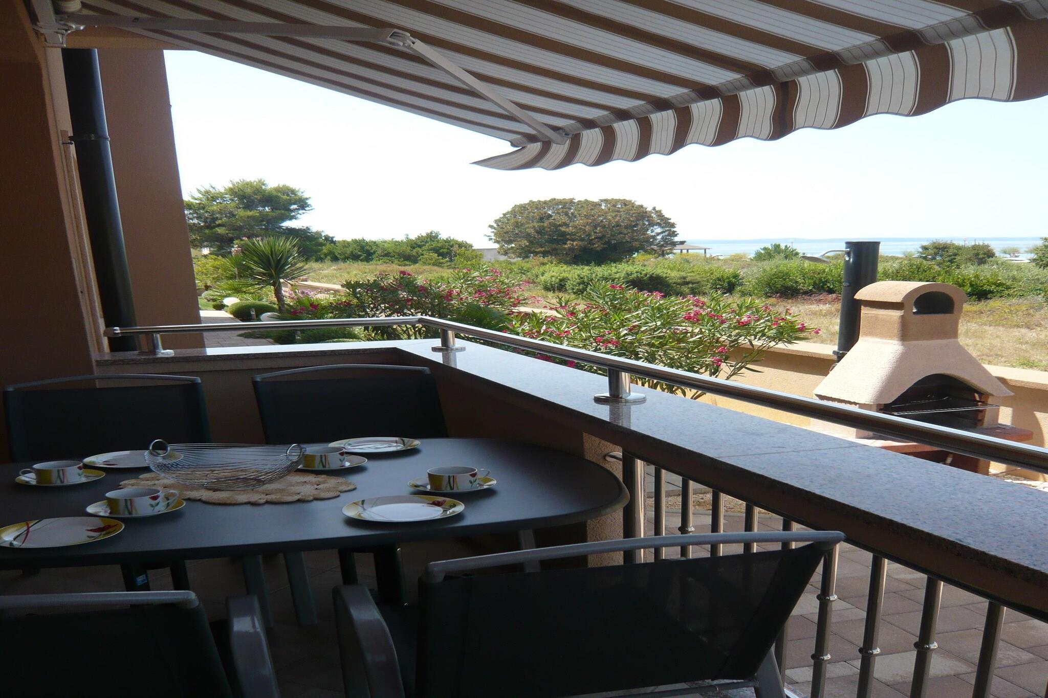 På 1. etage: (åbent køkken(kogeplade(Komfur med fire kogeplader, glaskeramisk), elkedel, kaffemaskine(kaffetragt), mikrobølgeovn, køle-fryseskab), stue / spisestue(enkeltsovesofa, Fjernsyn(fladskærm, parabol), spisebord, sofahjørne), soveværelse(dobbeltseng), soveværelse(dobbeltseng), badeværelse(bruser, toilet, bidet), klimaanlæg, terrasse, havemøbler, baldakin) bruser med lysterapi, vaskemaskine, grill(deles med andre gæster), parkering